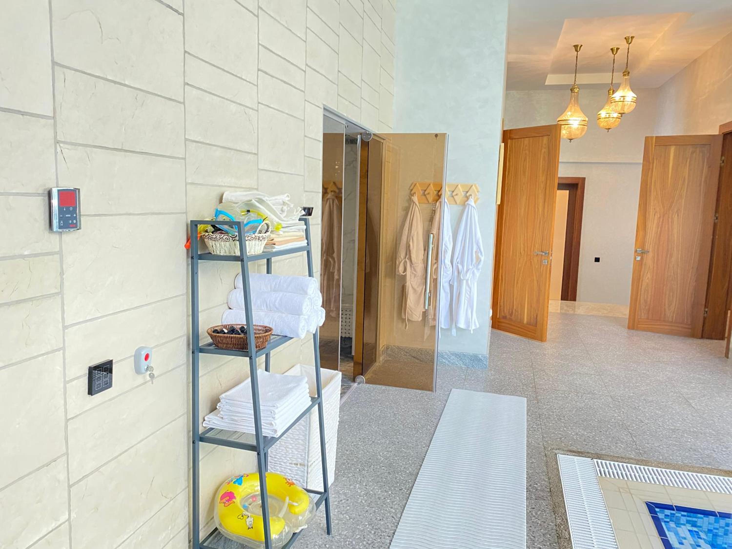 Басейна вы тоже не увидите,он на какой-то вилле,есть контрастные купели,всё это не стоит таких денег,не советую никому.