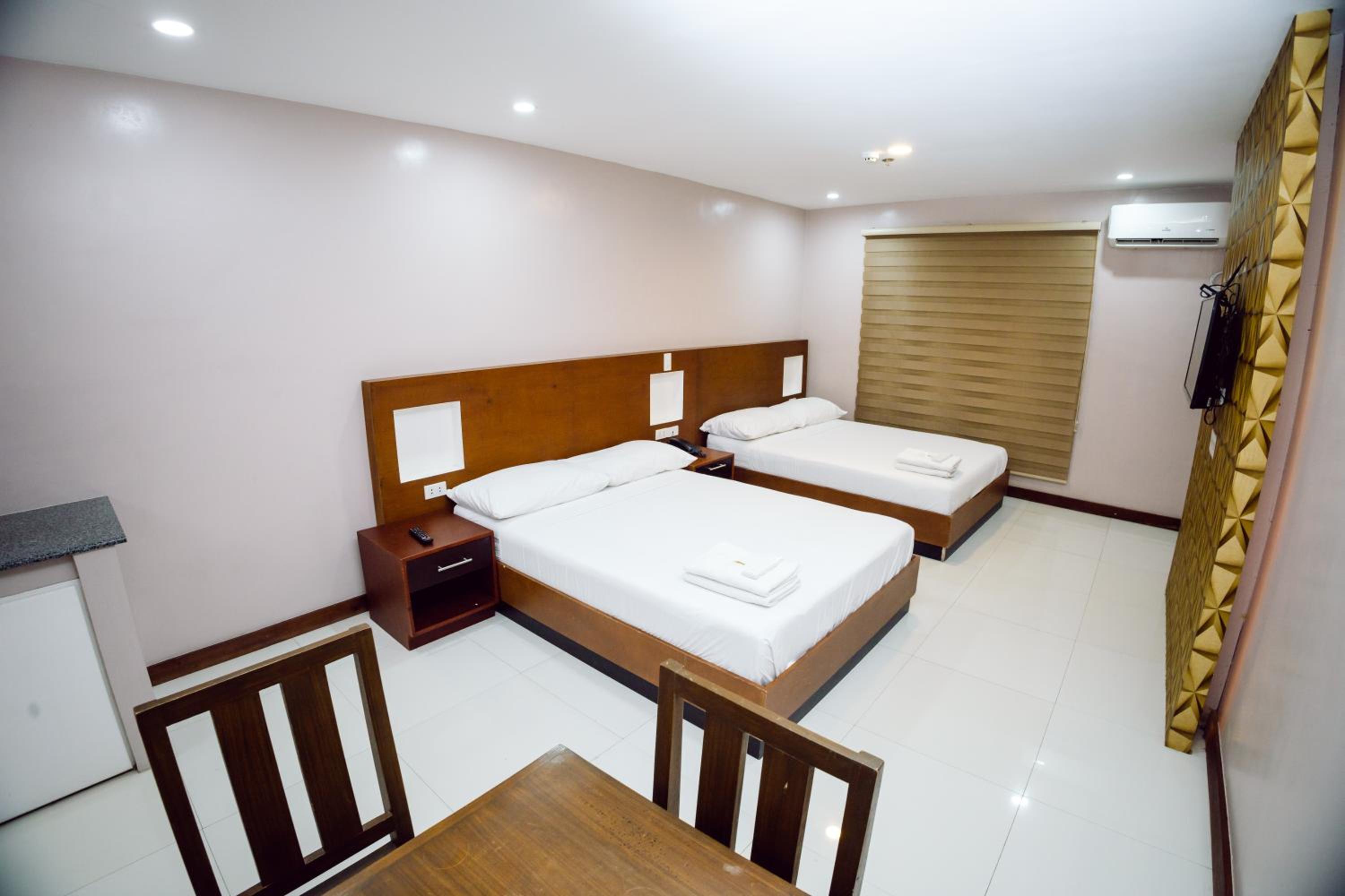 The room was a deluxe room and the bed was so comfortable and kingsize, and there was a mini fridge/freezer in the room which is ideal so you don't leave food out attracting ants. I loved the size of the room. The hotel also has a backup generator, so if the weather is bad and there is a powercut you still have power in the rooms. One great thing not advertised correctly on their site, but may be now, THEY DO HAVE AIRCON in the bedrooms which is great when the Philippines can get very hot. I enjoyed going back to the room to rest. The staff were also very friendly and helpful.