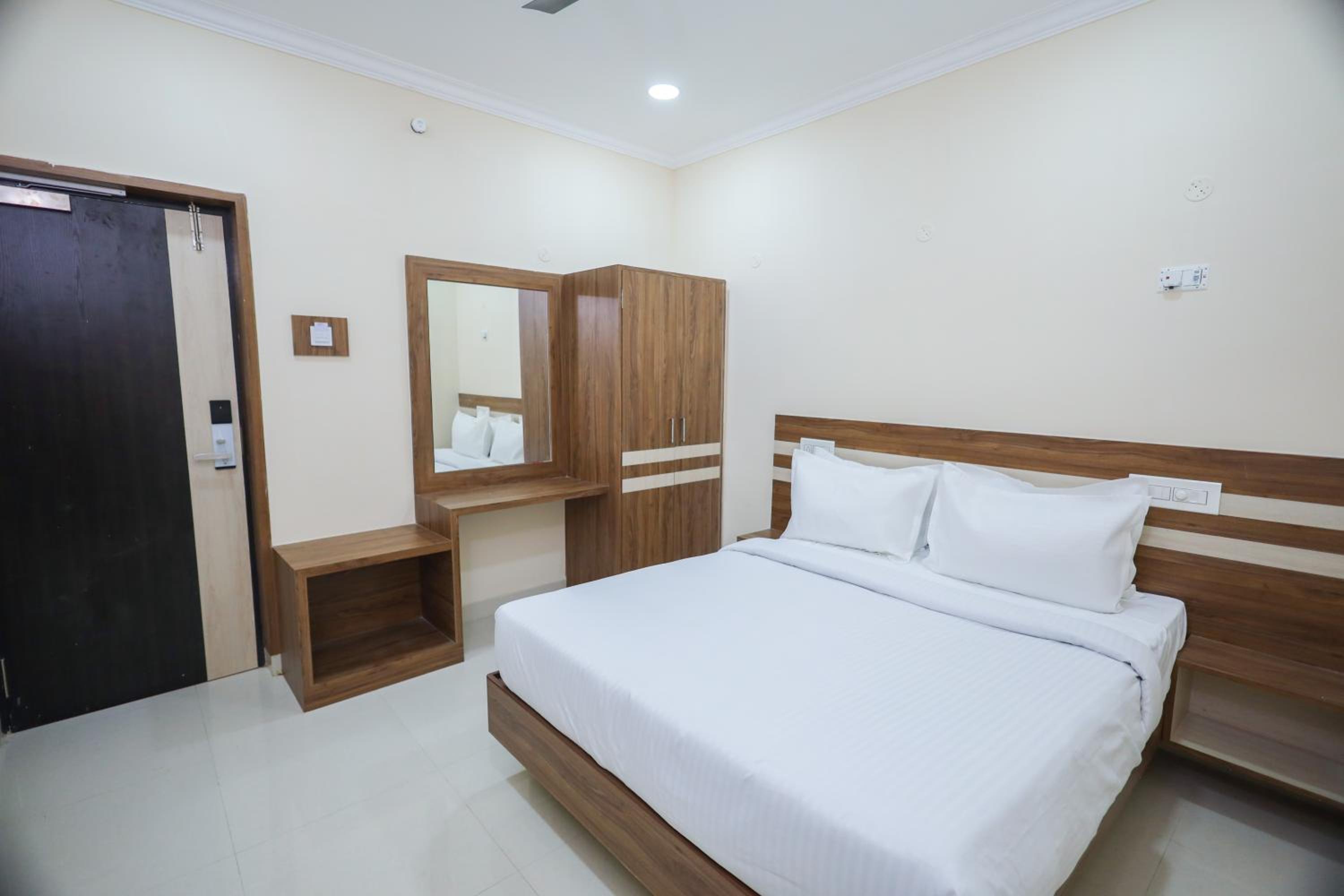 Hôtel très bien situé à 10/15 mn à pied du Temple de Srirangam. Accueil basique, chambre confortable mais sans âme et sans vue, c’était triste mais calme. Passable pour une nuit. Un peu cher pour le service offert.