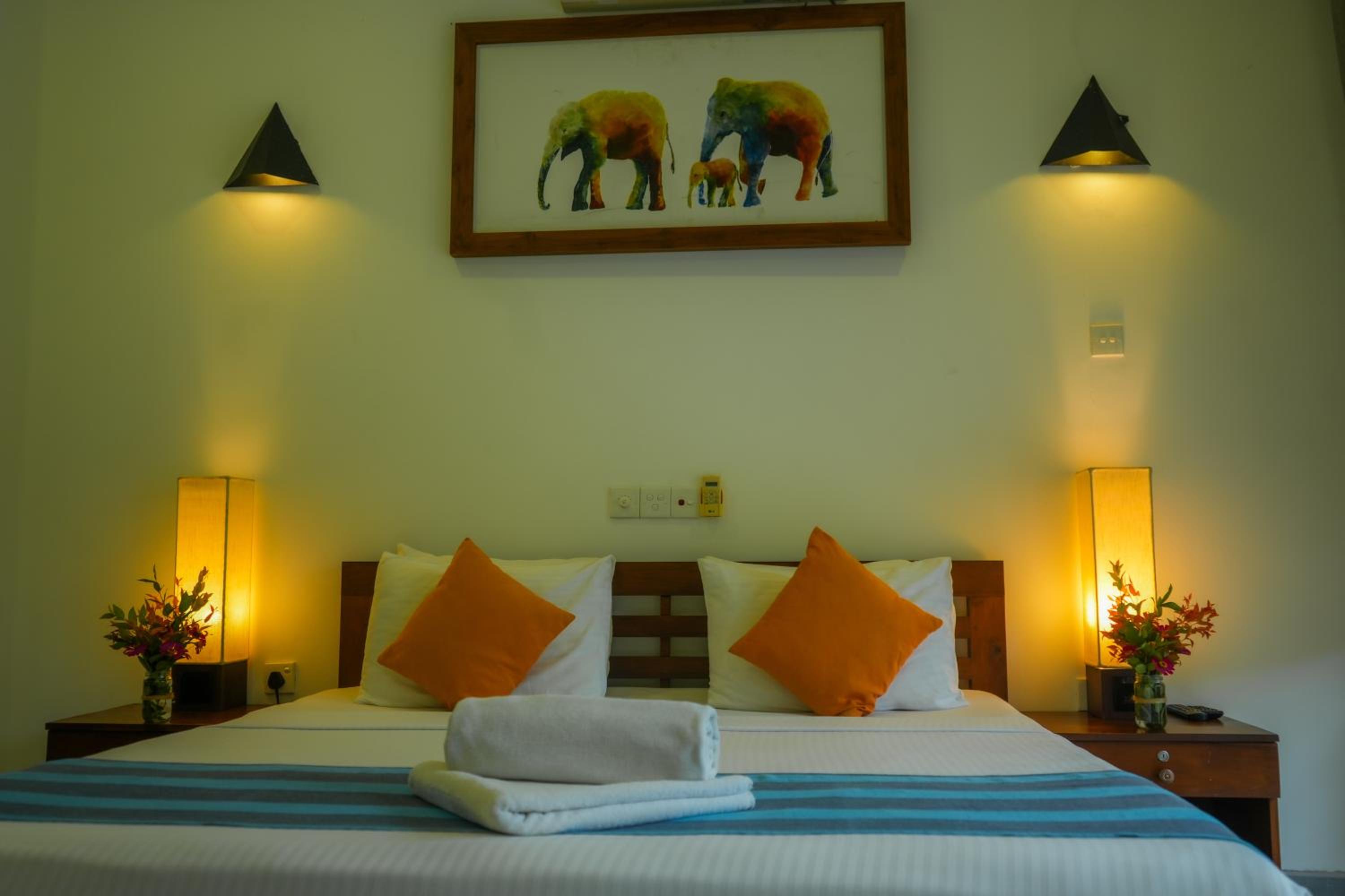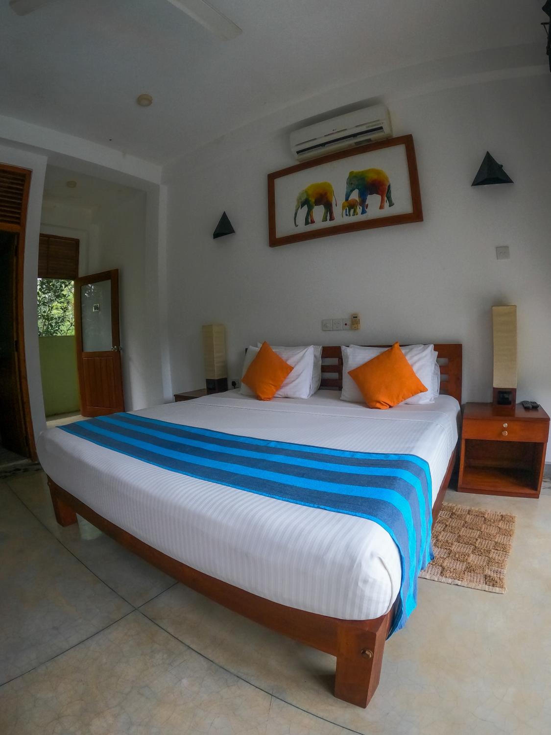 We chose this hotel because it was opposite the Elephant Transit centre and relatively close to the Udawalawe National park. Our room was very clean and tidy but did smell of cigarette smoke despite being a non smoking room. I concluded that this was because guest are allowed to smoke on the rooms balcony (there was an ashtray on the balcony table) and they might have left the doors open. The bathroom was spacious and clean and the shower pressure was really good. Meals were good and staff were friendly.
