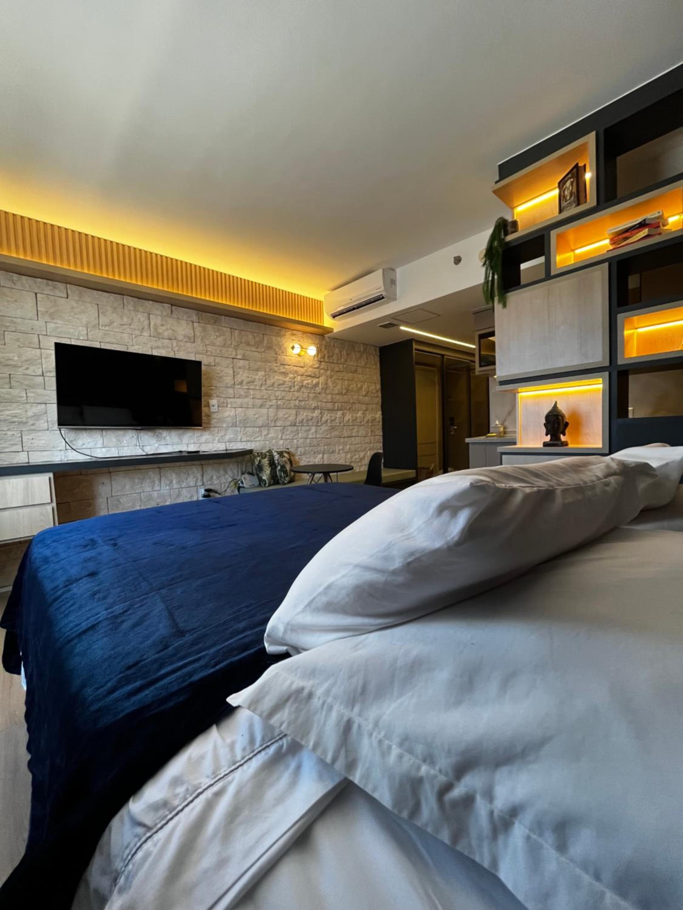 Estrutura moderna e acabamentos bons, agradável, aconchegante e espaçoso