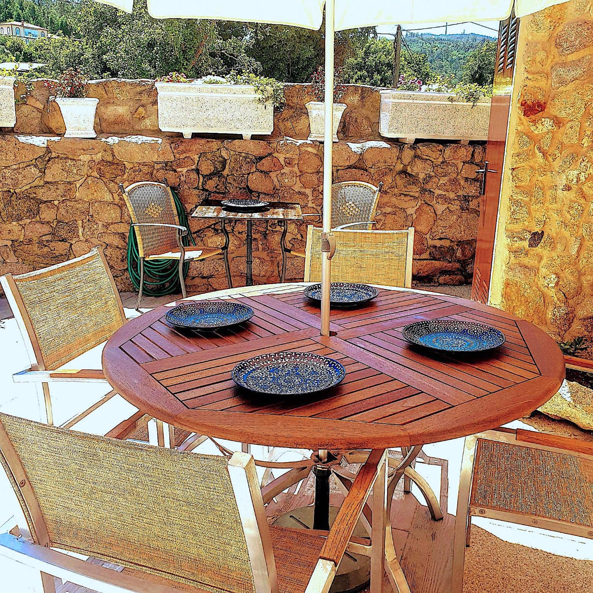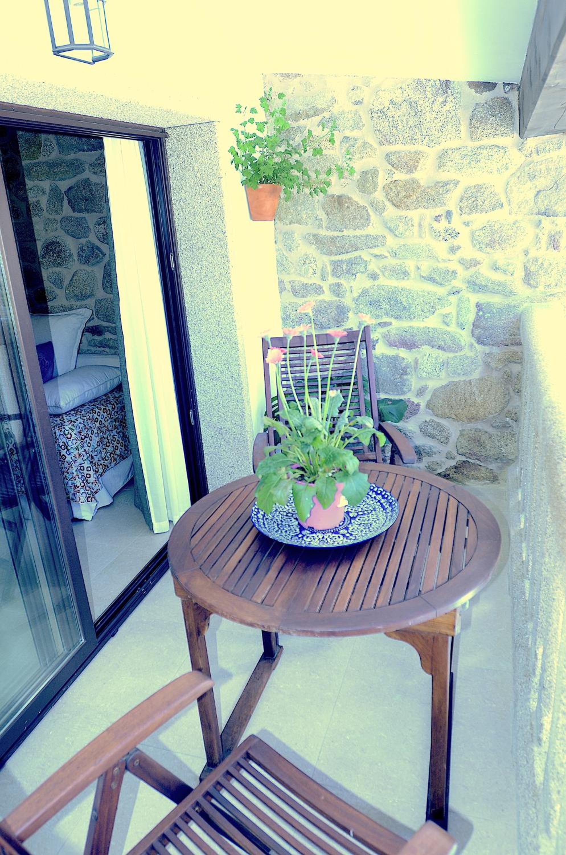 Enjoy the breathtaking mountain views from the terrace at Pedras Vellas while staying connected with complimentary WiFi throughout the property.