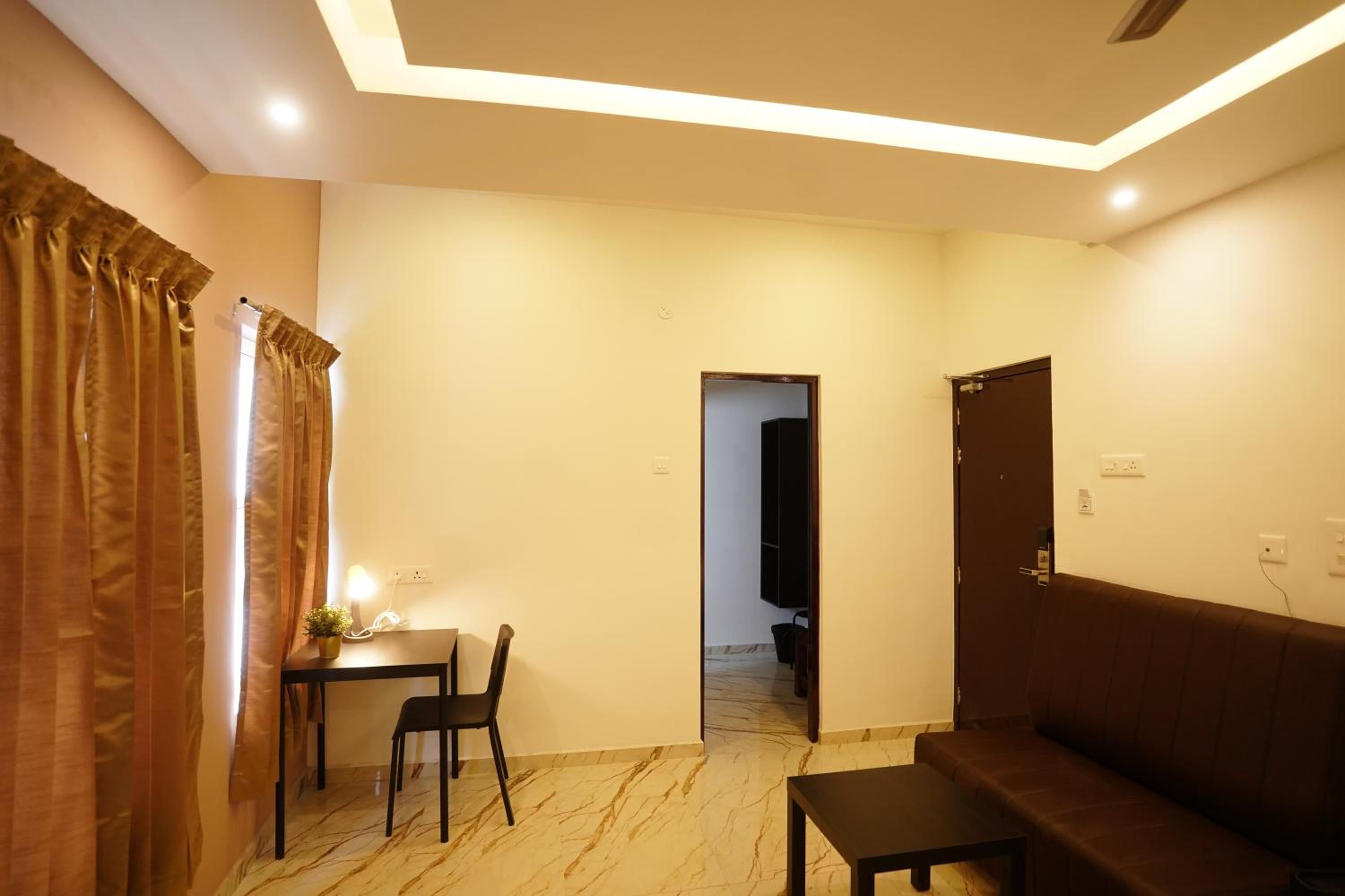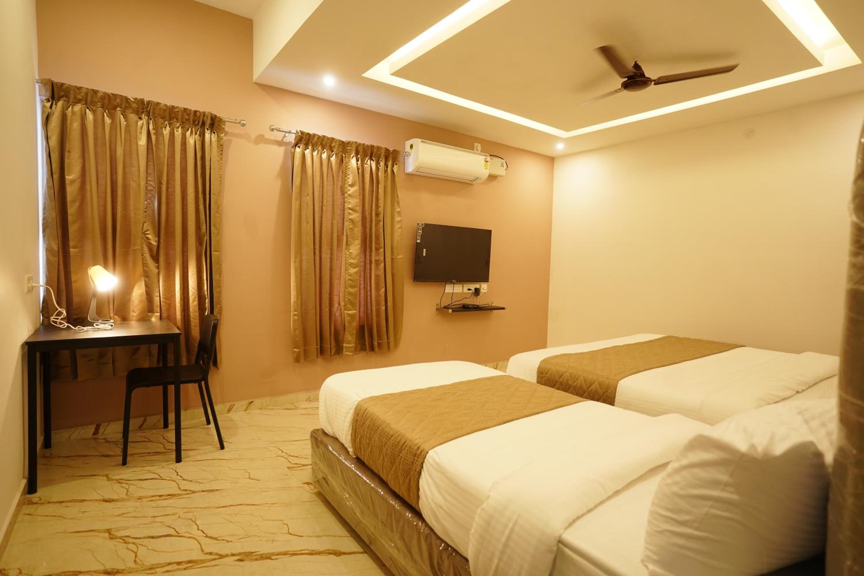 L’hôtel était très propre avec le nécessaires pour la douche. La chambre était très grande, un lit super confortable et grand. Une bouilloire avec thé et café était à notre disposition dans notre chambre avec une table et une chaise et un canapé. L’hôtel restaurant , tout à côté Saratha rajans, était fabuleux avec un personnel très bienveillant. Nous y avons mangé tous les soirs.