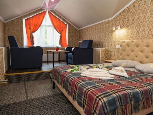 Бронювала останній номер, то був диван-ліжко, але по факту нам дали або іншу кімнату, або просто замість дивану вже двоспальне ліжко, то ж були приємно здивовані. Ліжко було не супер зручне, бо трохи відчувалися пружини, в номері, що брали раніше (стандарт) ліжко було хороше. Але в цілому все добре.