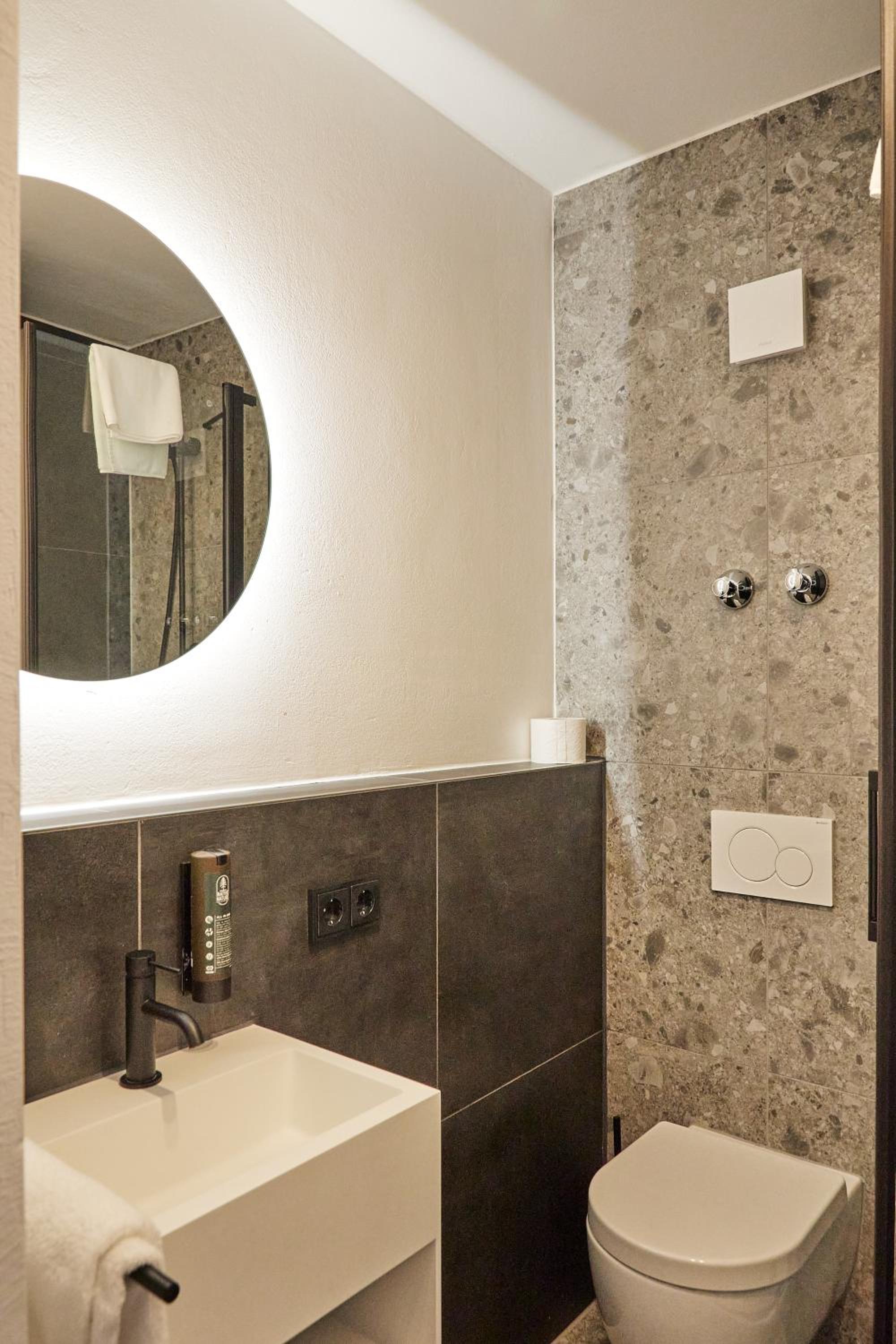 Bad war sehr klein, gleichzeitig mit 2 Personen im Bad kaum möglich. Kein Spiegel im Zimmer. Nur 3 Kleiderbügel im Schrank.