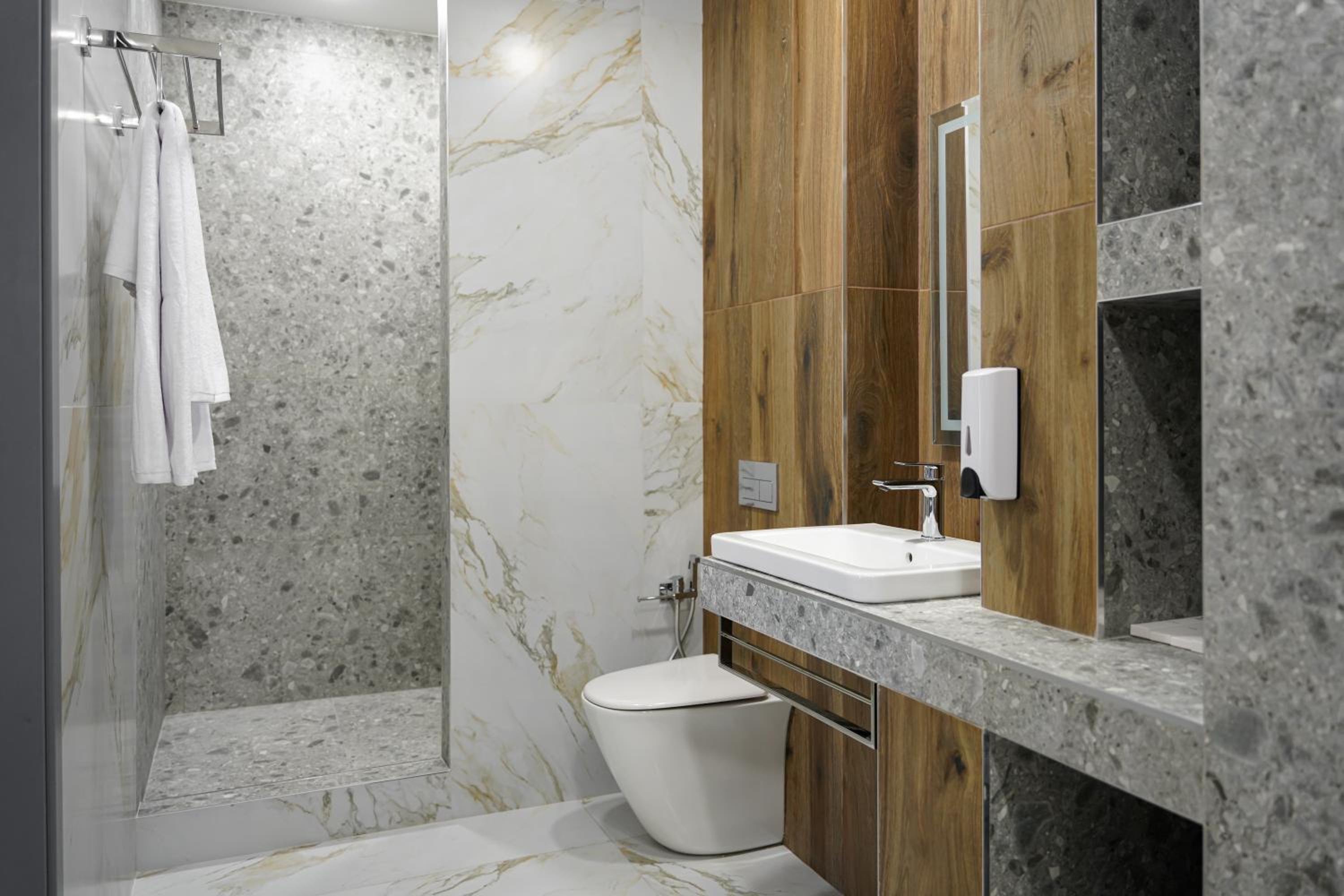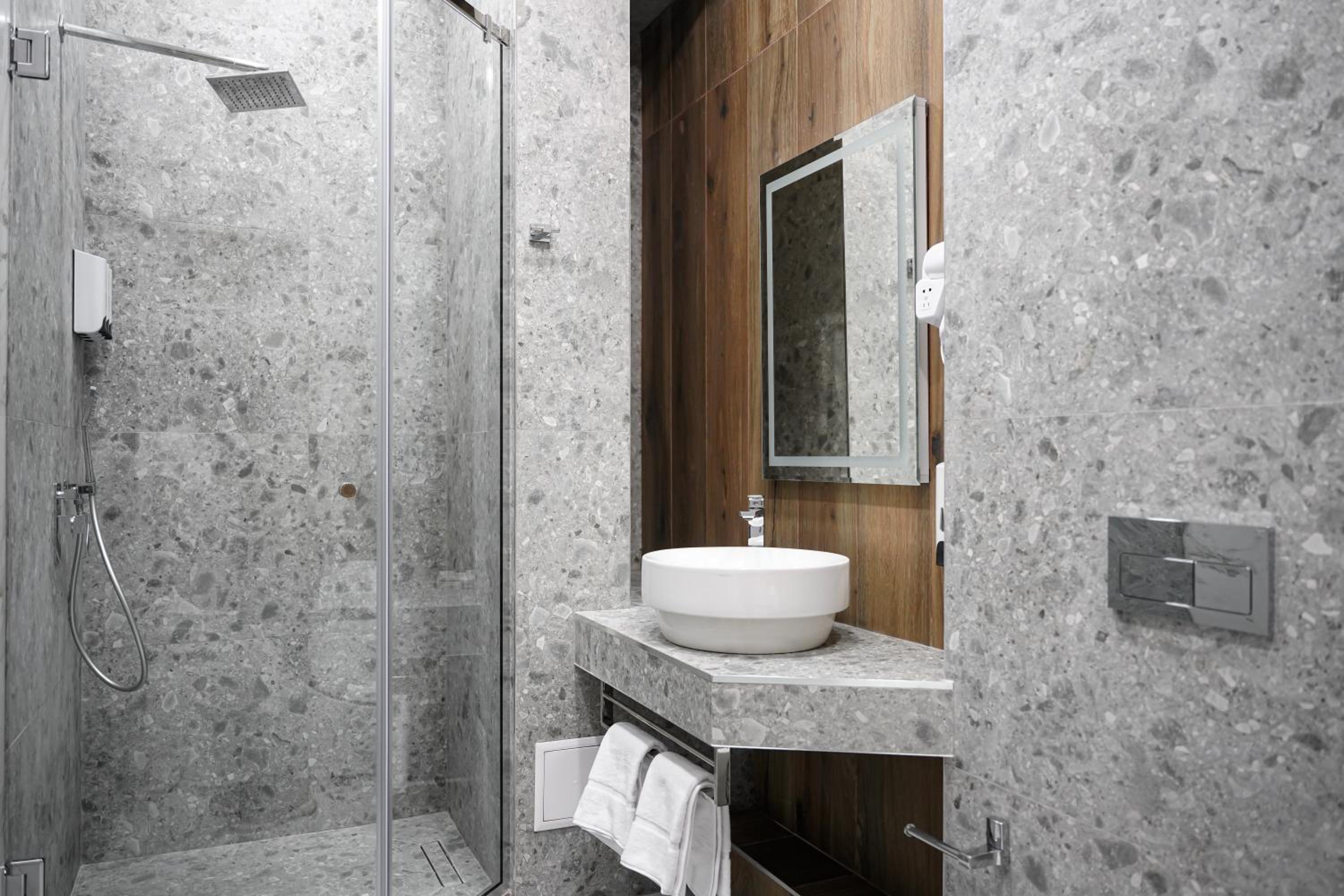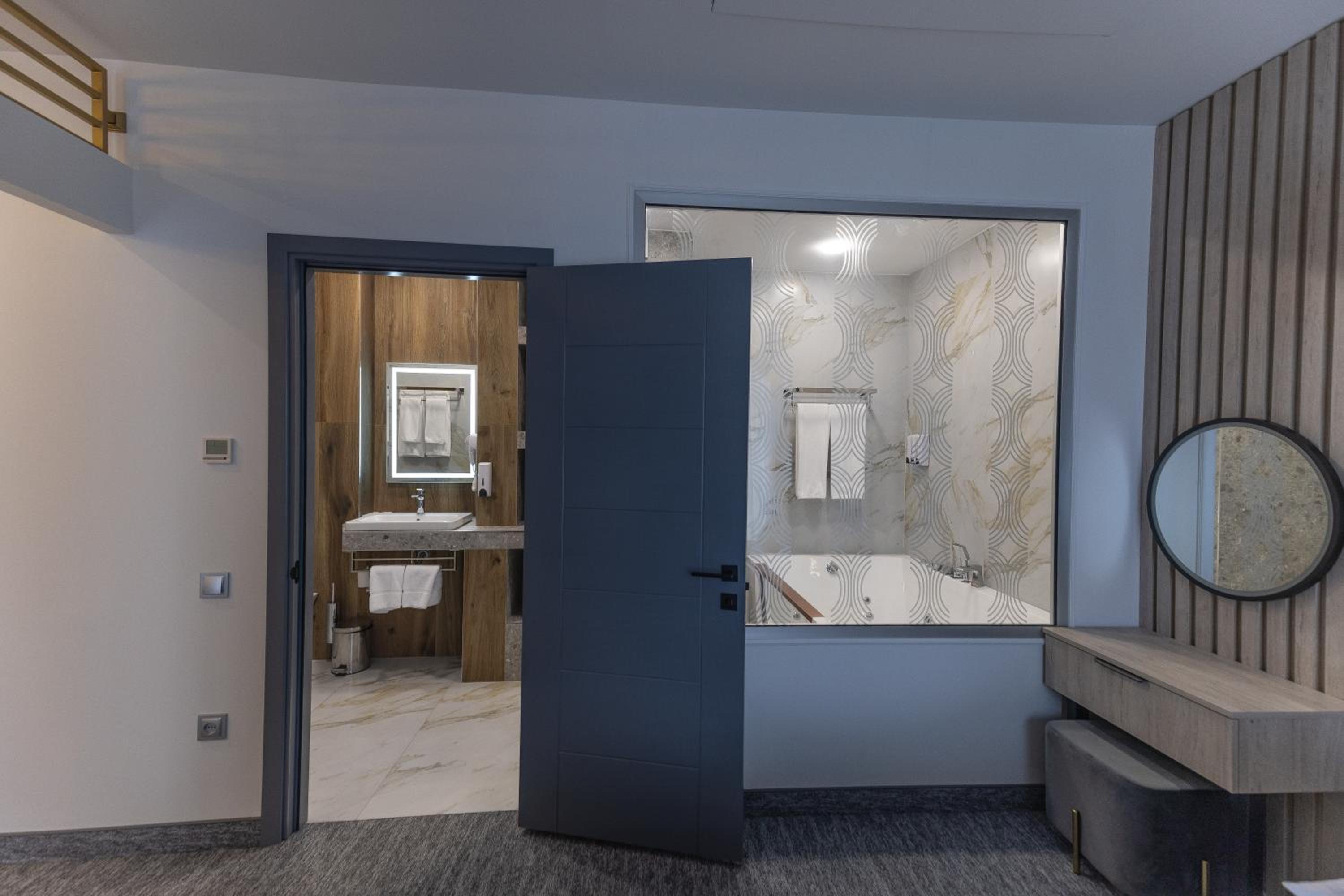 Везде очень чисто, все целое, все работает. Кровать удобная. Два стола, достаточно, чтобы перекусить втроем, поработать, хорошее зеркало, чтобы накраситься. С горячей водой проблем не было. Халаты для SPA, все мелкие гигиенические принадлежности в наличии. В SPA джакузи на 2-4 человека и небольшой бассейн с более теплой водой, чем обычно бывает. Сауна, хамам и бак с холодной водой ополоснуться.