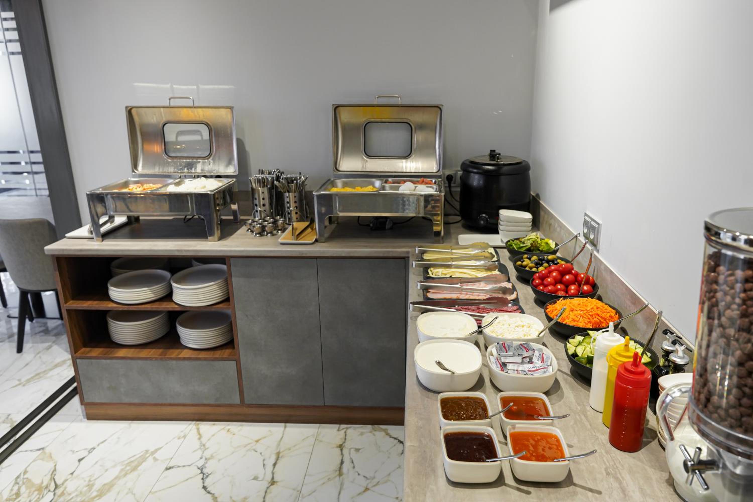 В ресторане брали только простую еду - пюре, котлету, пасту, вполне вкусно. На завтрак небольшой шведский стол, всего хватает.
