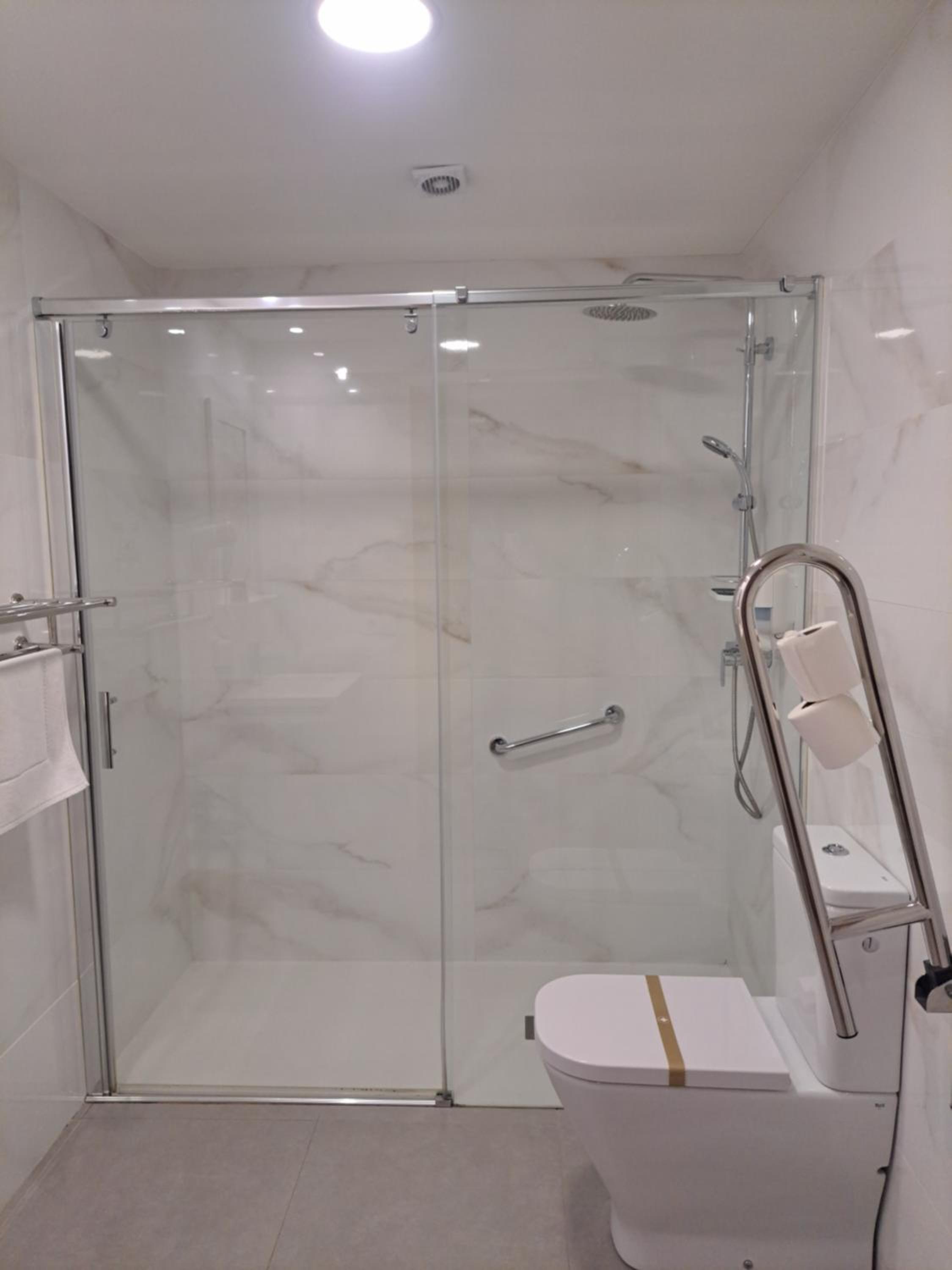 Habitación y baño muy cómodos y limpios, tiene buena ubicación y da a una calle peatonal tranquila