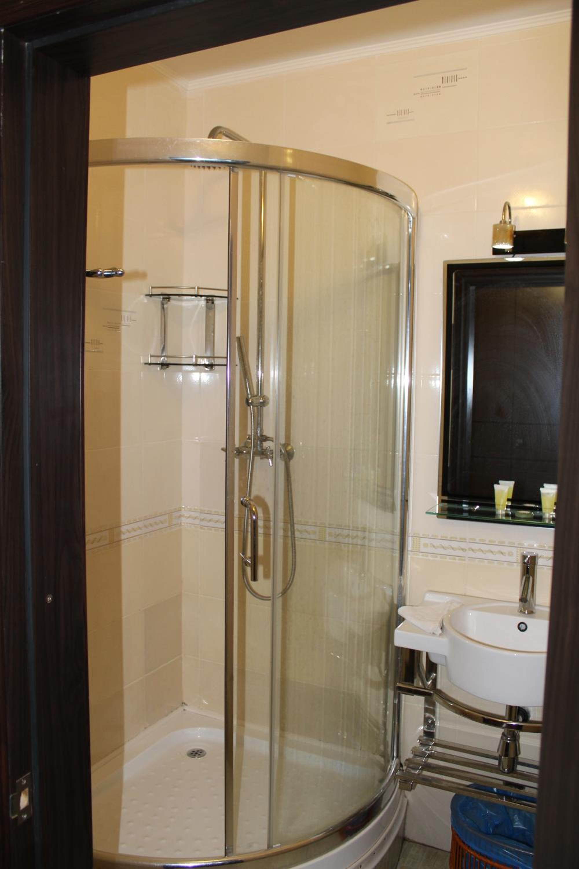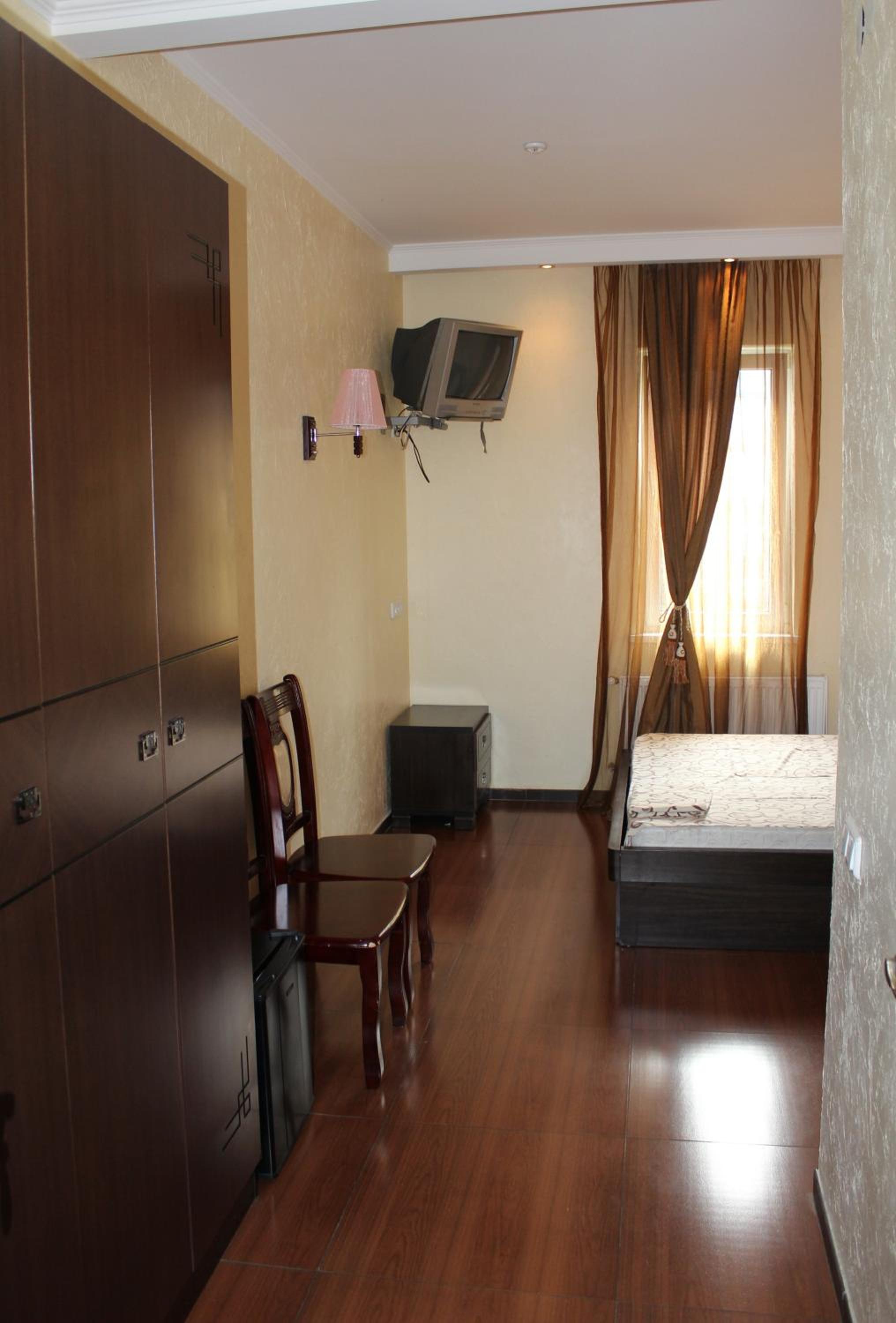 Коли бронювали, було написано, що це готель. Приїхали на місце - а це мотель над дорогою. Не сподобалося місце. На першому поверсі знаходиться шиномонтаж та мийка. Вхід в мотель через кімнату, де люди очікують свої авто. Потім проходимо через кімнату адміністратора мийки/сто. Вузенькими сходами піднімаємося на другий поверх. Там повний безлад, склад якогось непотребу, запах шин стоїть на всьому поверсі. Самі номера знаходяться на третьому мансардному поверсі, і вікна виходять на дорогу. При бронюванні букінг показав, що повна вартість такого номера 2800, і тільки сьогодні є можливість зняти його за 1400. На мій погляд, ціна за мотель над мийкою завищена.