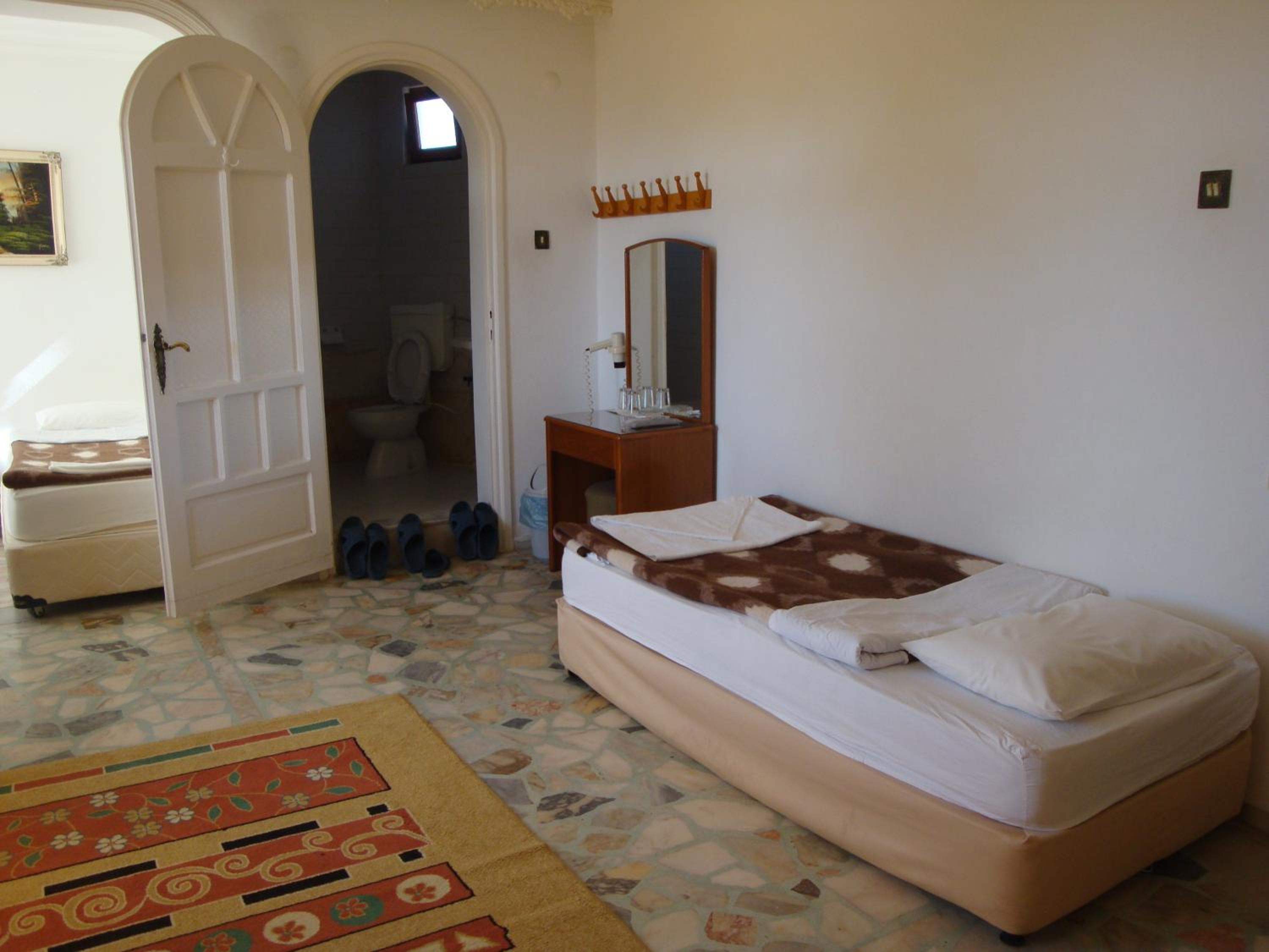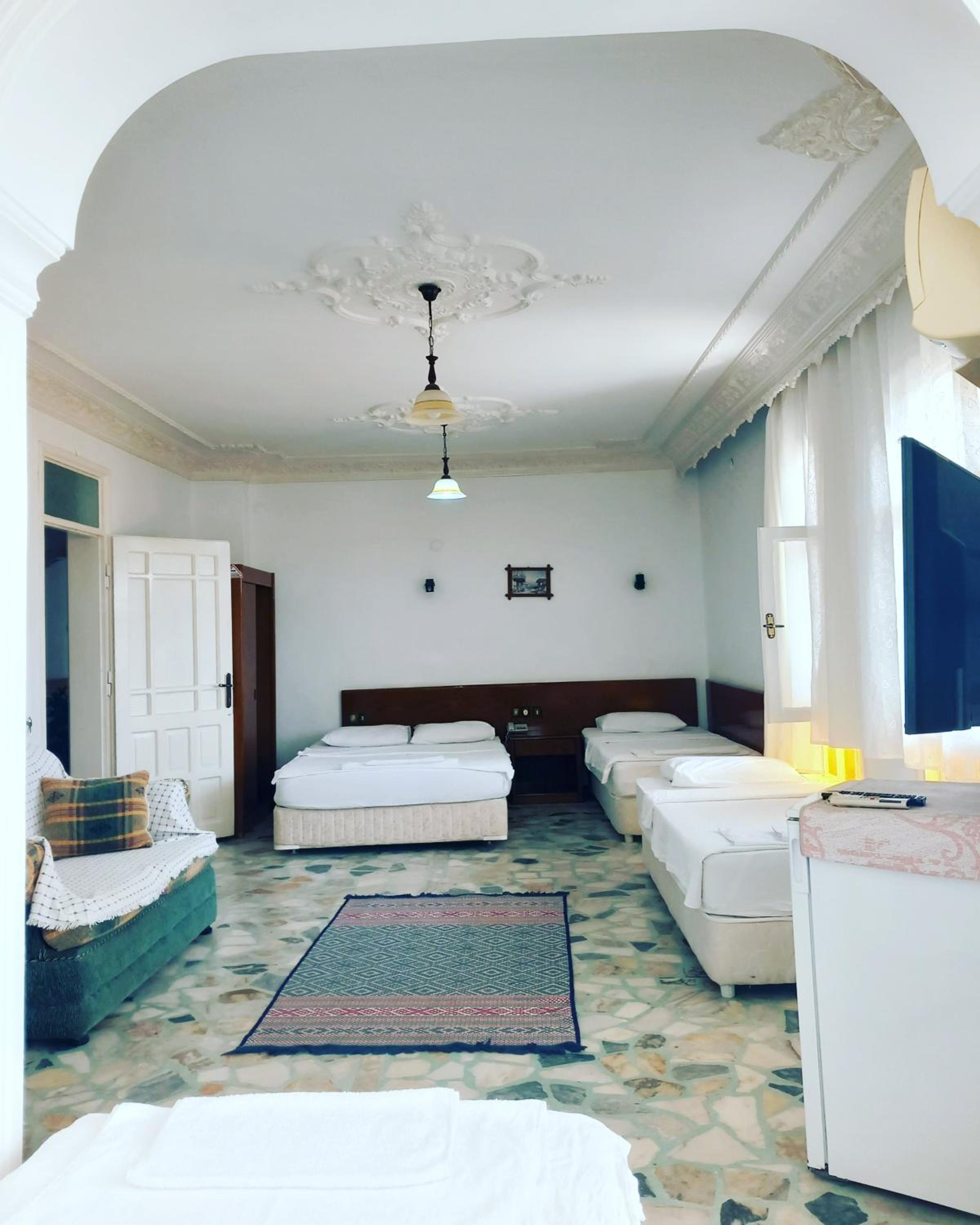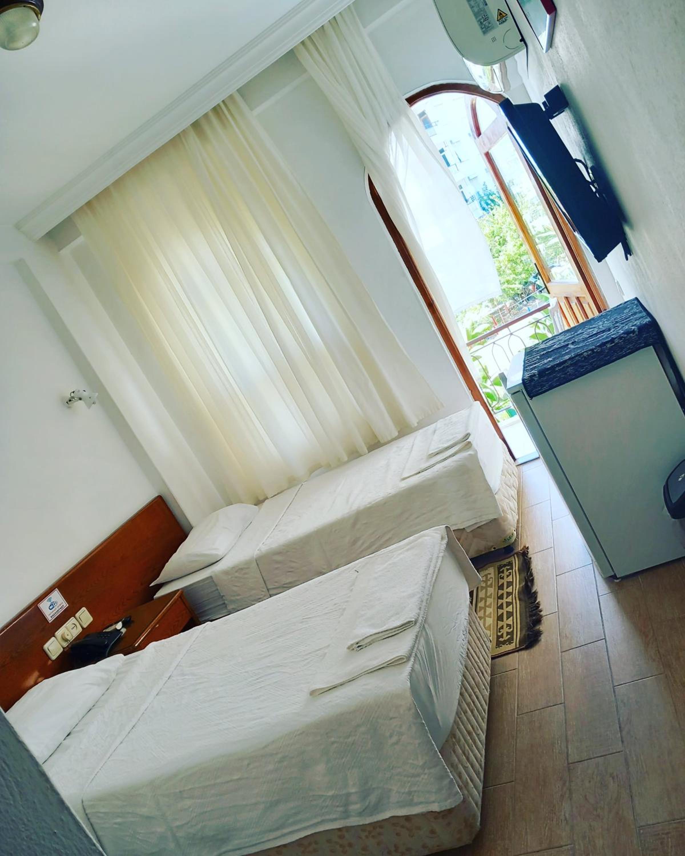 We wanted to rest one night on our way to Antalya and chose this hotel due to the high score on Booking. Big mistake, the hotel looks terrible, the worst of the ones I have seen in Turkey. I think it has not been renovated for over 30 years. In the room they gave us, the sheets were torn and stained. The bathroom hanger and the toilet paper holder are full of rust. The shower head was very dirty. The windows with very deteriorated wooden frames, you could hear all the noises from outside. The balcony and bathroom doors with some keys tied with dirty string. Very old and shabby furniture. We decided to continue our journey after only 20 minutes and we still had to pay half of the price. I regret I was too tired to take any photos or make a complaint to Booking.