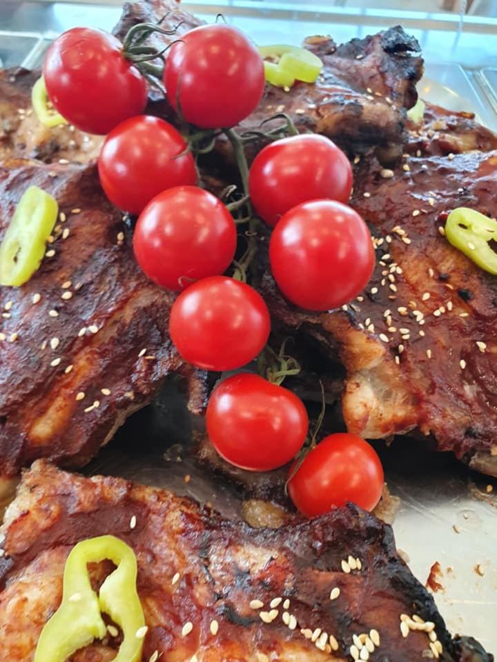 Вкусната храна, напитките и обстановката отвън на ресторанта.Също така и хотелската стаята беше много уютна.