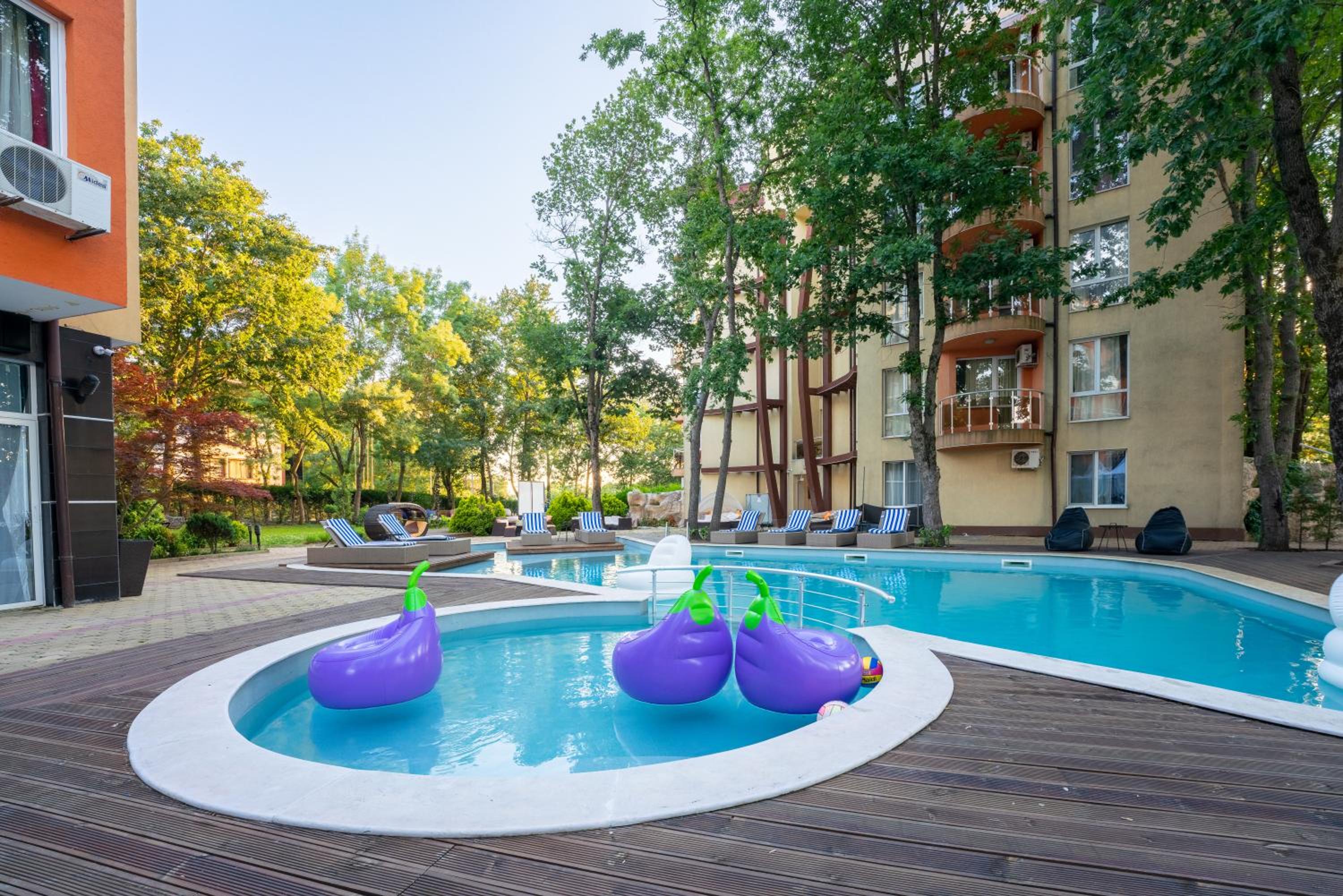 Прекрасно място. Домакините са страхотни, много е чисто, има чист басейн. Благодарим ви. 😊 На една минута от Автогара и на 5-6 минути от плажа.