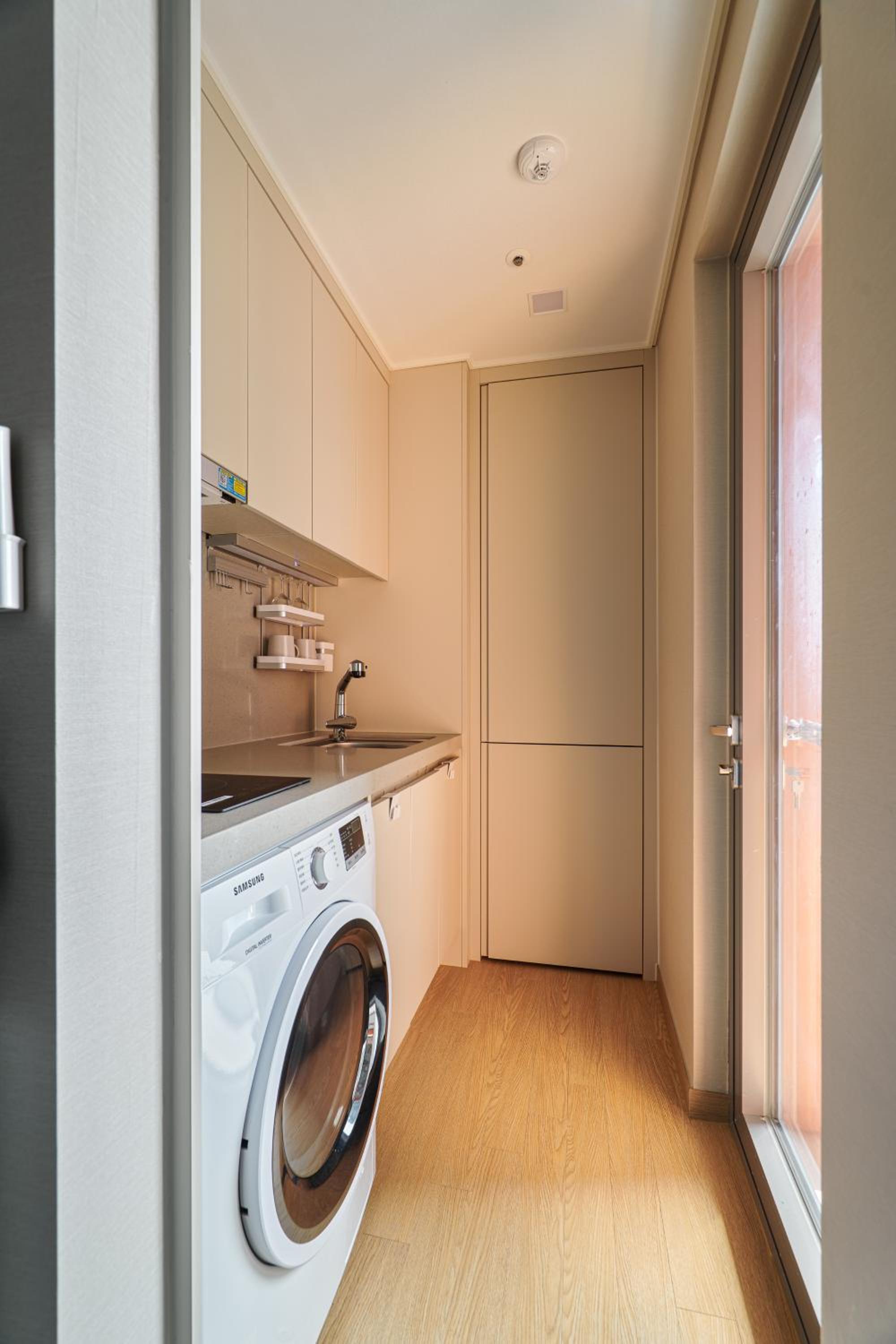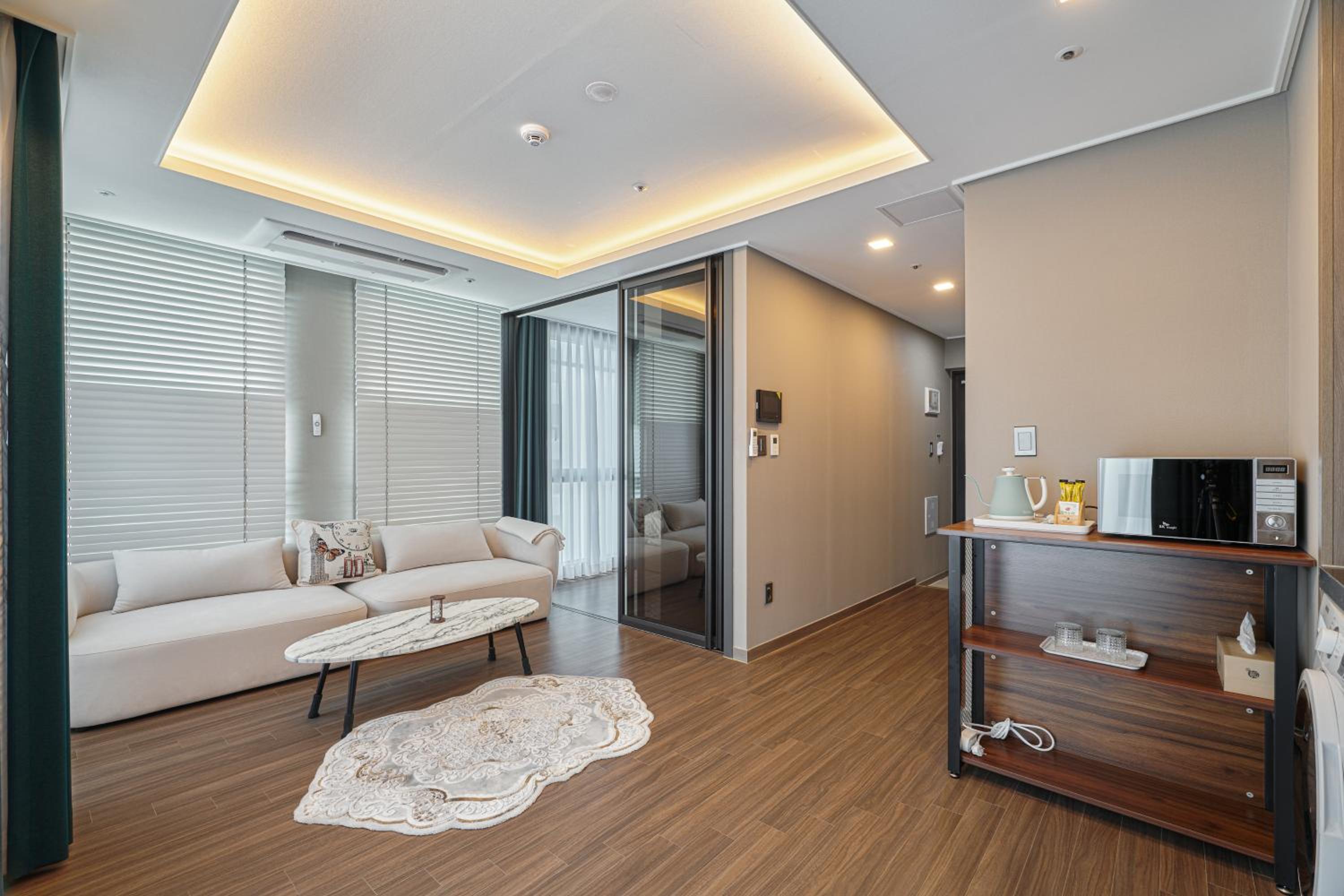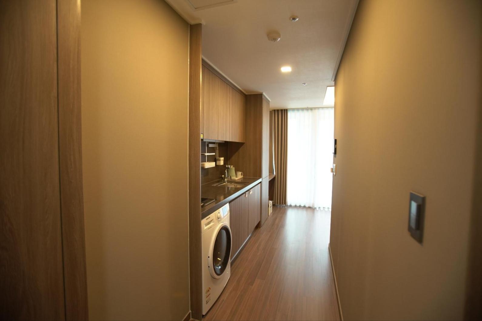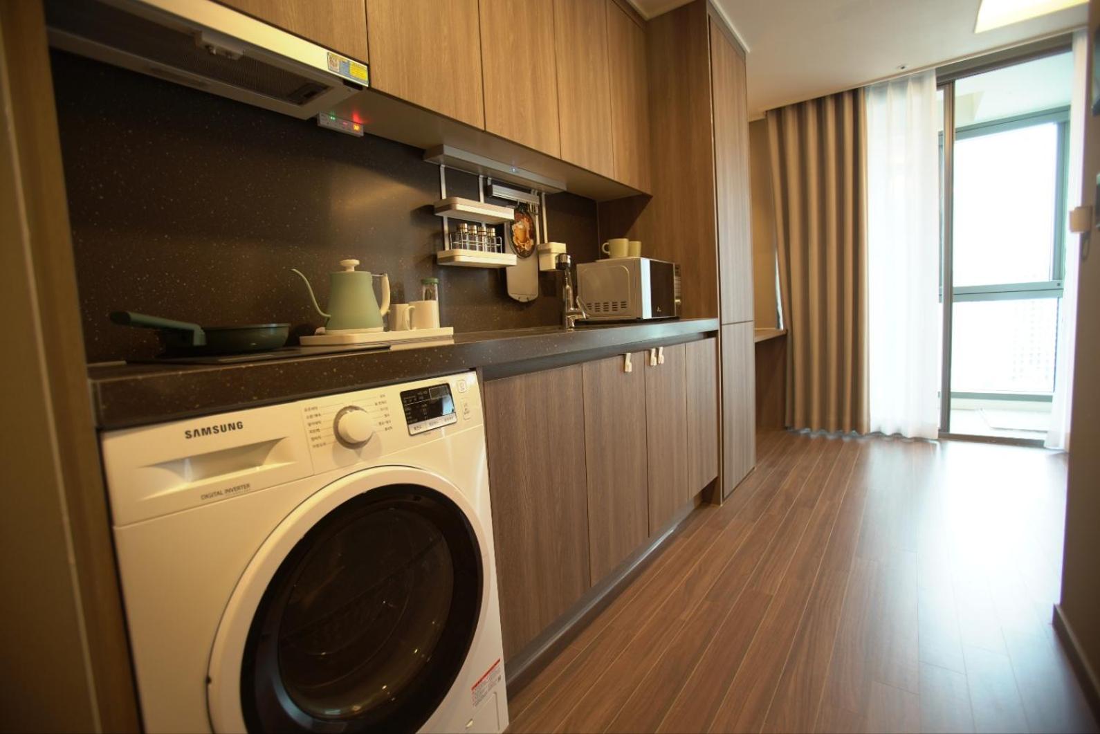 住宿地點超棒,樓下就有EMART和CU,下樓就是海雲台大街,餐廳林立購物方便! 房型寬敞適合四人同住、房間乾淨且備品充足,幾乎可以空手入住的狀態! 小廚房和洗衣機非常方便,適合家庭旅客長時間入住。