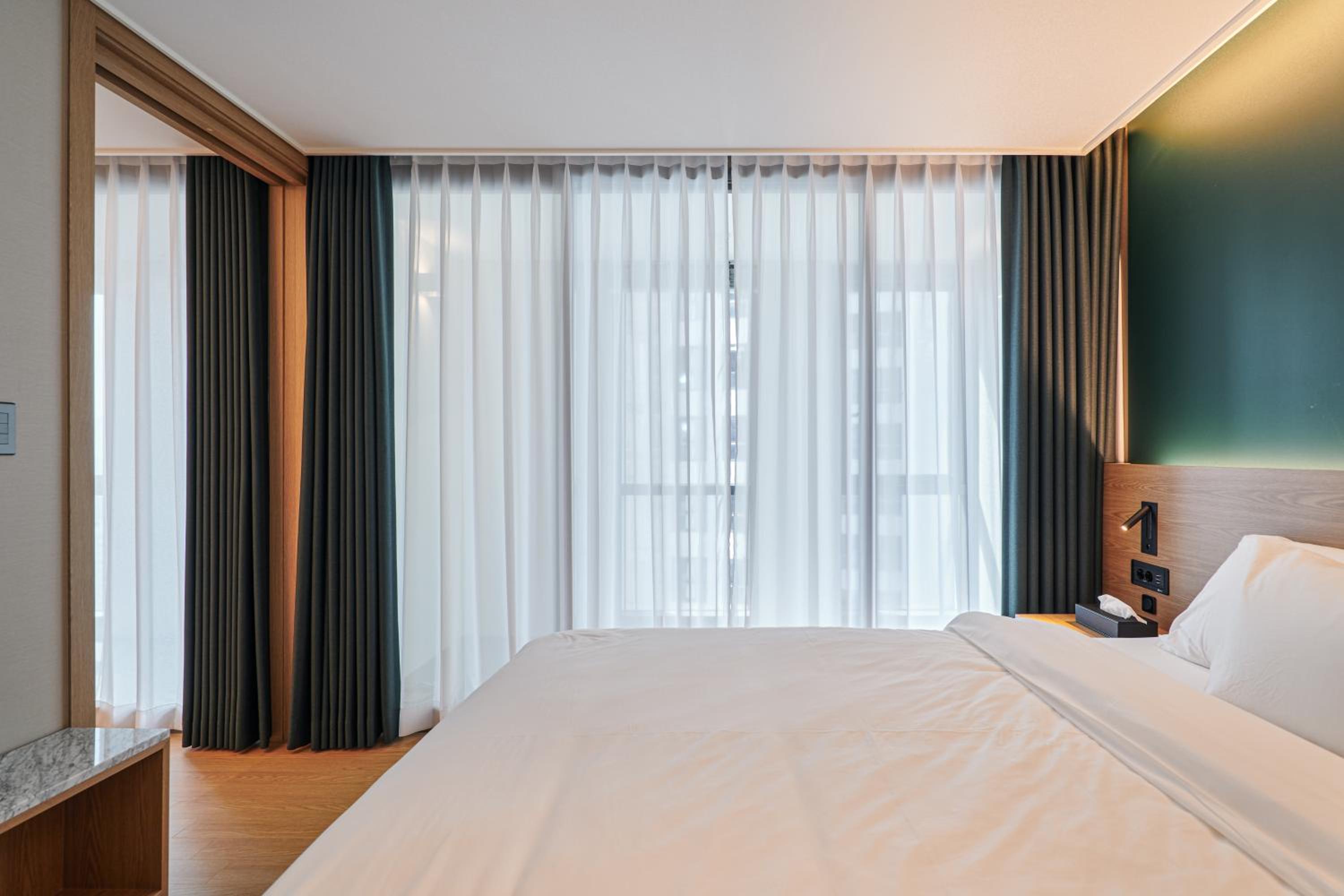 Sienna Ambassador Residence, located just 500 meters from the famous Haeundae Beach in Busan, offers a sustainable and upscale stay experience. The air-conditioned rooms come with modern amenities like free WiFi, private parking, and a fully equipped kitchen.