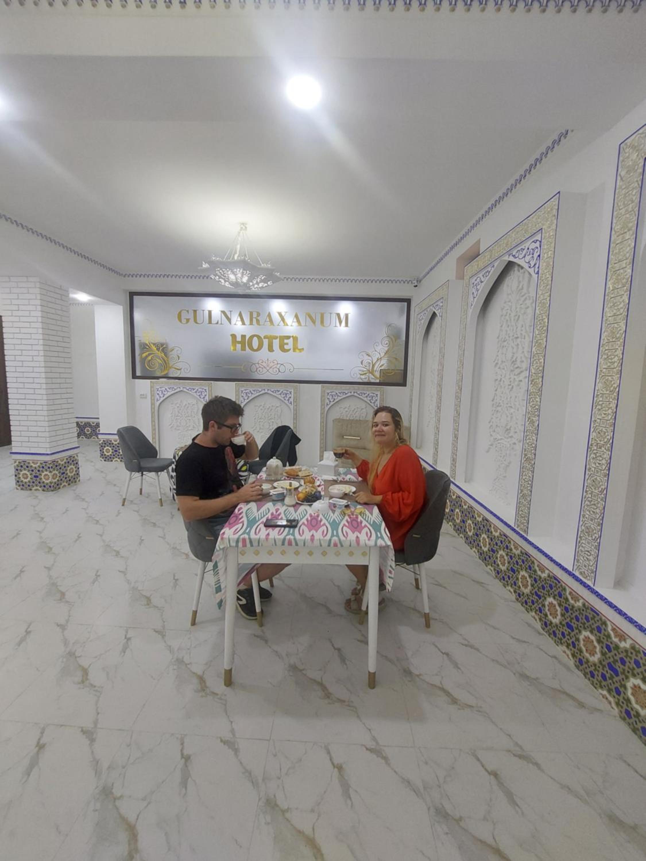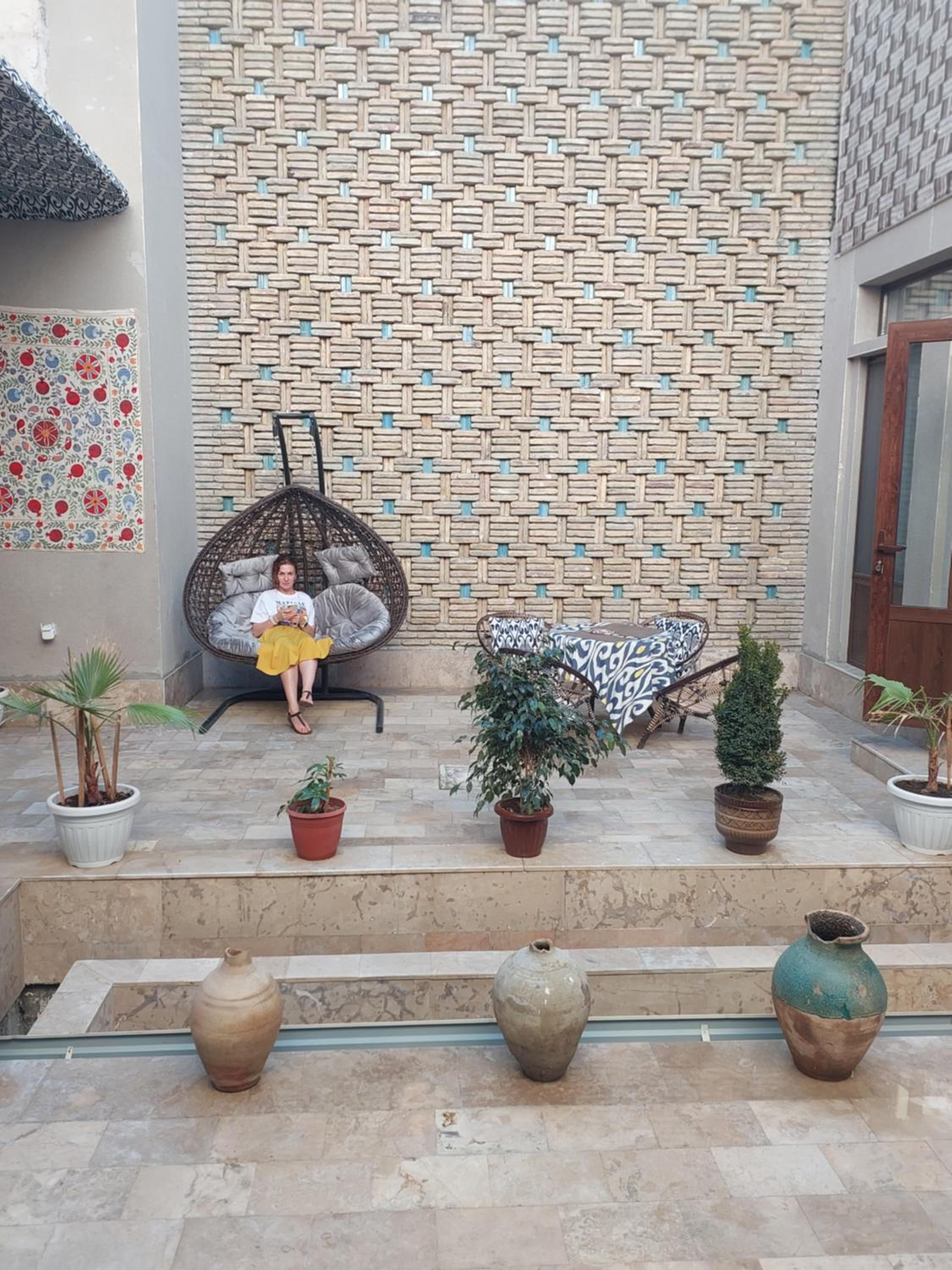 Это самый уютный и атмосферный отель за всё наше пребывание в Узбекистане! Вкусные завтраки, даже приготовили сух паёк к нашему раннему отъезду. Прекрасный юноша менеджер отеля работает даже получше многих взрослых! Находиться здесь было одно удовольствие, вместе со всеми гостями отеля жили здесь как одна большая семья. Расположение идеальное, лучше и придумать нельзя!