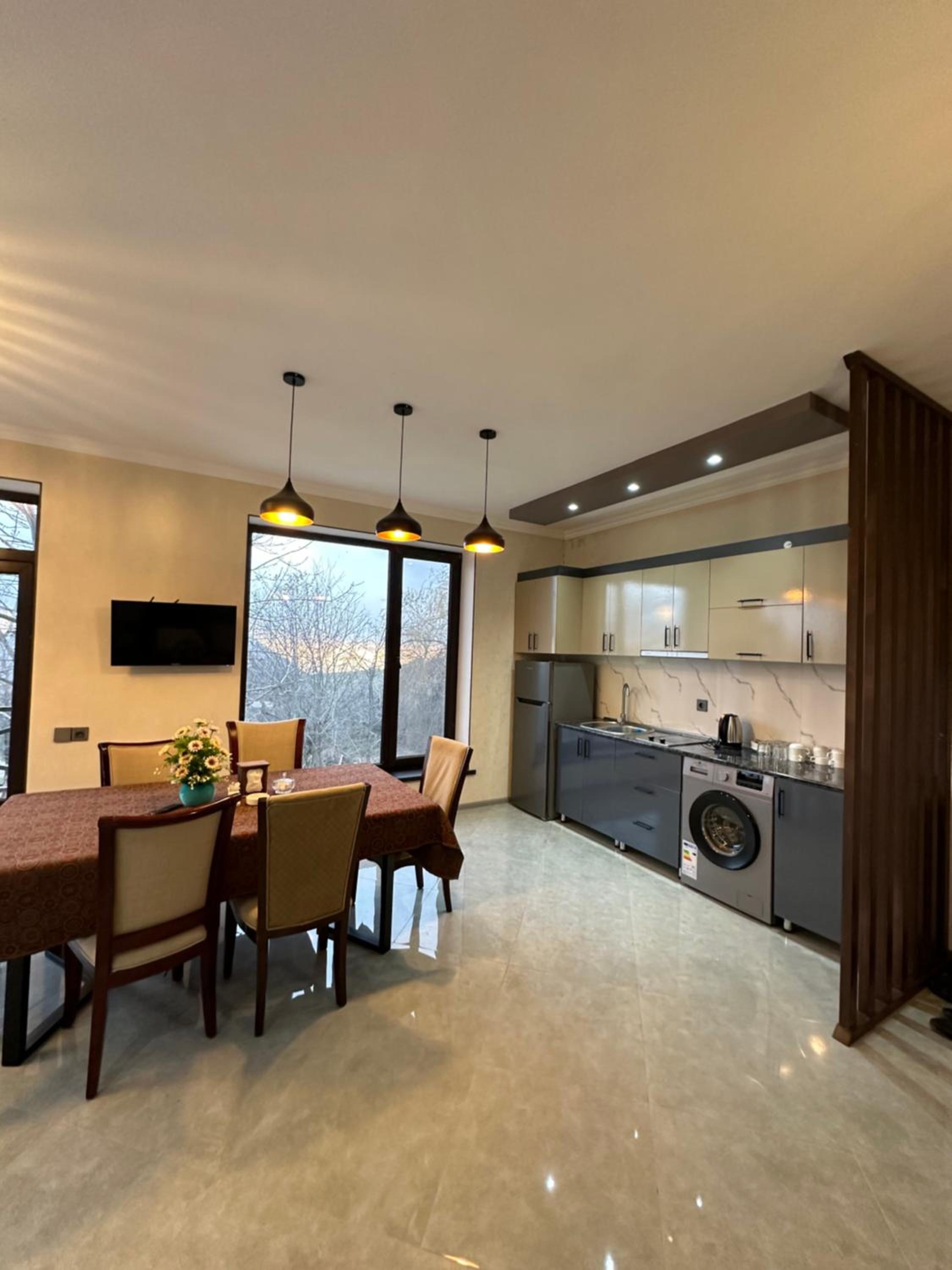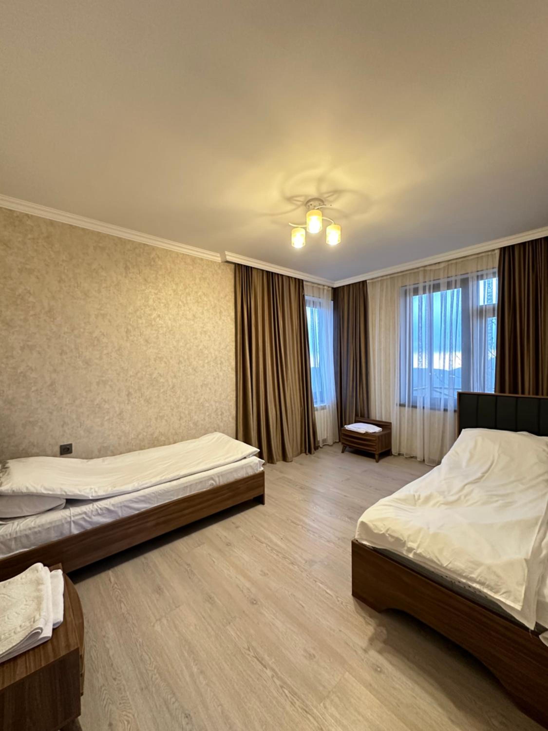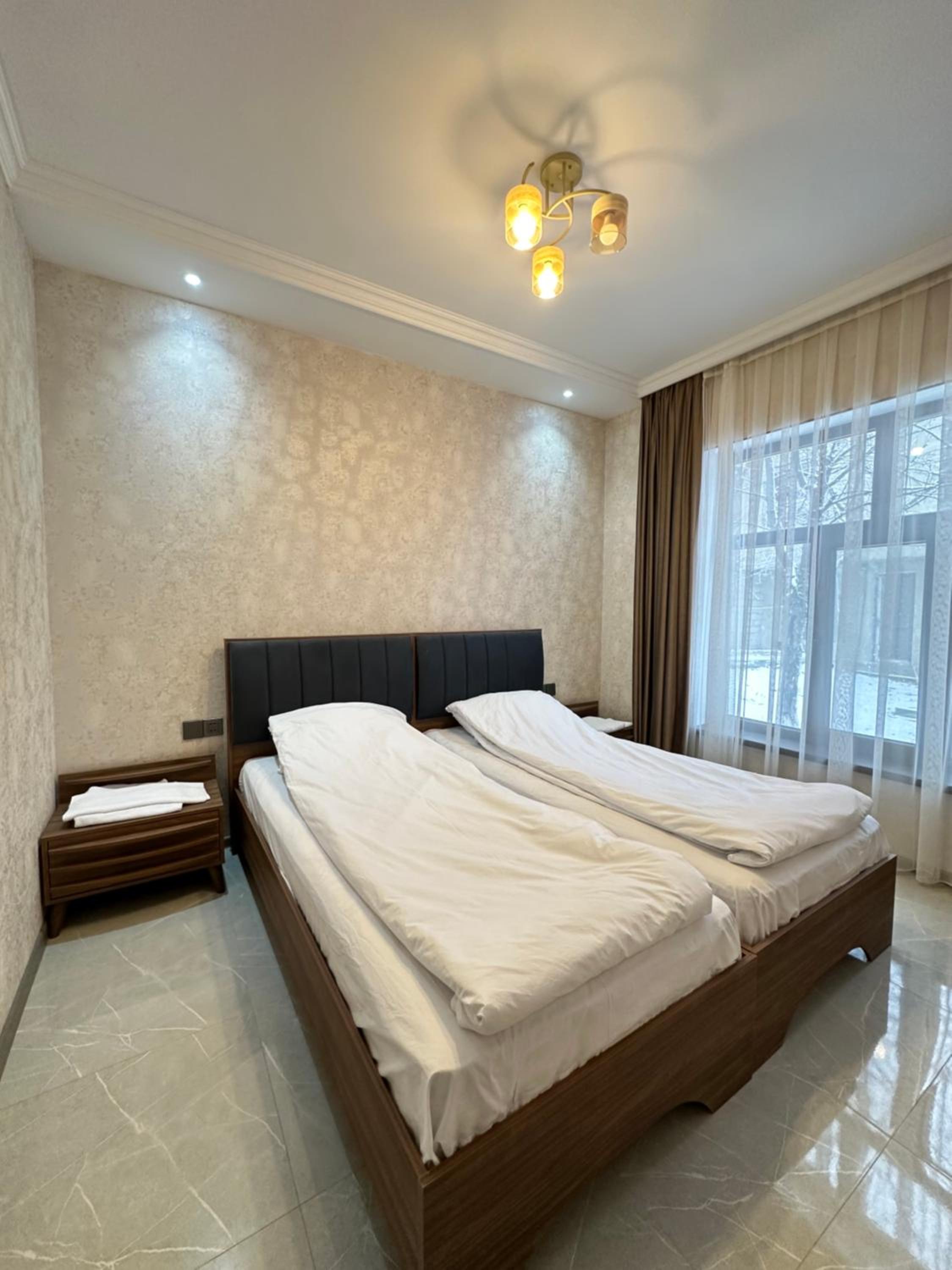 Property is located in good area of Avakhil. Very hospital management and employees. Restaurant works till mid a so you can’t stay hungry at all. Delicious breakfast and food. Good place to stay with family. 45 minutes of driving through beautiful mountains views and your in Shamakhy city. Recommend to stay.