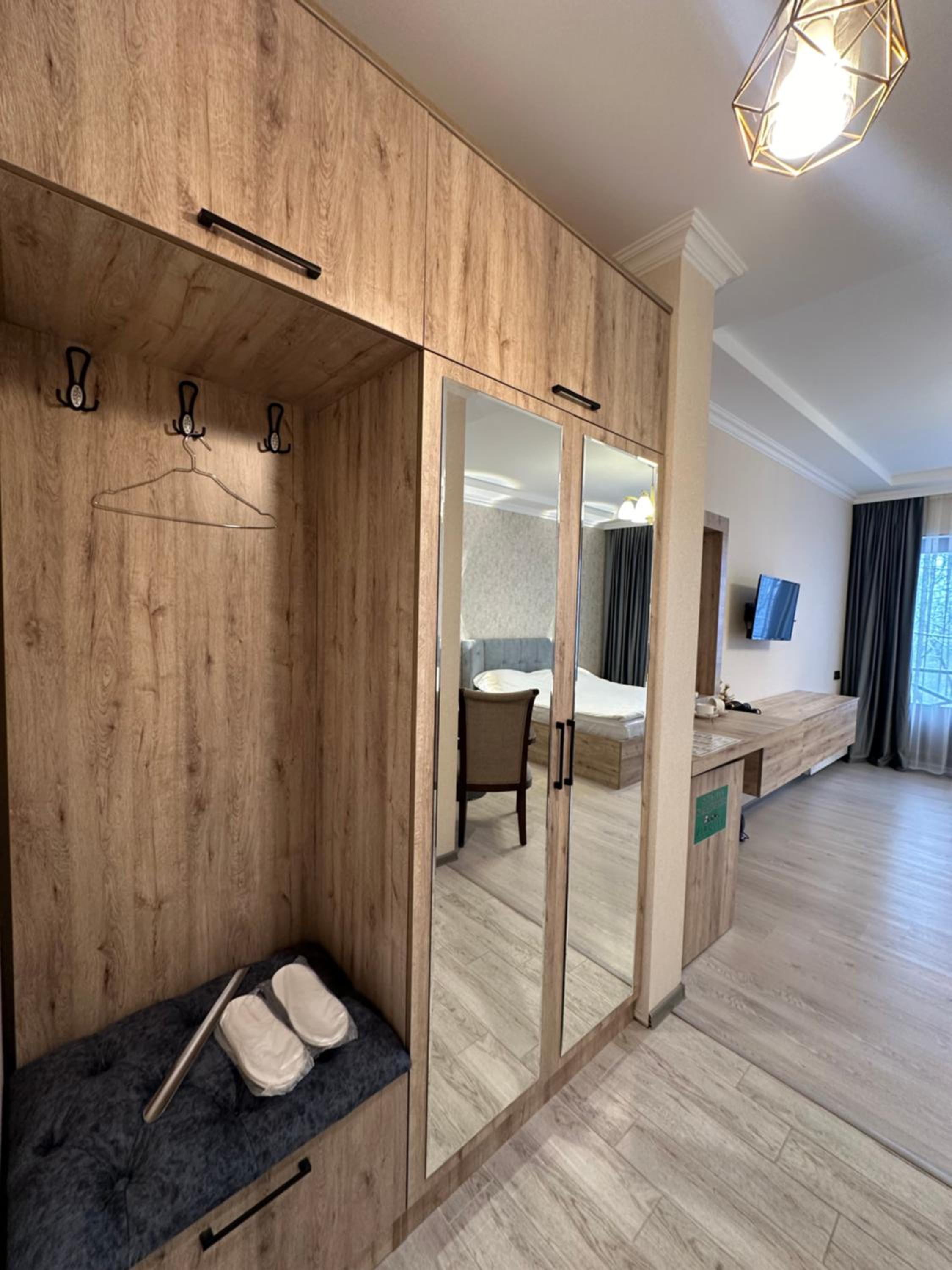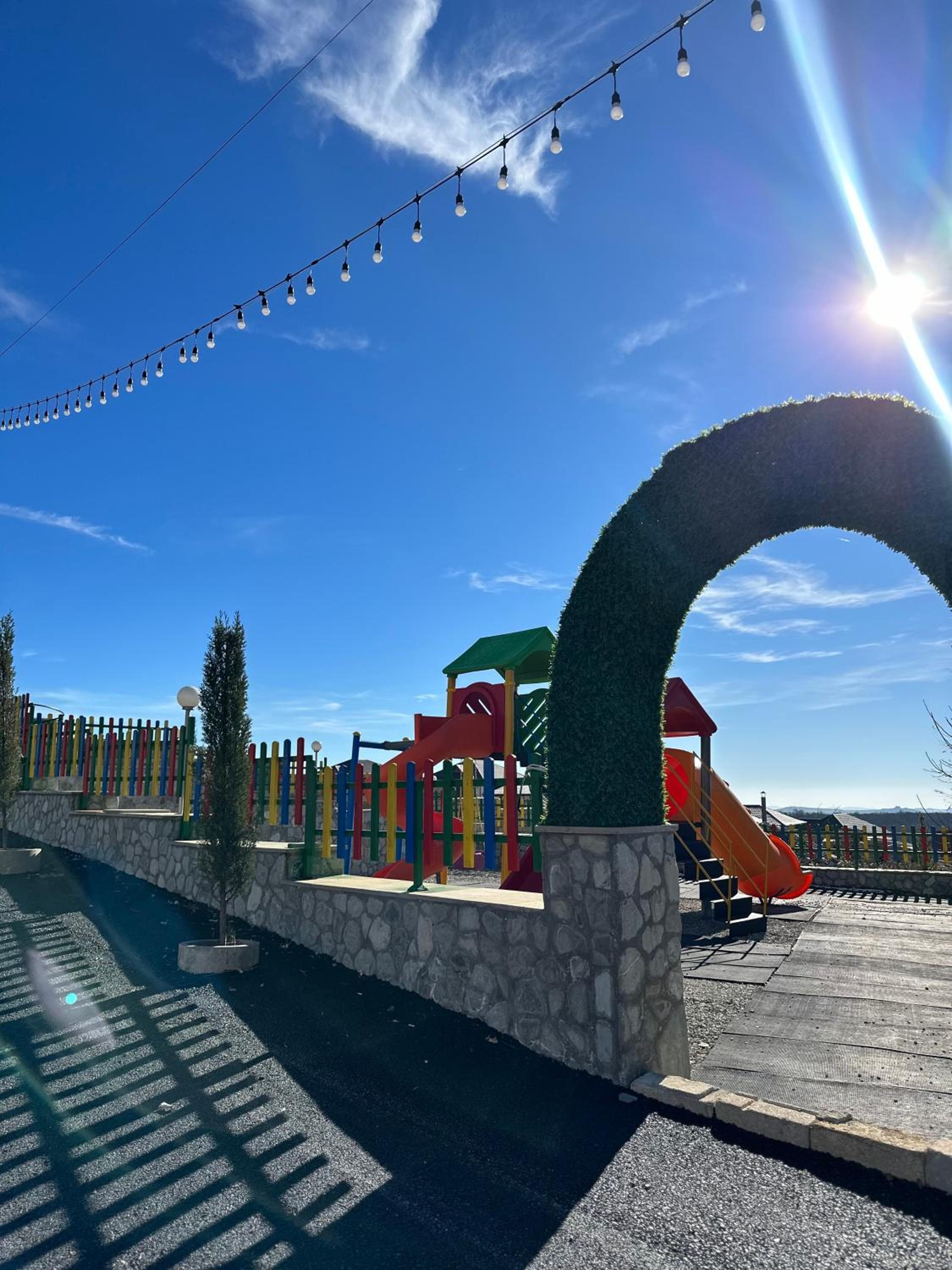 I booked this place because of reviews. However I was disappointed from the first time we arrived at this place. The cottage complex is located in Pirgulu around 30 min from the center of Shamakhi. Since the premise is located on the top of the mountain I don’t recommend this place for families with little babies. We couldn’t even walk with child outdoor. The only thing we liked about the hotel was kind staff and fresh weather. Hotel manager Nasimi was helpful and waitress Amrah also tried to help us. Continental breakfast was also ok.