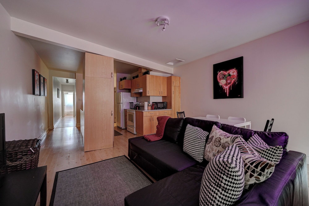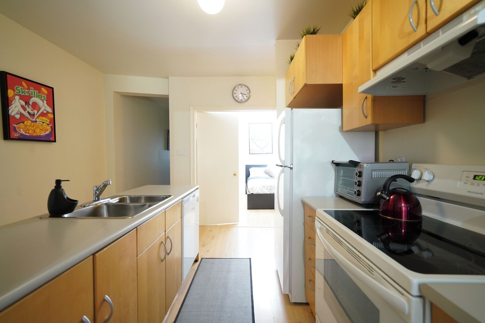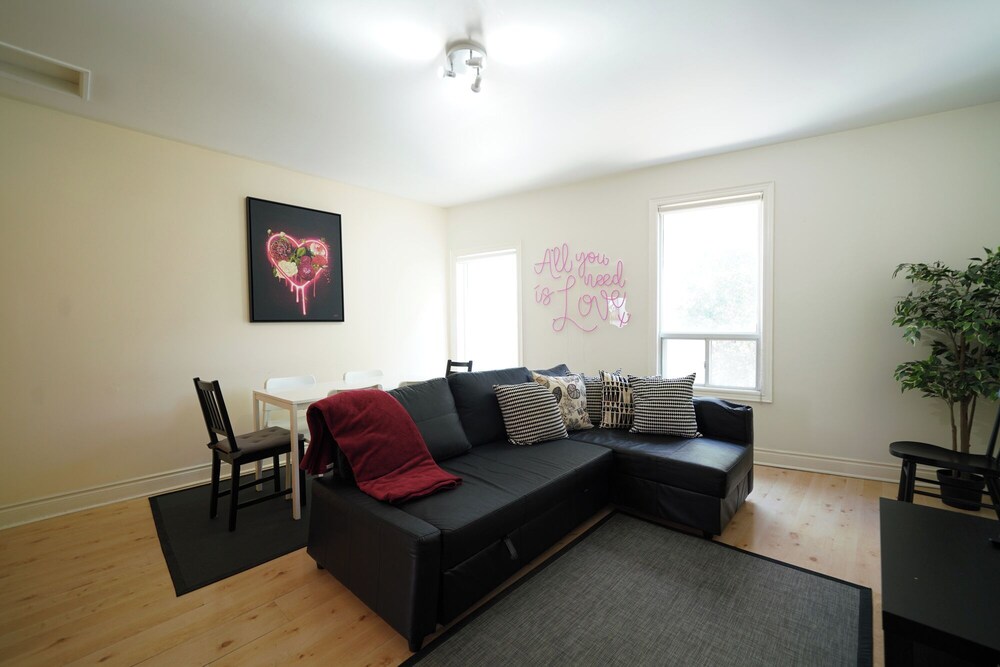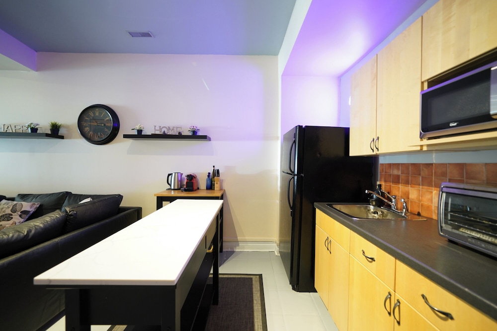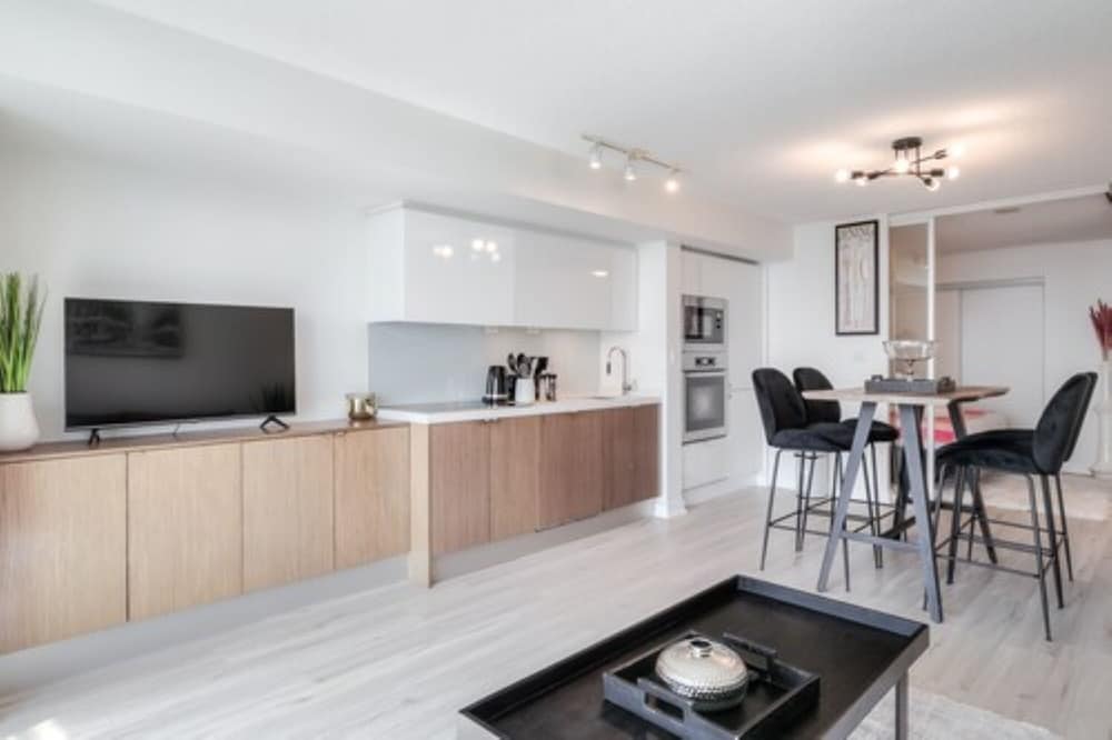 Apartment was fine for the stay as we were going out most of the time. Pet hair was everywhere, stains on the couch seats, stools were very wobbly, a cupboard arm was not attached to the wall. I did not take photos because I assumed this was a reputable company would know the condition of their apartment. Upon checking in they informed us that the credit system they use for deposits did not work and they needed an e-transfer, was leary of doing so, but ended up sending 450$ as we needed a place to stay, we were already driving on the way.