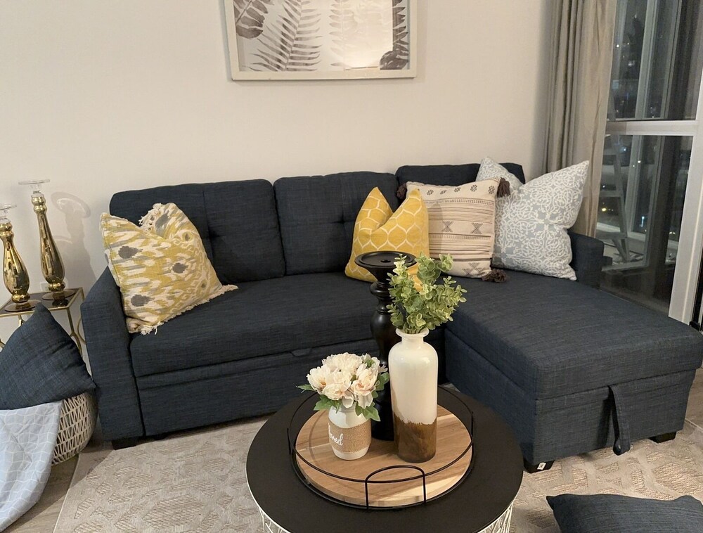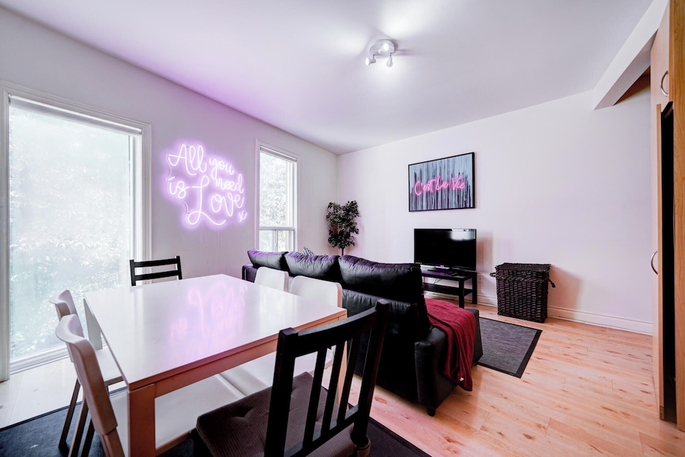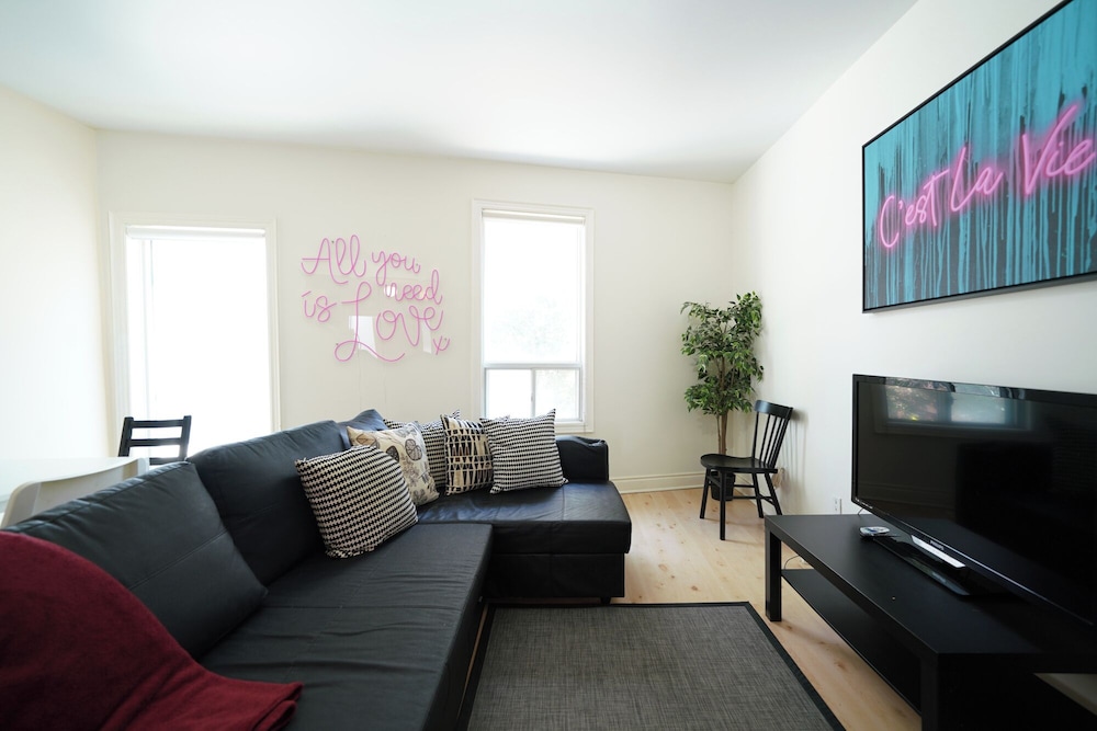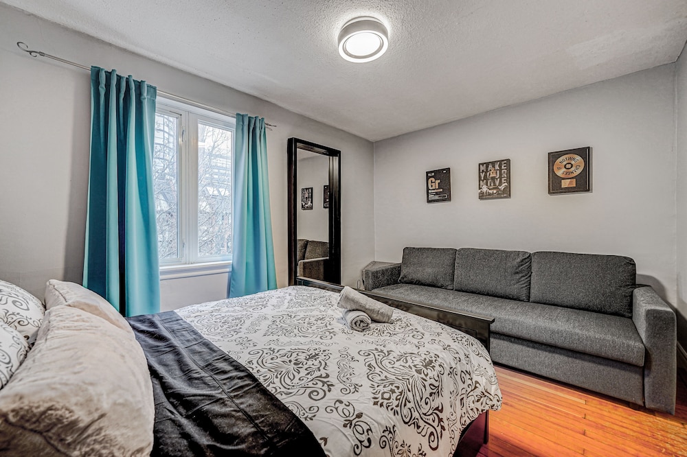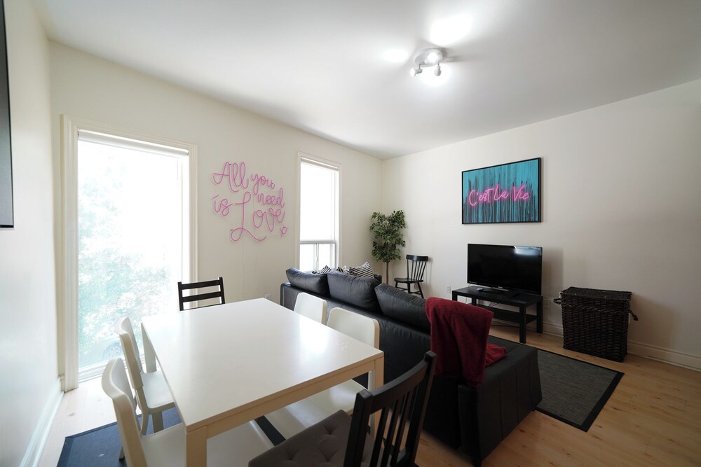 Apartment was fine for the stay as we were going out most of the time. Pet hair was everywhere, stains on the couch seats, stools were very wobbly, a cupboard arm was not attached to the wall. I did not take photos because I assumed this was a reputable company would know the condition of their apartment. Upon checking in they informed us that the credit system they use for deposits did not work and they needed an e-transfer, was leary of doing so, but ended up sending 450$ as we needed a place to stay, we were already driving on the way.