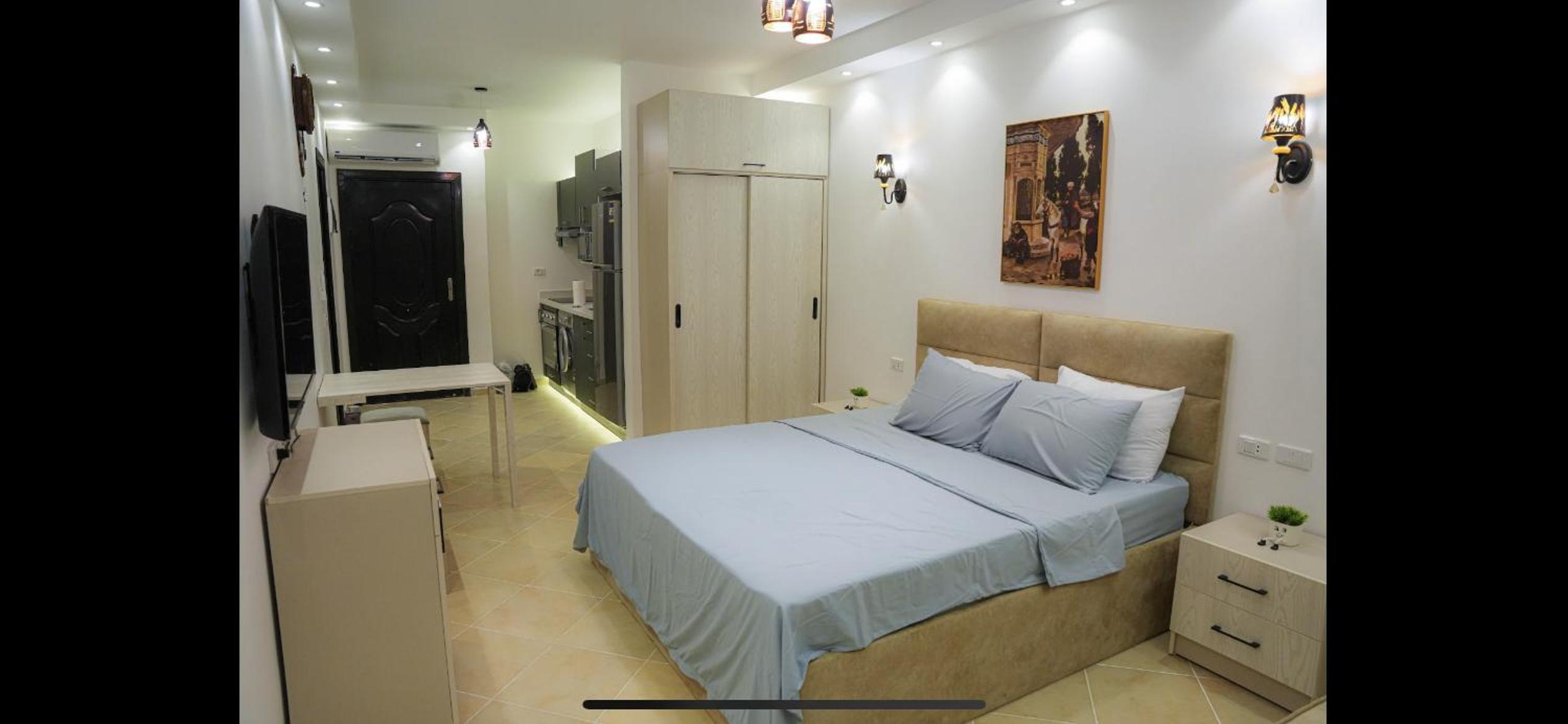 Everything ok in this studio, clean, quiet, kitchen and appliacences working good. Located in strategic position both to Hurghada Marina and downtown. Nice beaches also in front of the residence if you don't want to take taxi or local transports.