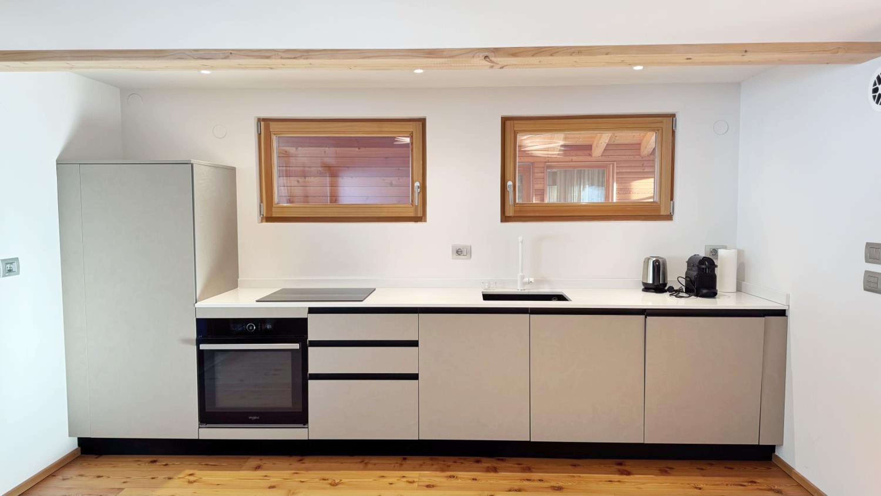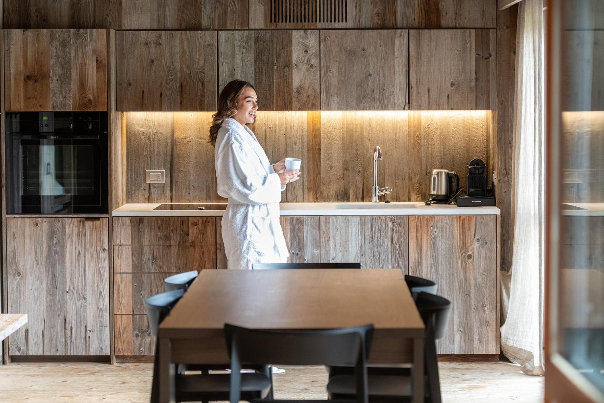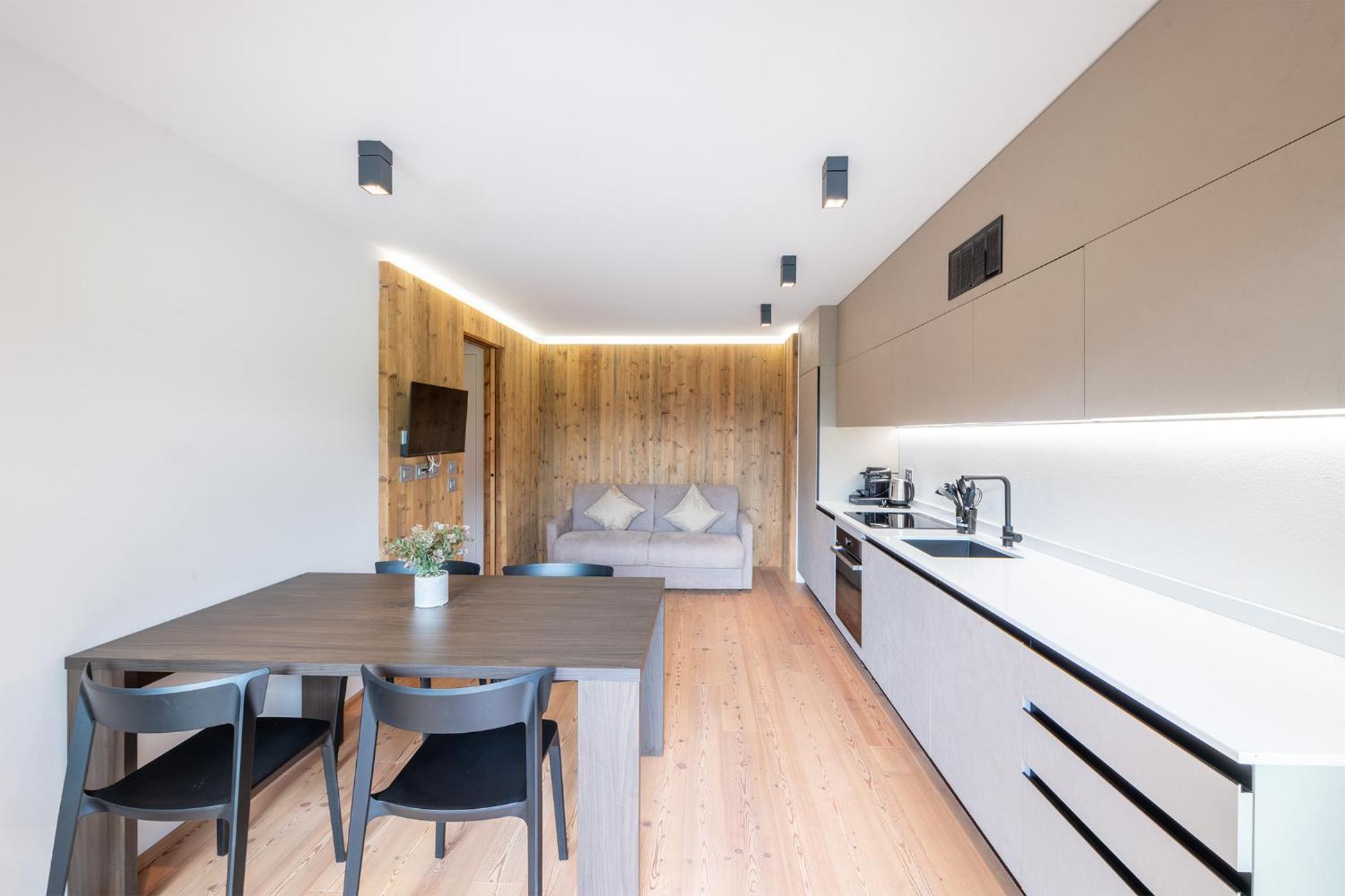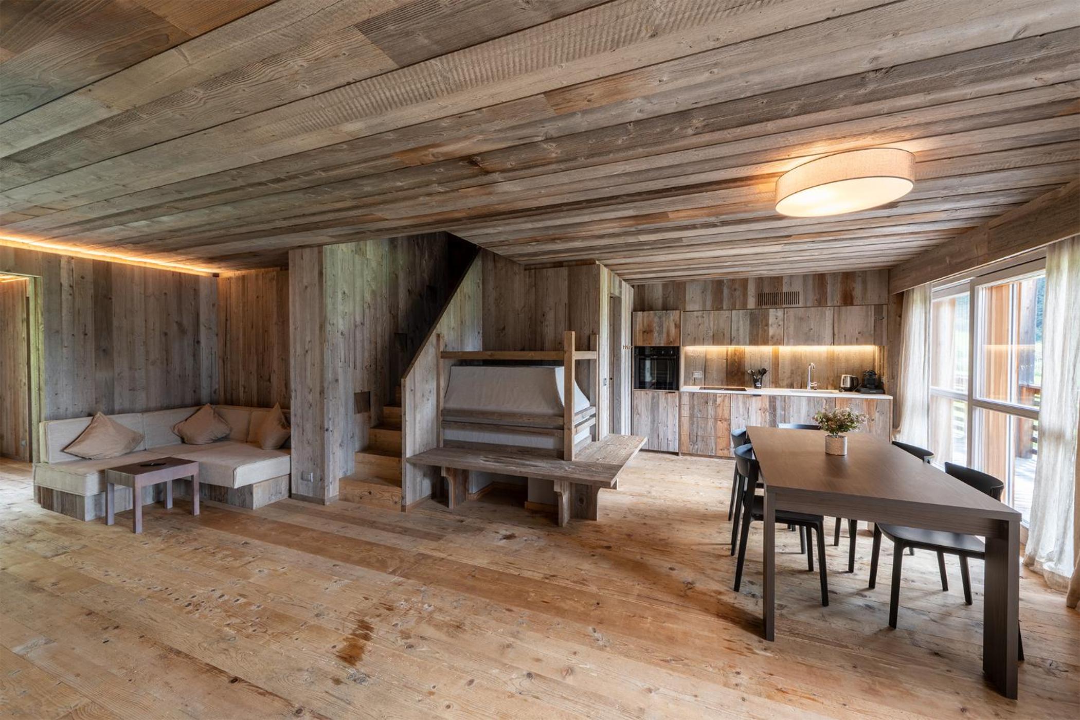 Molto bella la struttura in legno ma allo stesso tempo non ben levigato quindi schegge dovunque anche sul pavimento.. scala perché scivolati. Non c'è moka ma macchina caffè senza cialde e non ti dicono prima di provvedere. Molto piccola zona cucina divano letto visto che appartamento destinato a 5 persone e un bambino piccolo. Nessun seggiolino o letto per il bambino anche se comunicato e pagato per 5 persone e un bambino di 1 anno. Problemi con antincendio che partiva da altri appartamenti e bloccava tutti. Nessuna presenza di personale