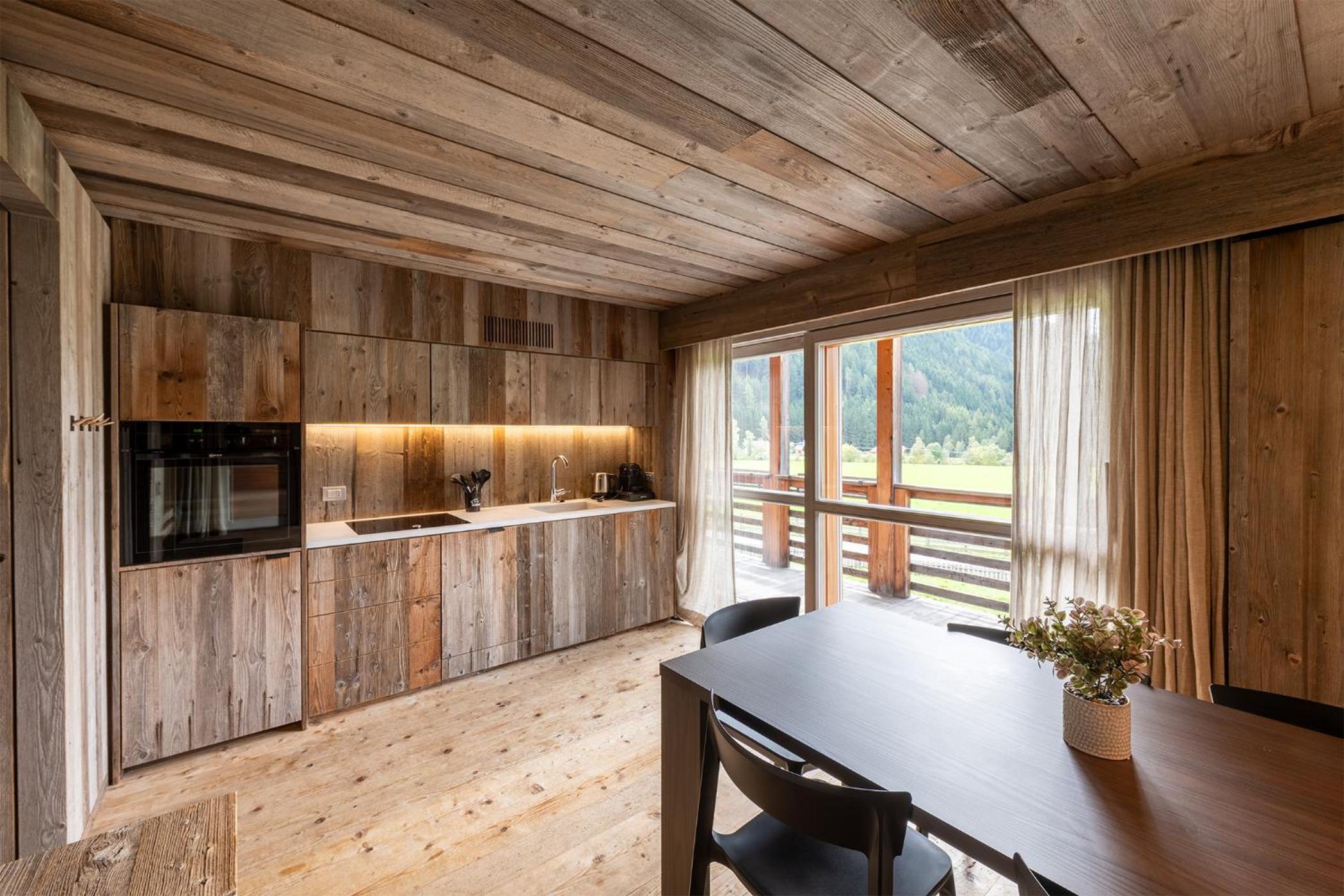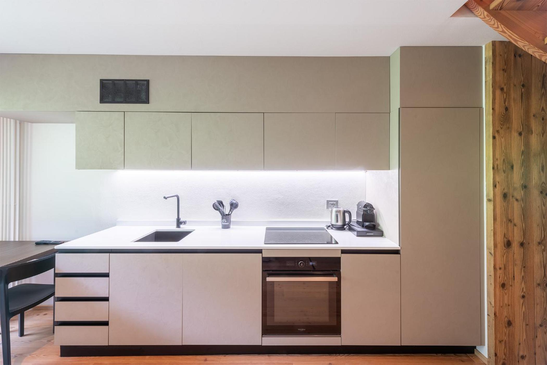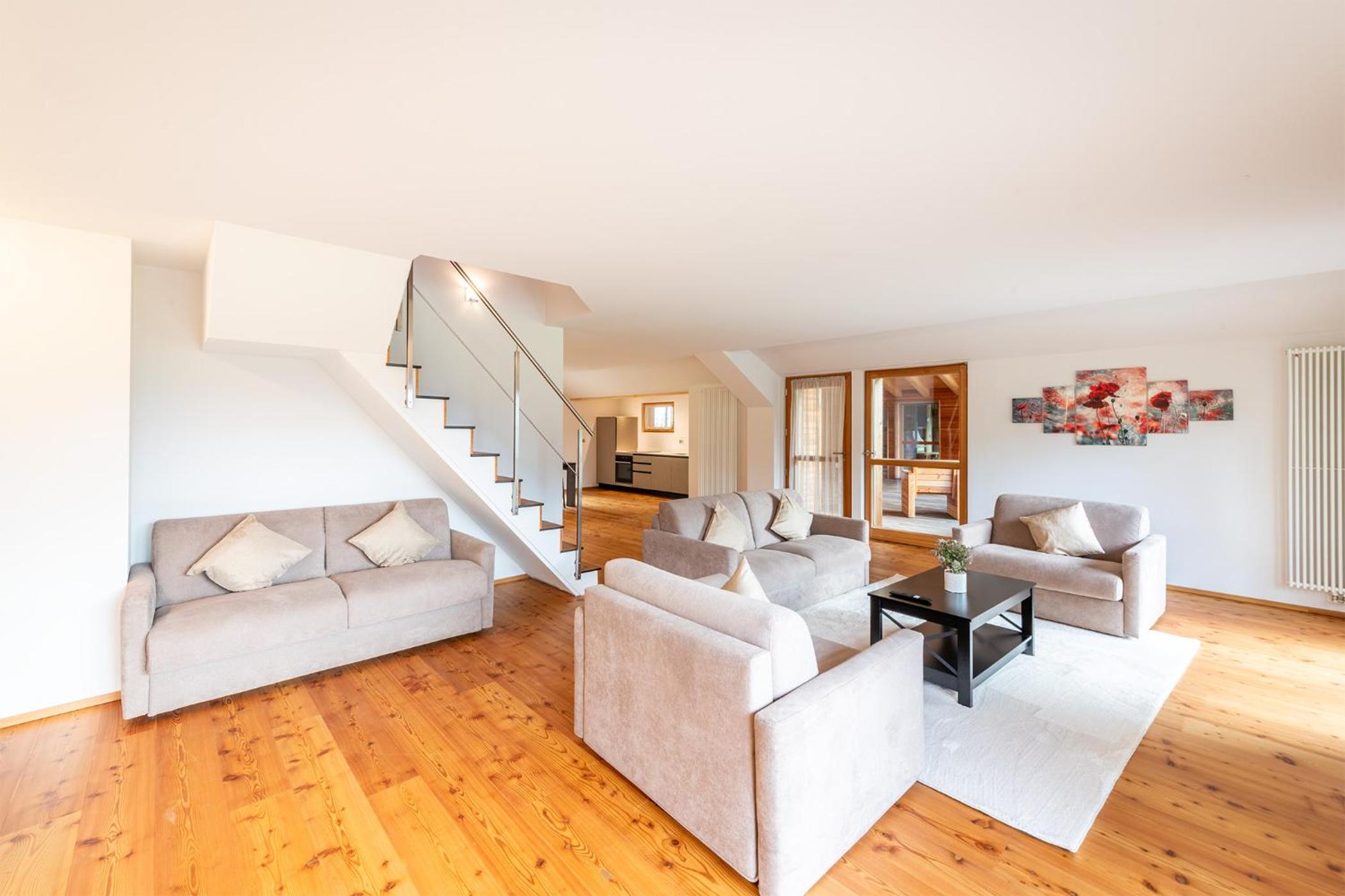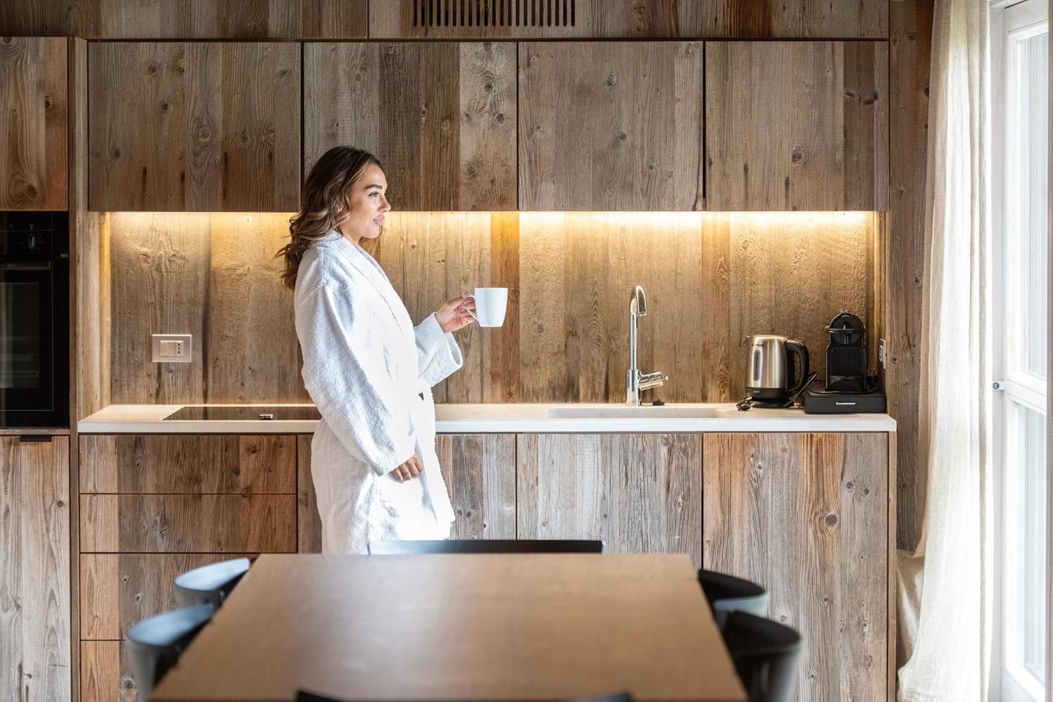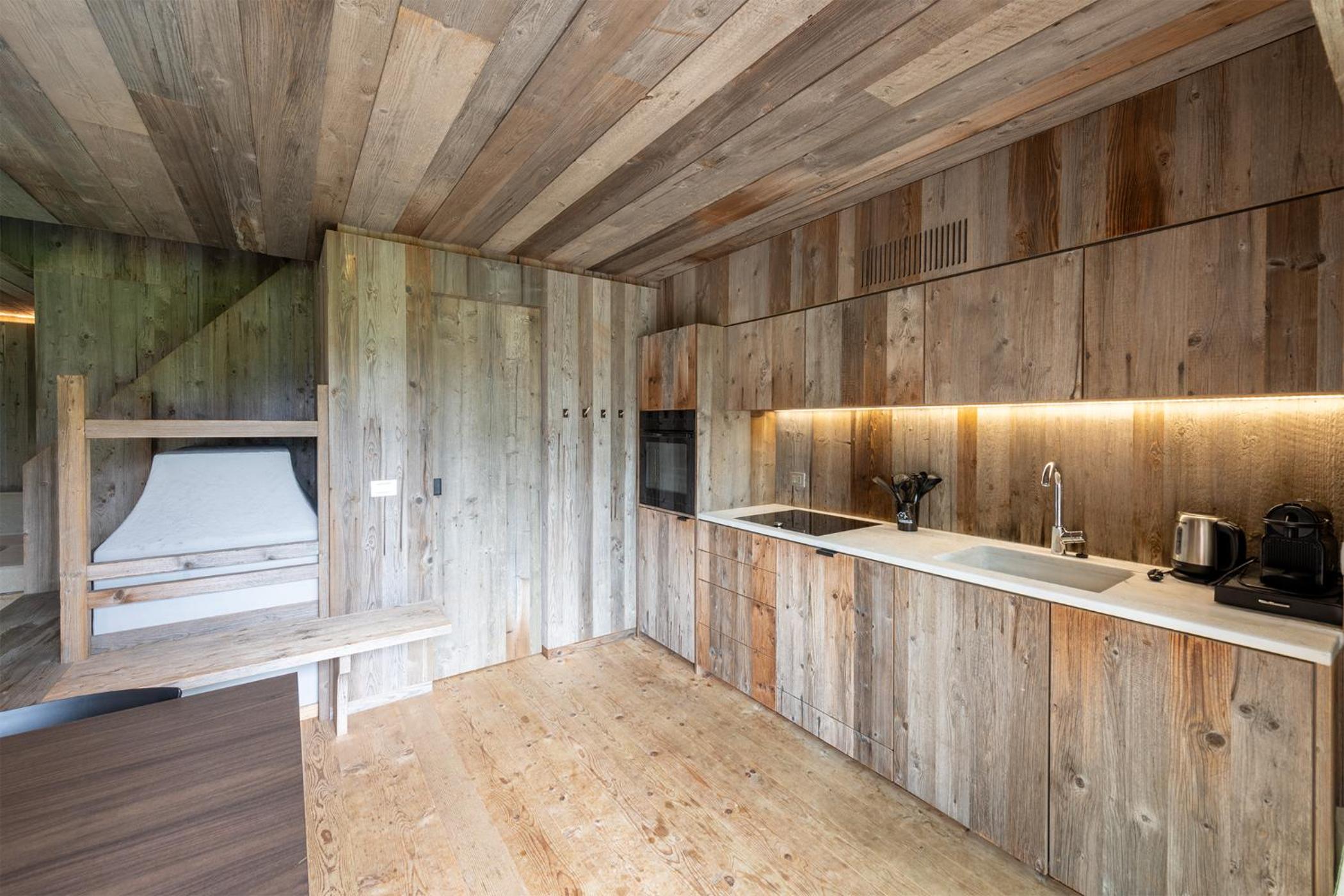 Molto bella la struttura in legno ma allo stesso tempo non ben levigato quindi schegge dovunque anche sul pavimento.. scala perché scivolati. Non c'è moka ma macchina caffè senza cialde e non ti dicono prima di provvedere. Molto piccola zona cucina divano letto visto che appartamento destinato a 5 persone e un bambino piccolo. Nessun seggiolino o letto per il bambino anche se comunicato e pagato per 5 persone e un bambino di 1 anno. Problemi con antincendio che partiva da altri appartamenti e bloccava tutti. Nessuna presenza di personale