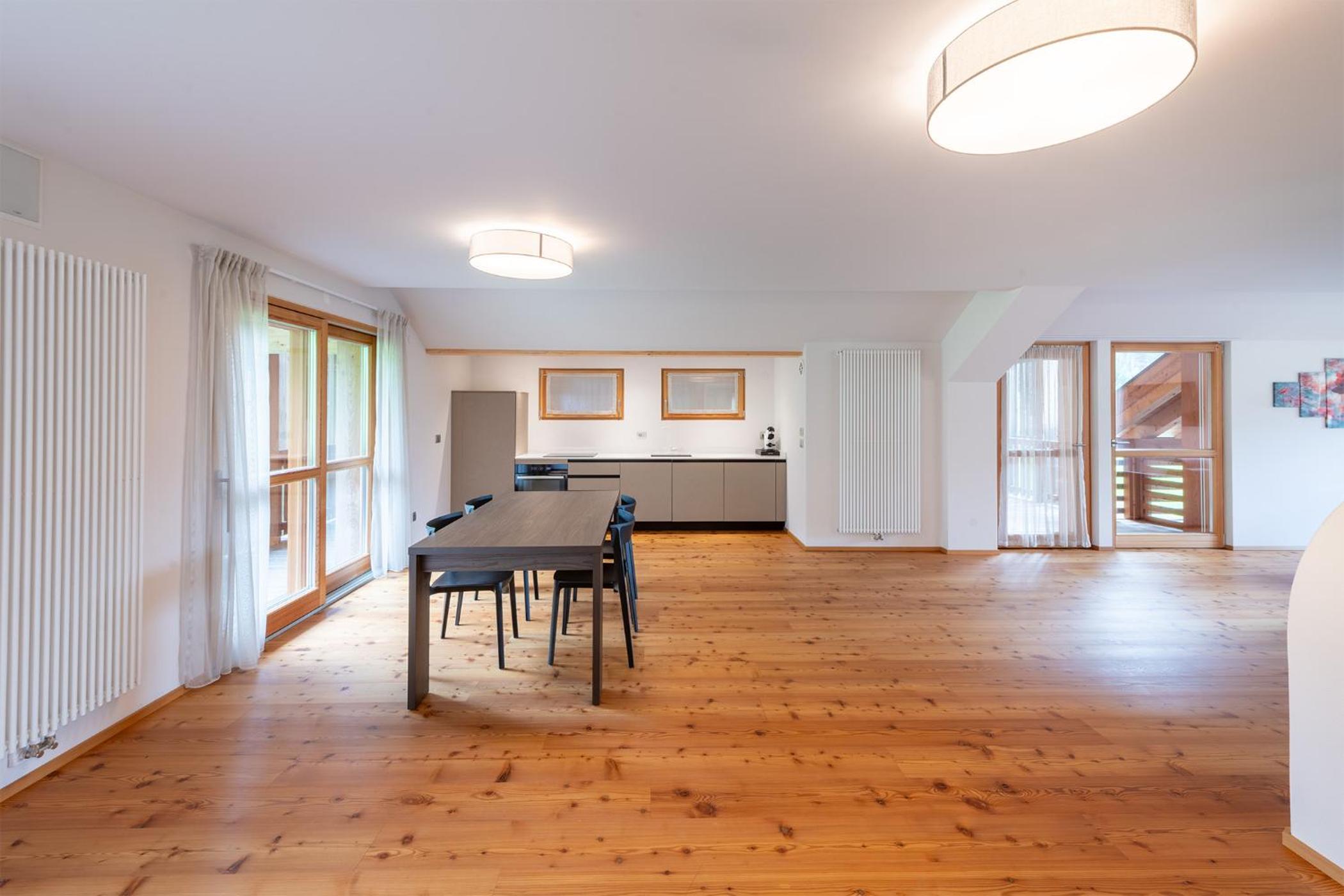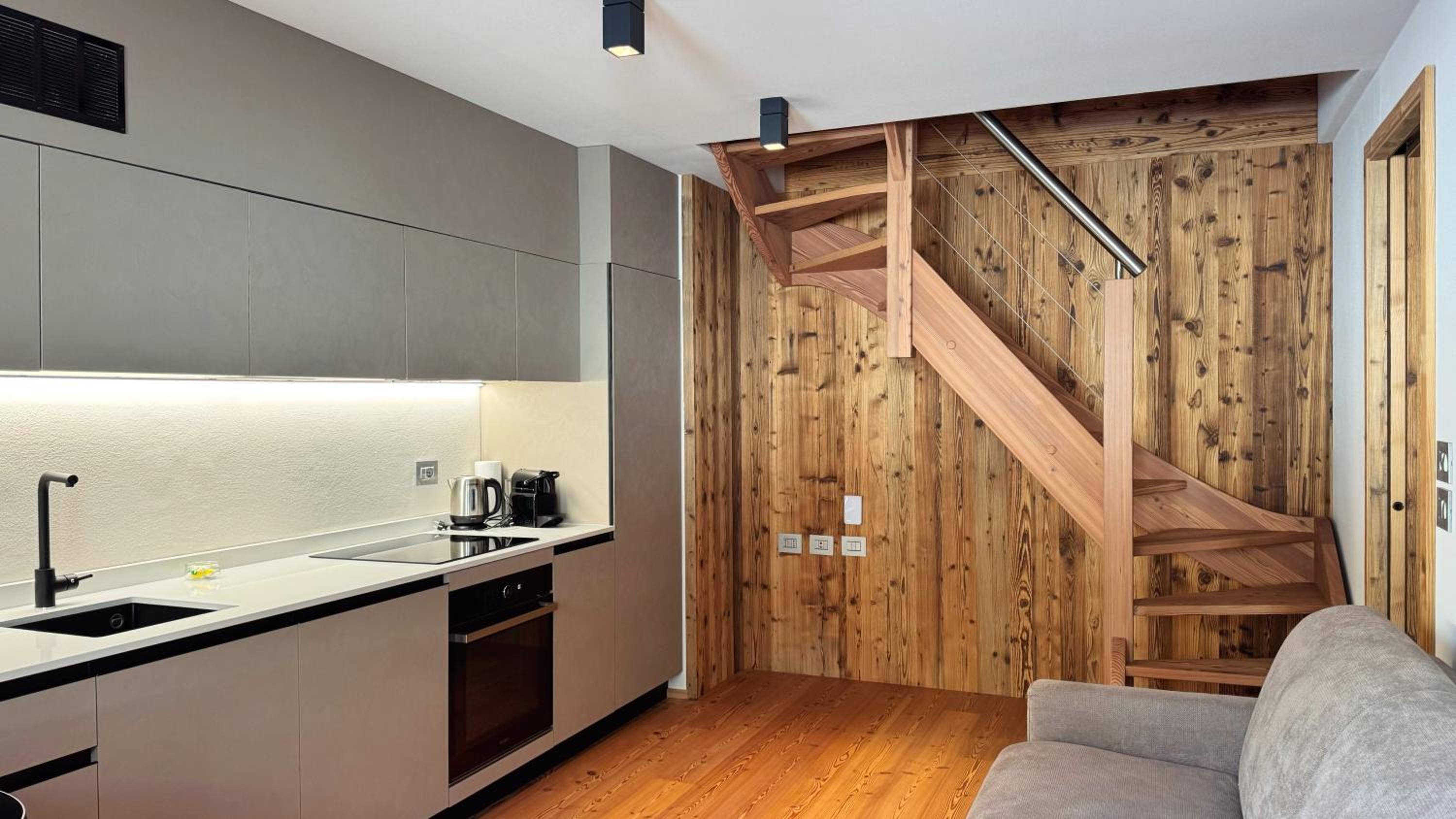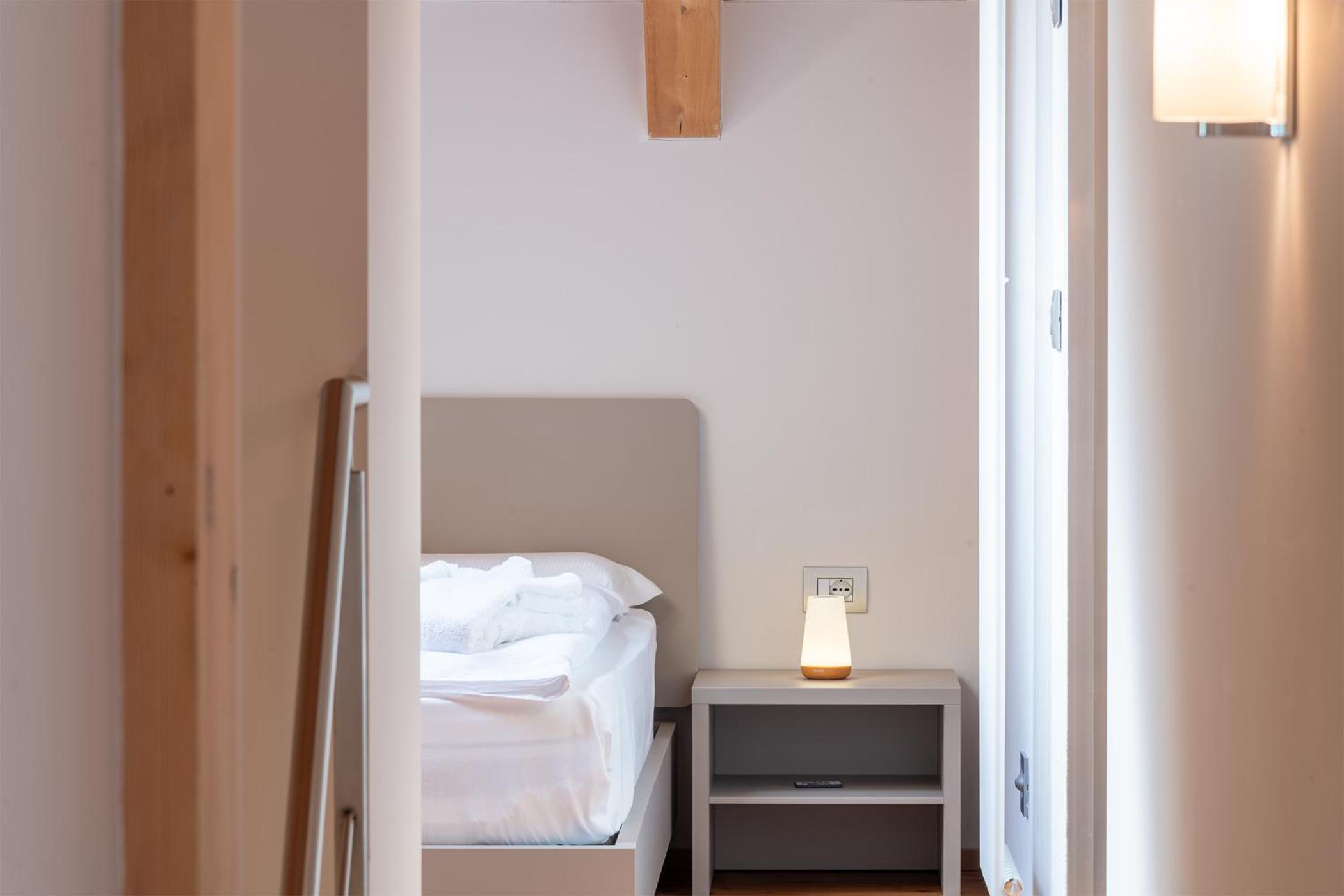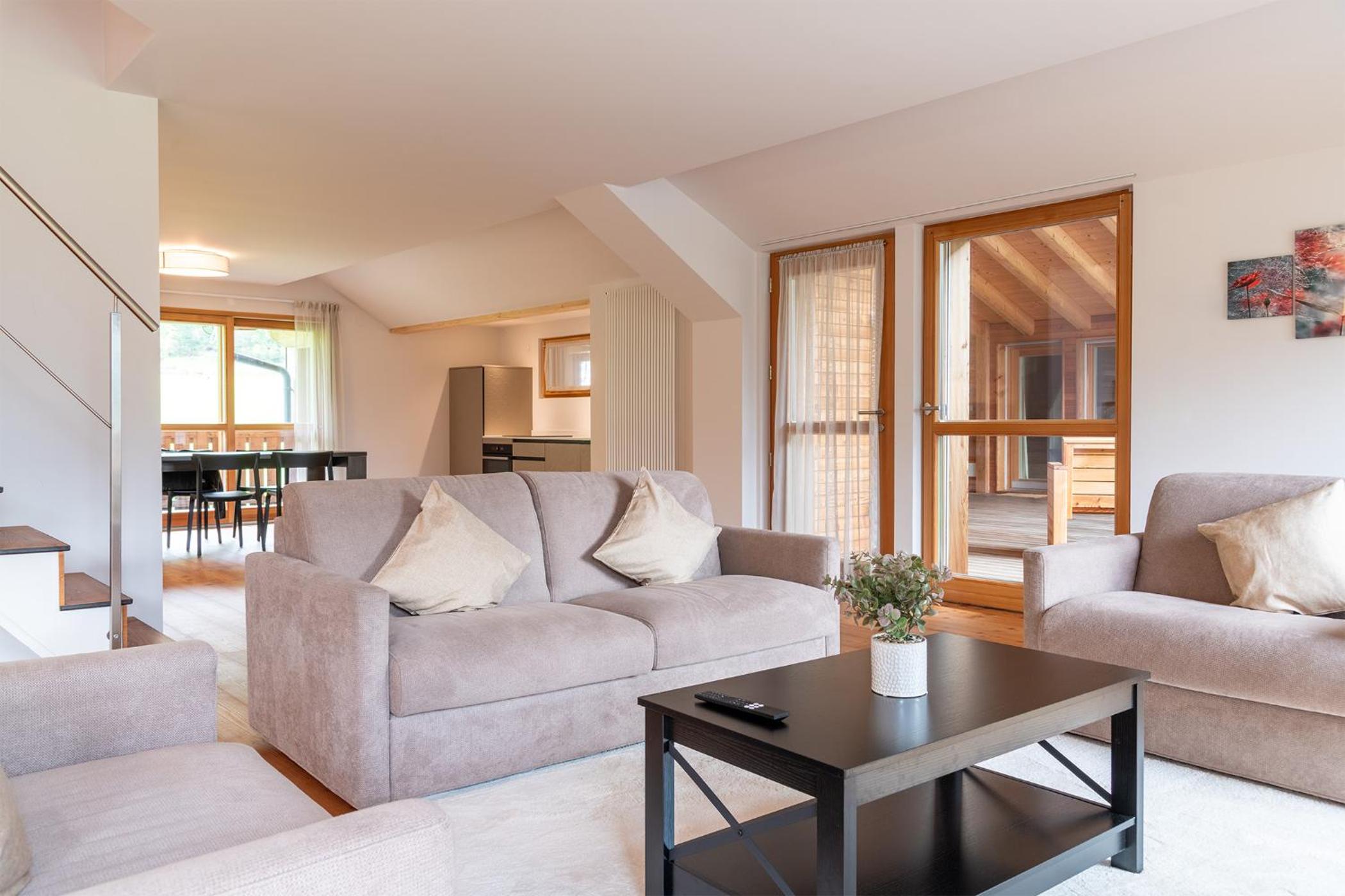 Molto bella la struttura in legno ma allo stesso tempo non ben levigato quindi schegge dovunque anche sul pavimento.. scala perché scivolati. Non c'è moka ma macchina caffè senza cialde e non ti dicono prima di provvedere. Molto piccola zona cucina divano letto visto che appartamento destinato a 5 persone e un bambino piccolo. Nessun seggiolino o letto per il bambino anche se comunicato e pagato per 5 persone e un bambino di 1 anno. Problemi con antincendio che partiva da altri appartamenti e bloccava tutti. Nessuna presenza di personale
