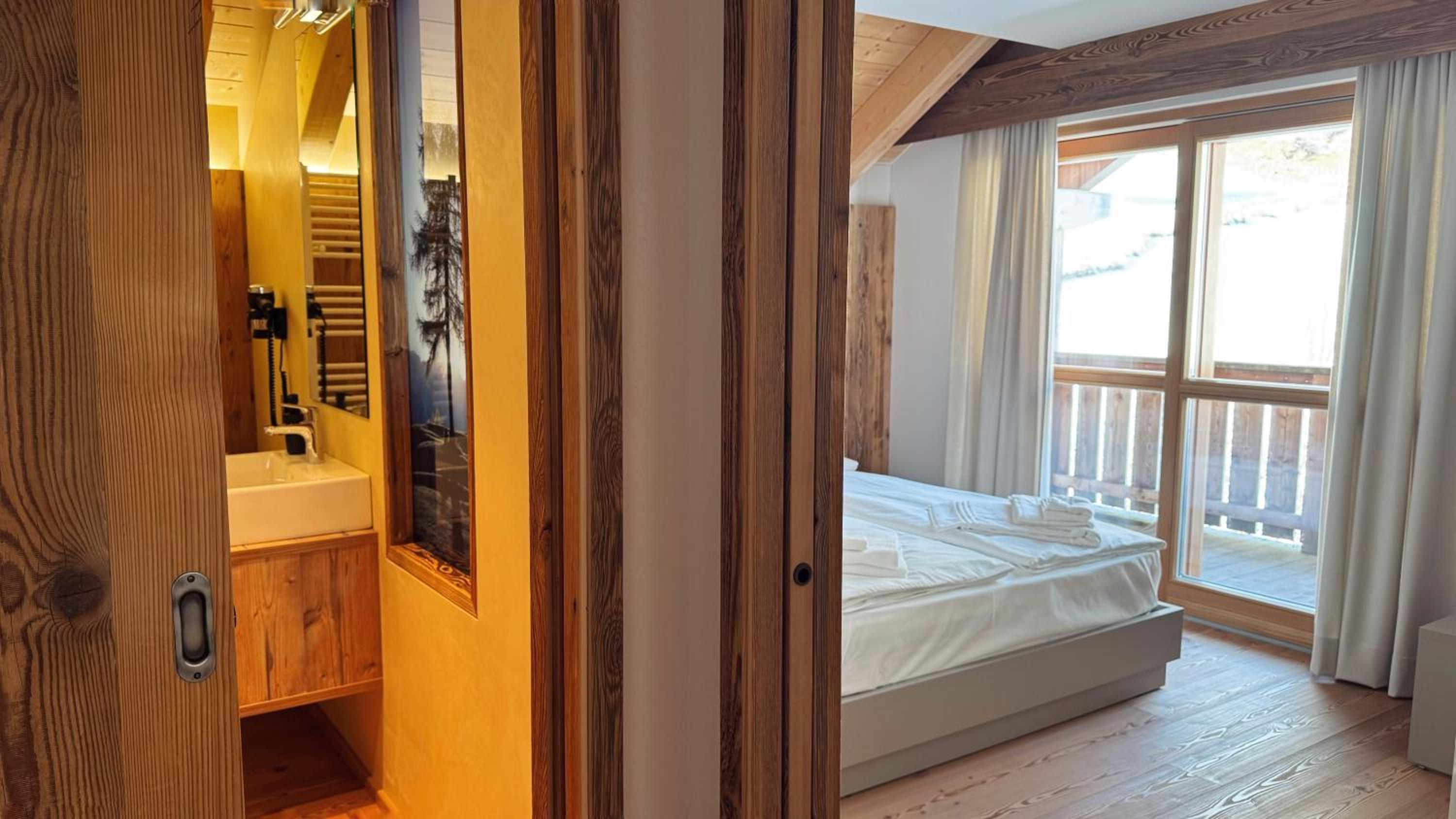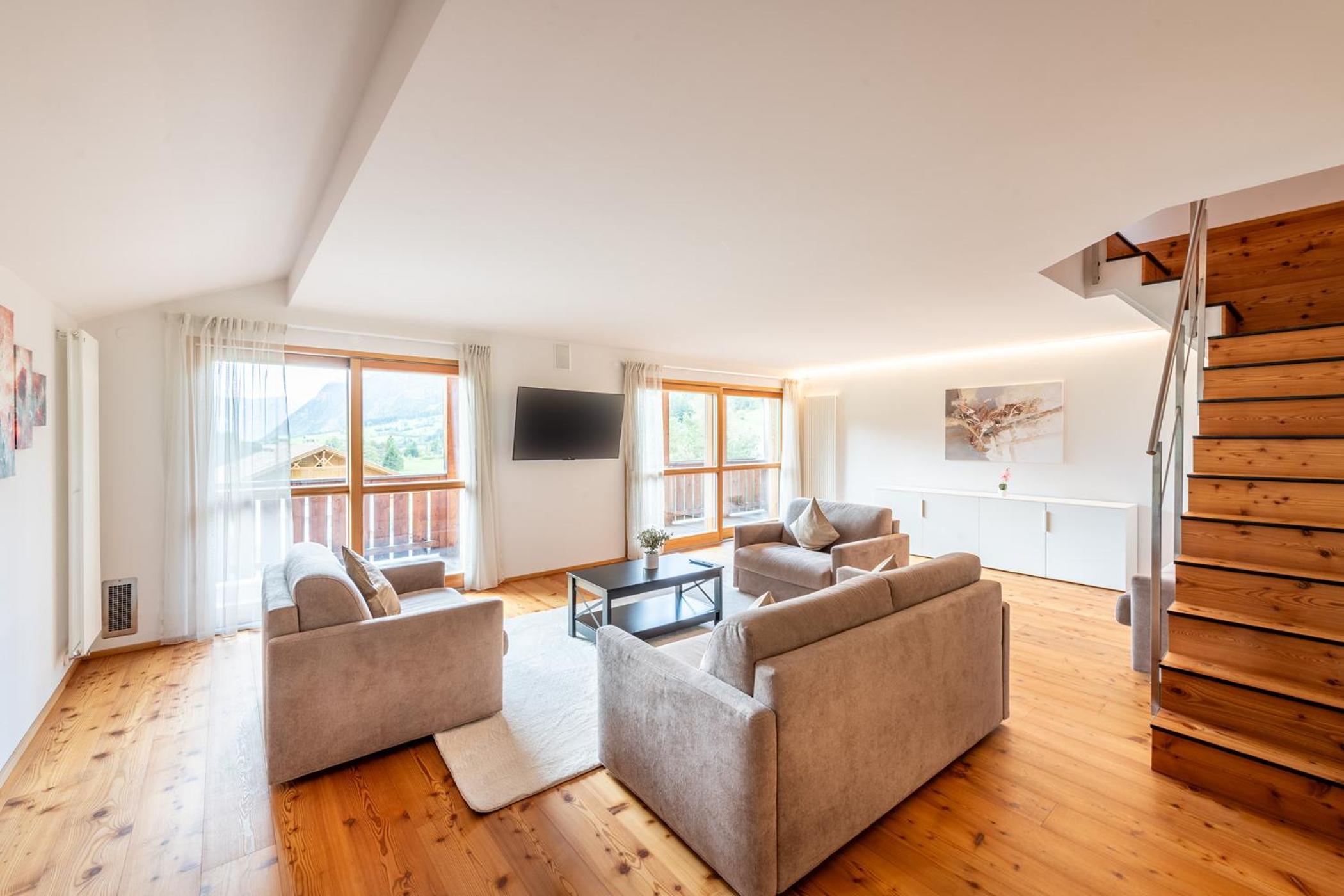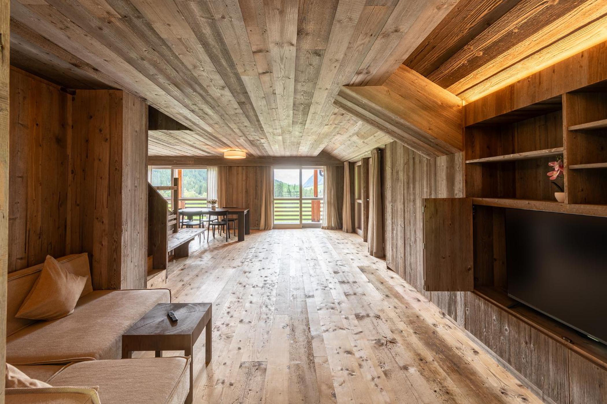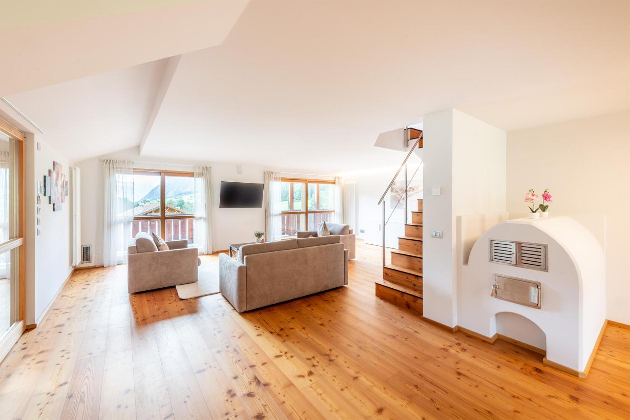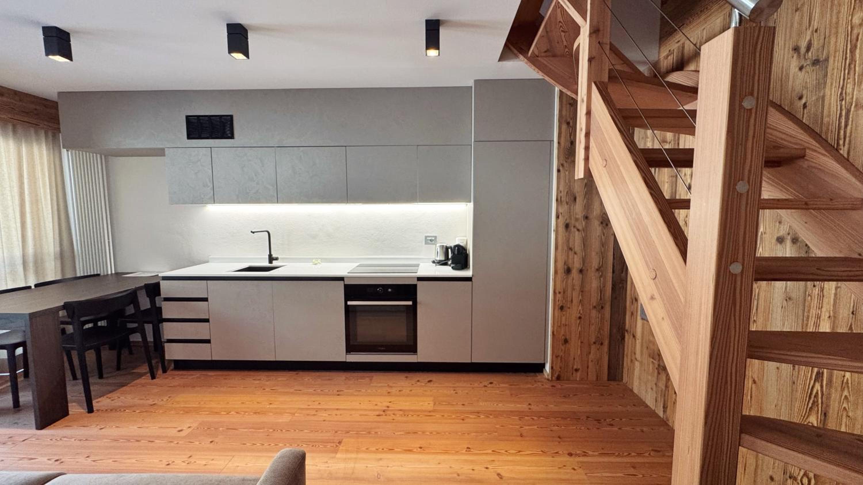 Molto bella la struttura in legno ma allo stesso tempo non ben levigato quindi schegge dovunque anche sul pavimento.. scala perché scivolati. Non c'è moka ma macchina caffè senza cialde e non ti dicono prima di provvedere. Molto piccola zona cucina divano letto visto che appartamento destinato a 5 persone e un bambino piccolo. Nessun seggiolino o letto per il bambino anche se comunicato e pagato per 5 persone e un bambino di 1 anno. Problemi con antincendio che partiva da altri appartamenti e bloccava tutti. Nessuna presenza di personale