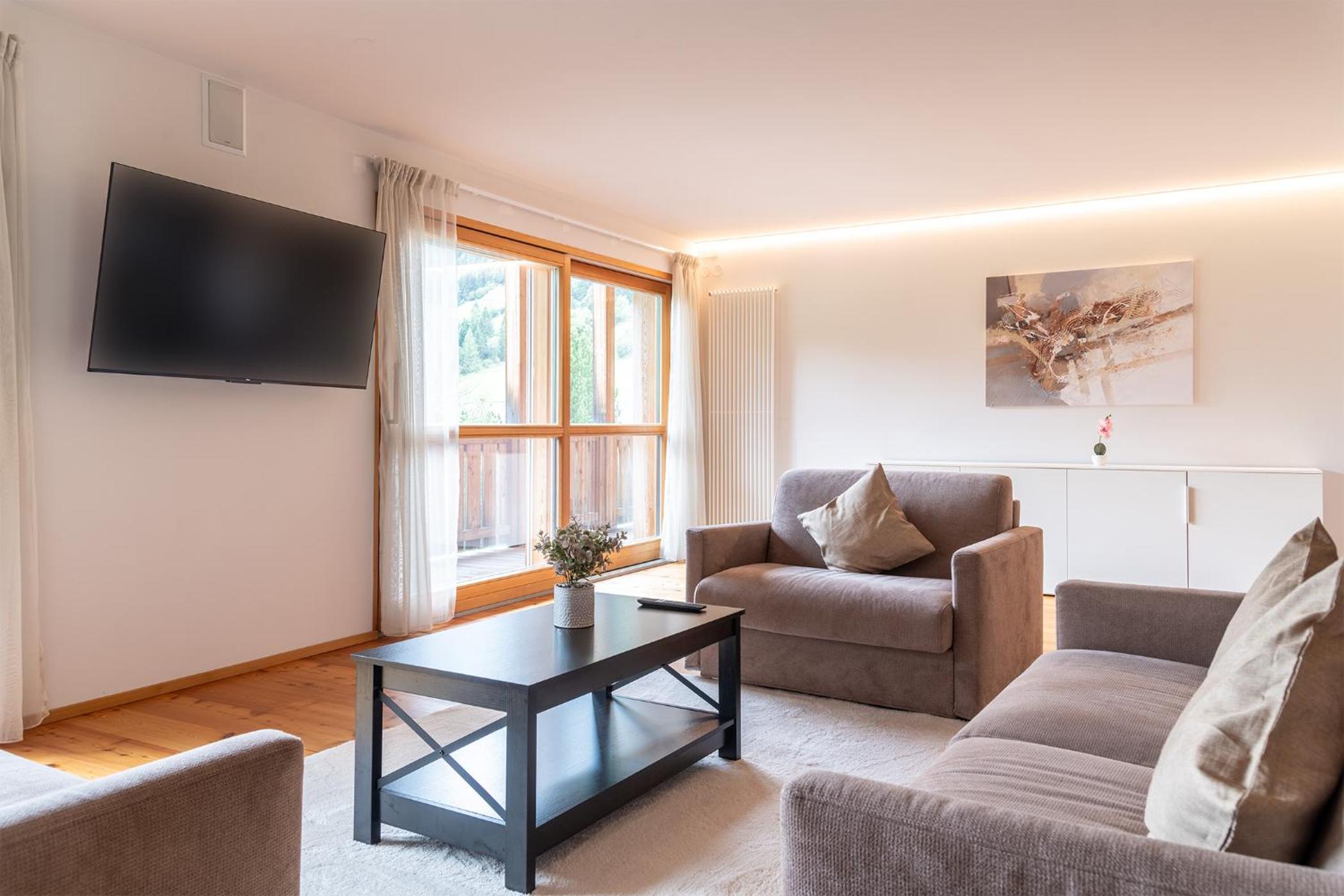 One of the best places I have ever stayed. The apartment was very comfortable and well-equipped, and toasty warm (we were there in depths of snowy winter). The location was wonderful. We had spectacular views up and down the valley. It was a short walk into the village (which has a supermarket and restaurant etc), and close but not too close to the main road, so we could get the bus down the valley. The staff were very helpful - there were too few knives in the kitchen drawer when we arrived, and the staff responded within 20mins and provided all that was necessary.