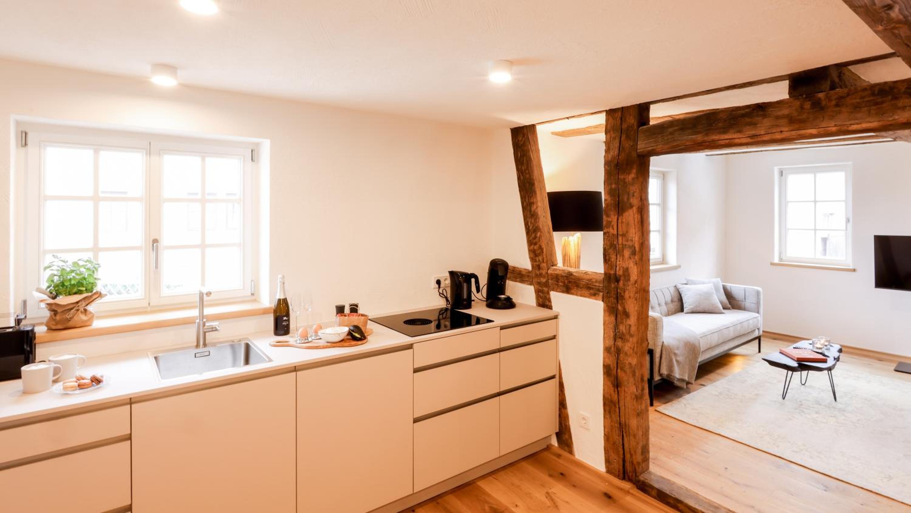 Mitten im wunderschönen restaurierten Altstadtzentrum gelegen. Hochwertig neu renoviertes altes Fachwerk-Gebäude mit modern gemachten, geschmackvoll gestalteten Zimmern.