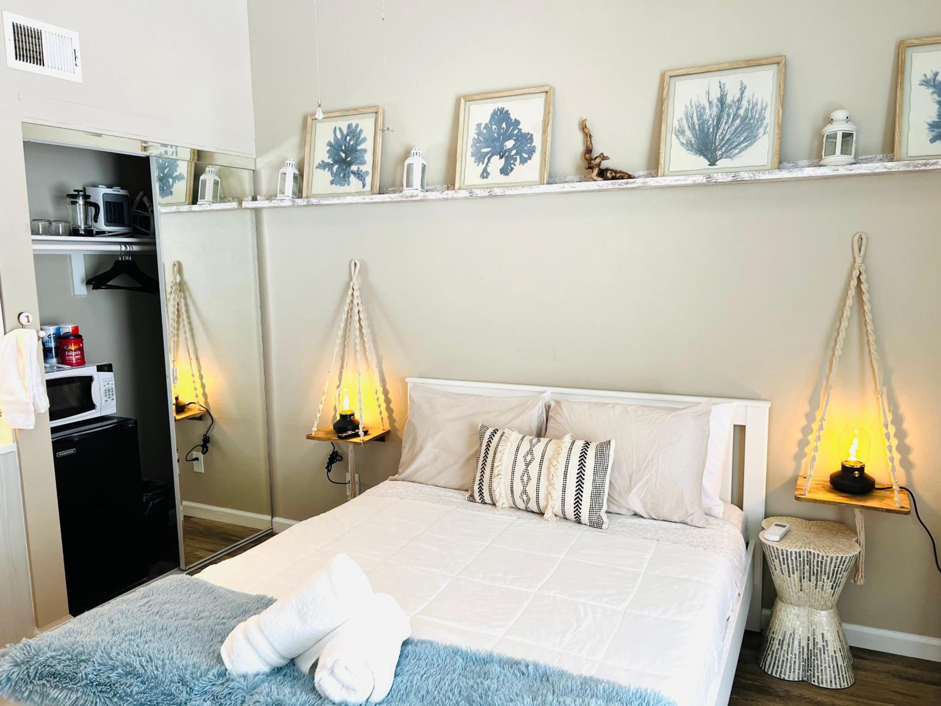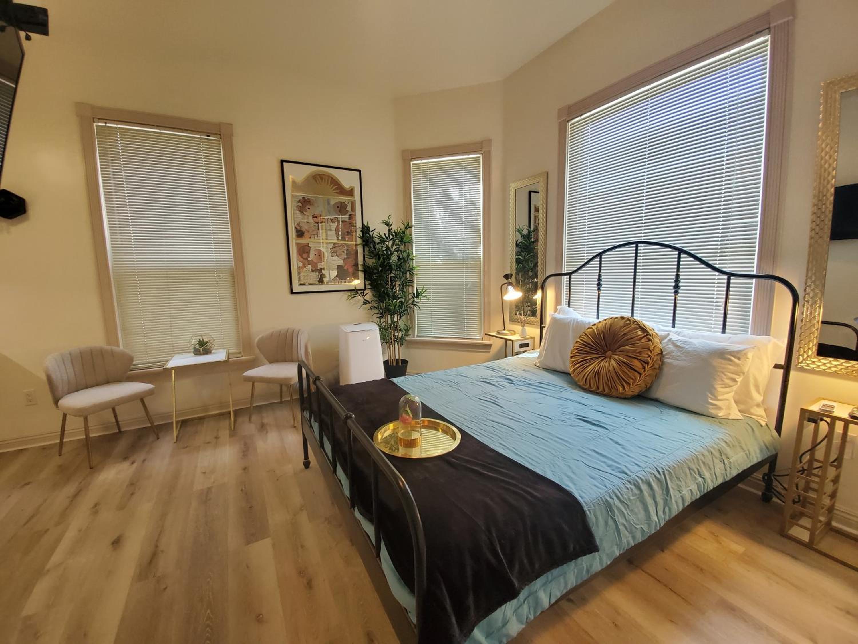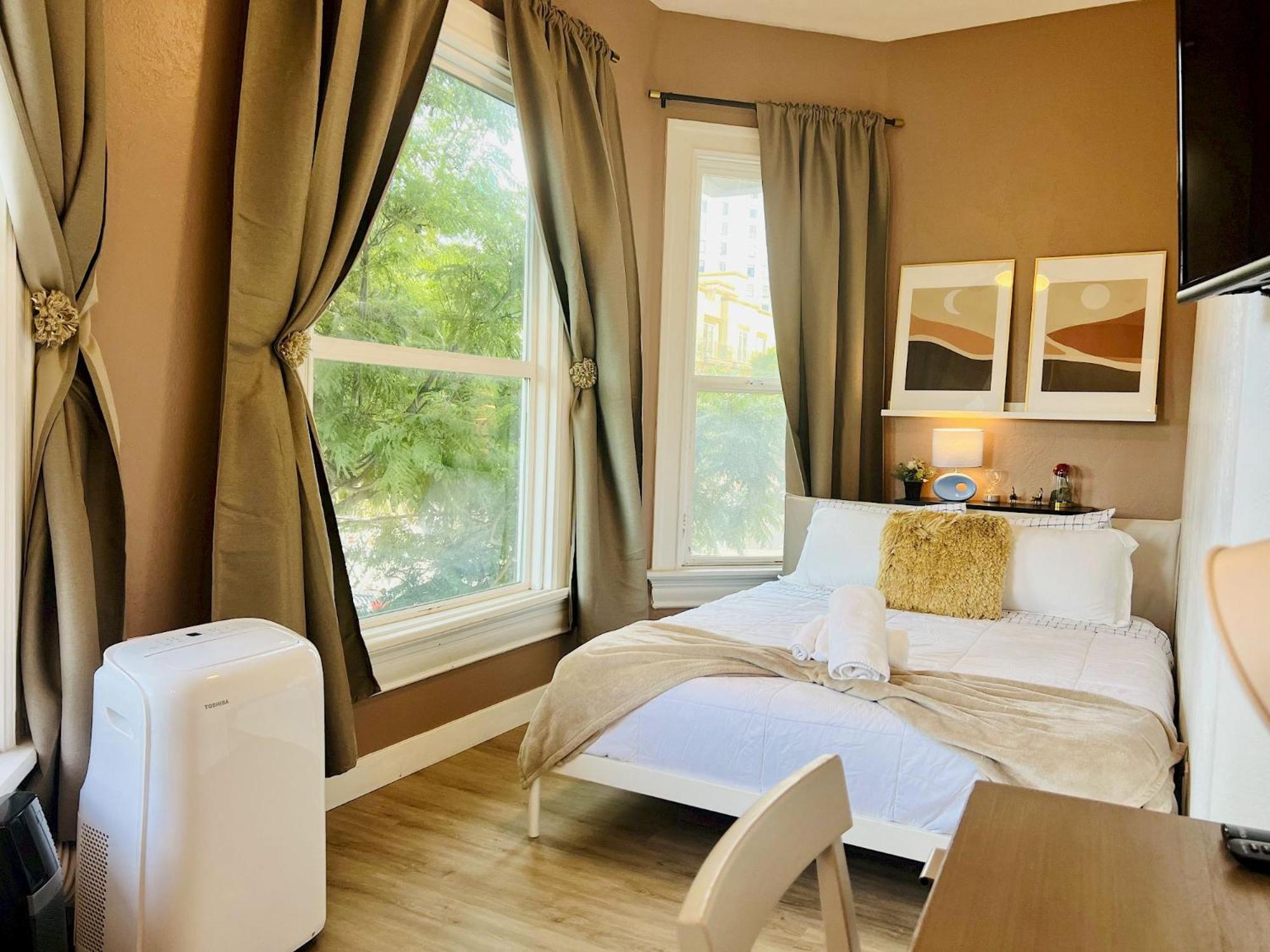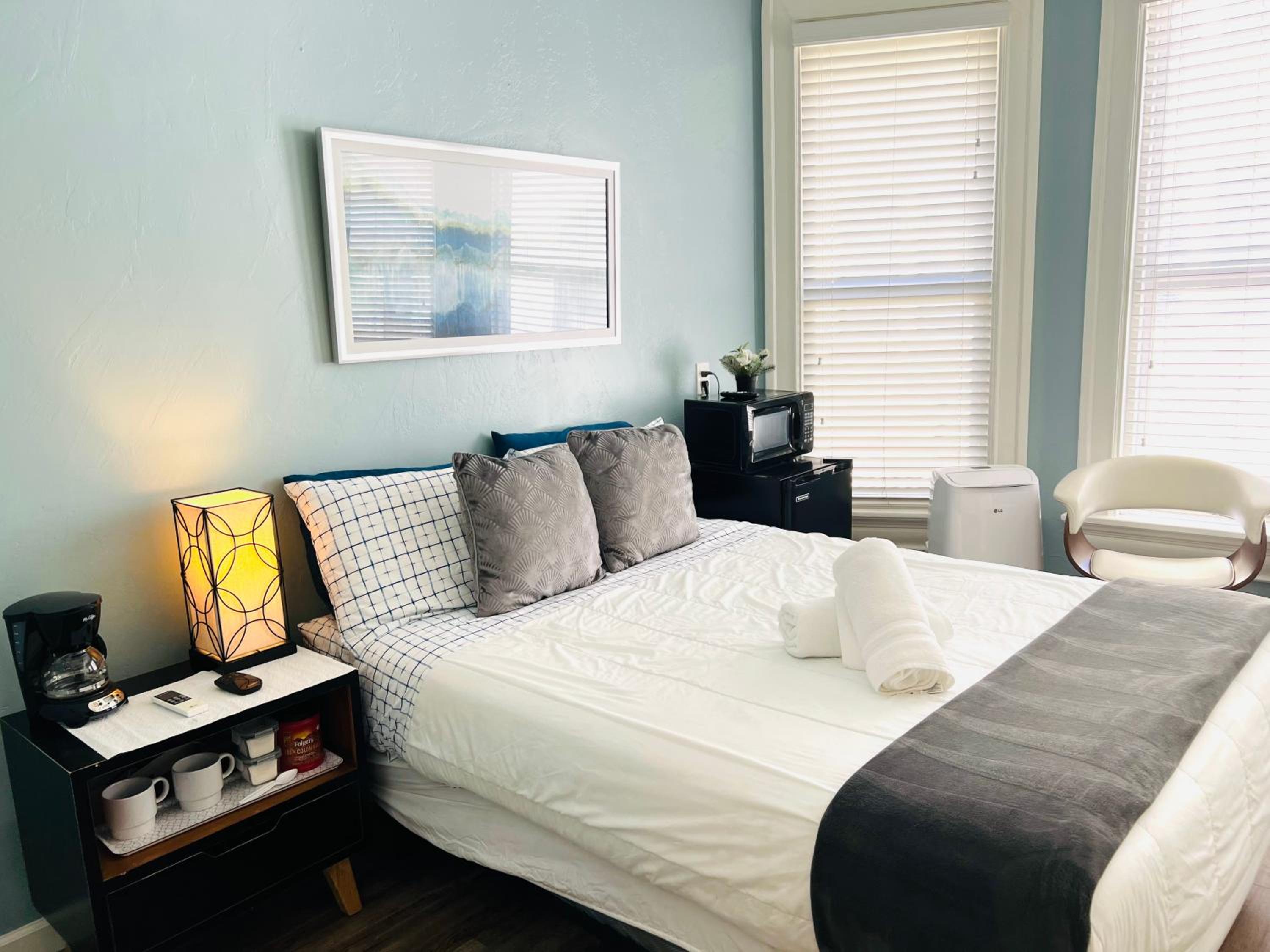 I liked the location. It was a few blocks away from the busy downtown. That was a plus for me. It was also a secure place.The room was fresh, nice, cozy, and clean..The decor gave it a nice ambiance. The bed was comfy. The manager Bruce was very kind, courteous, and attentive.. Wish I could have stayed longer. I will recommend it to my friends.