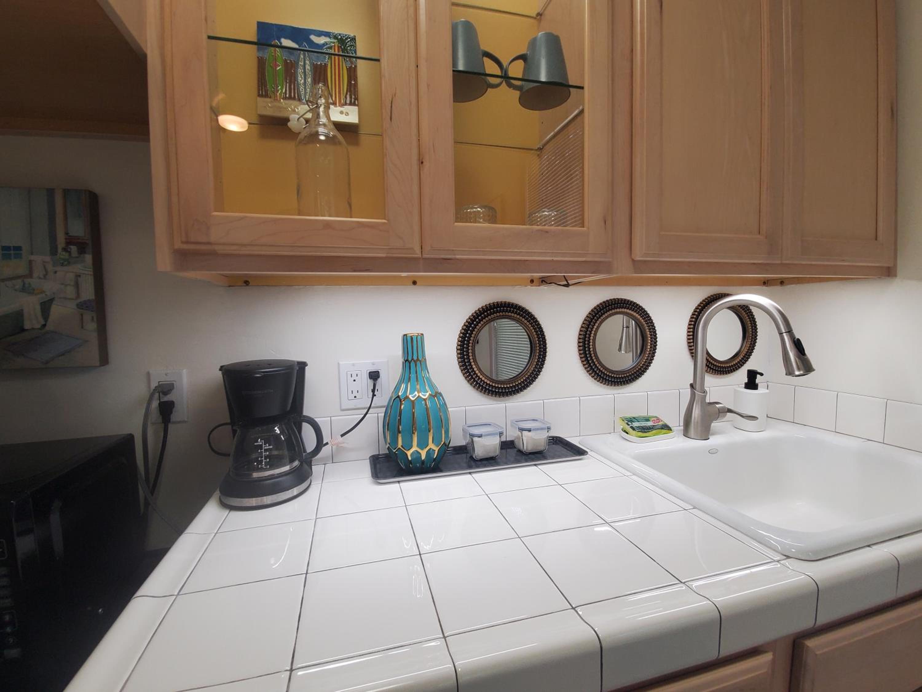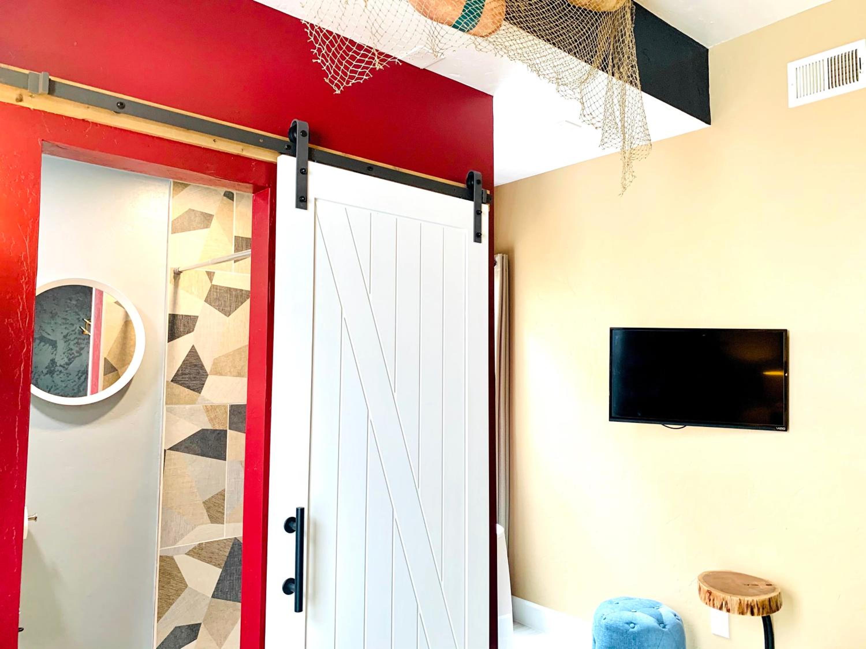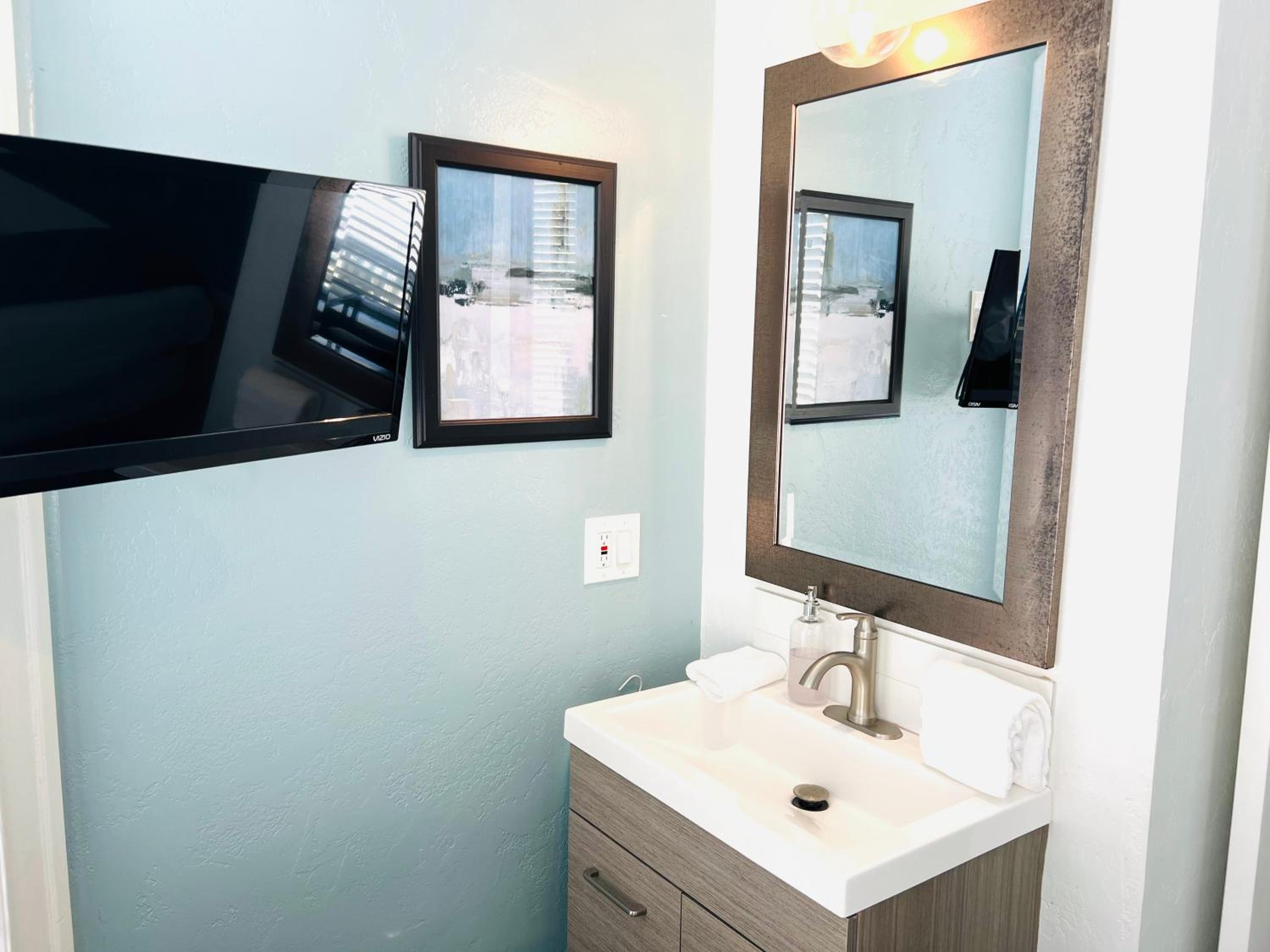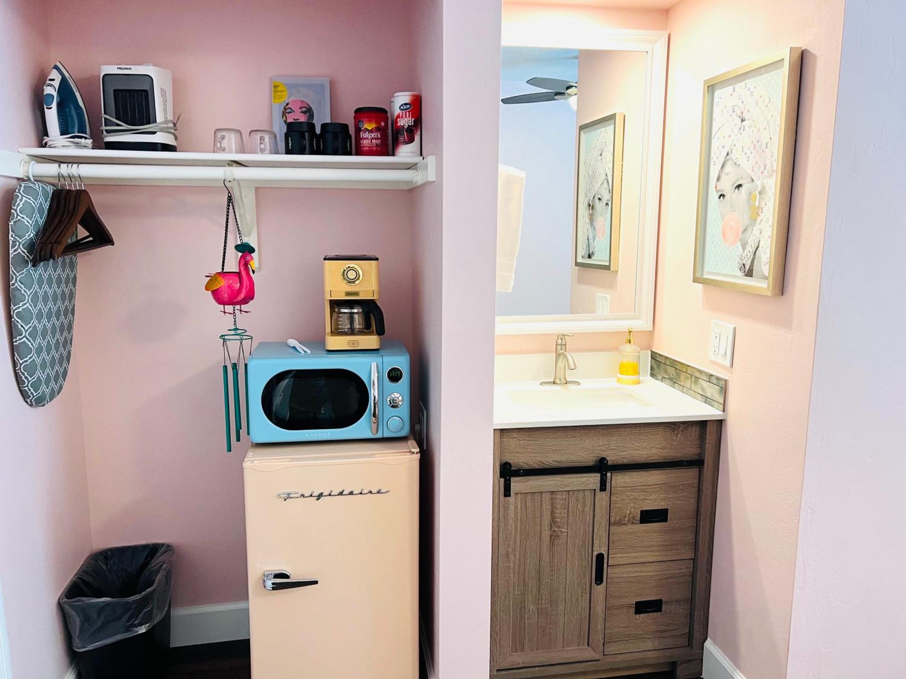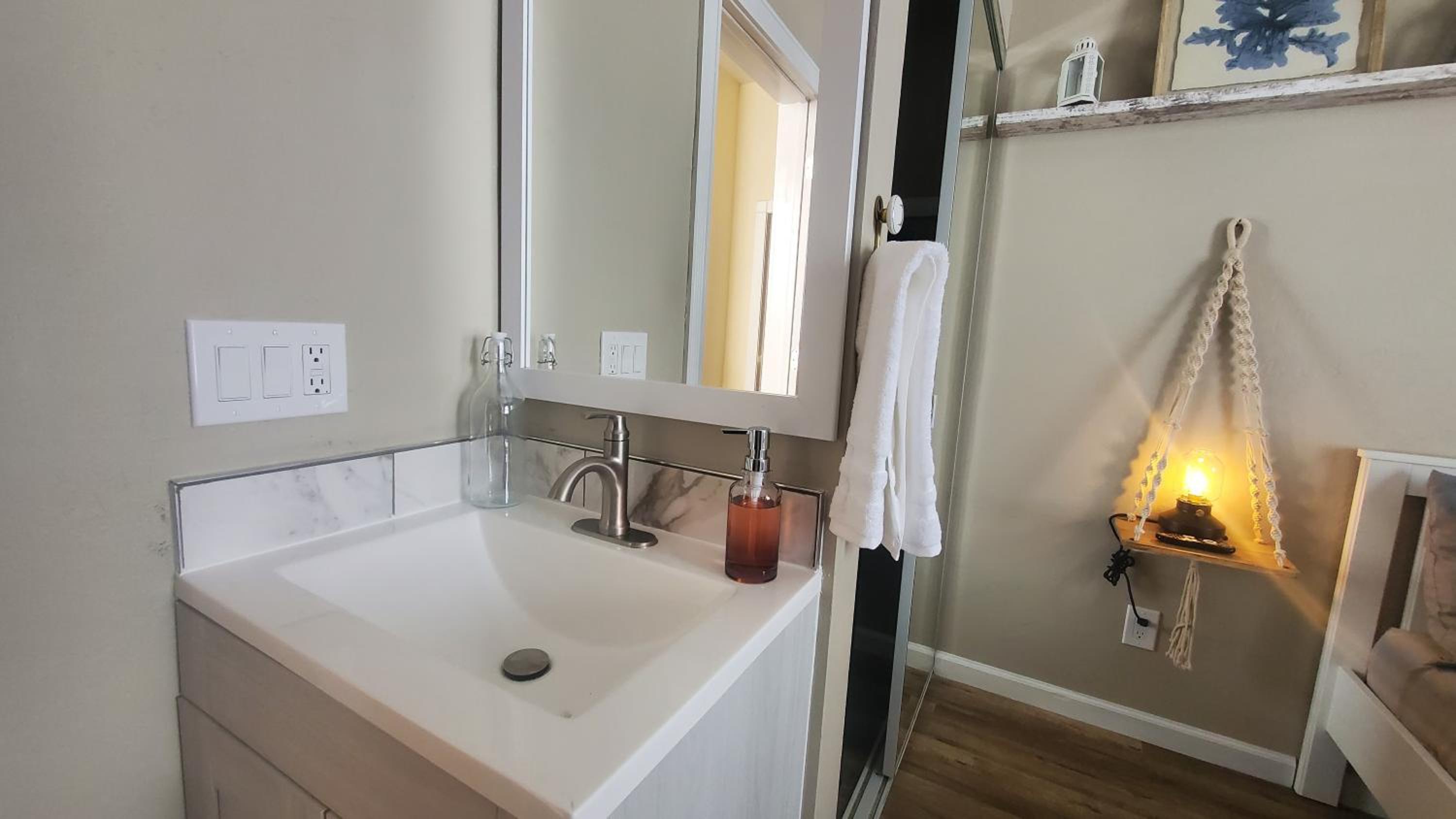 It would have been nice to have a towel bar in the bathroom. A little shelf in the shower. A clock . Maybe papertowels or napkins. Nothing to really complain about. Just suggestions.