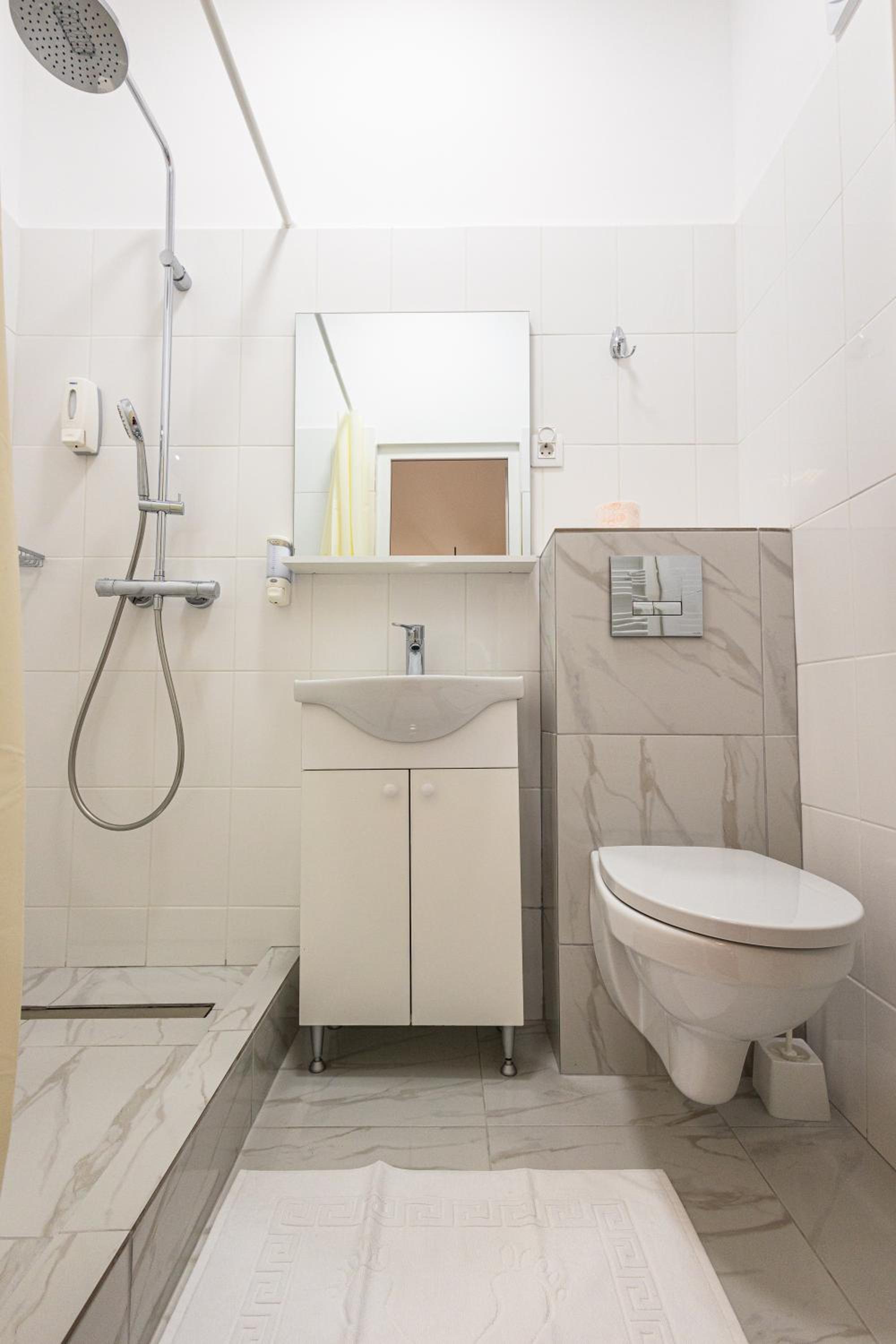 Locatia cel putin ciudata si greu de gasit, nu exista nici-o indicatie pentru a putea gasii locatia, m-am invartit cateva minute si a trebuit sa sun le cea care se ocupa de rezervare ca sa imi spuna exact locatia care era practic deasupra unei piete agroalimentara. Fereastra inspre piata, zgomot foarte mare datorita agregatelor frigorifice care erau chiar la fereastra, apa de la baie curge foarte incet apreape spre deloc