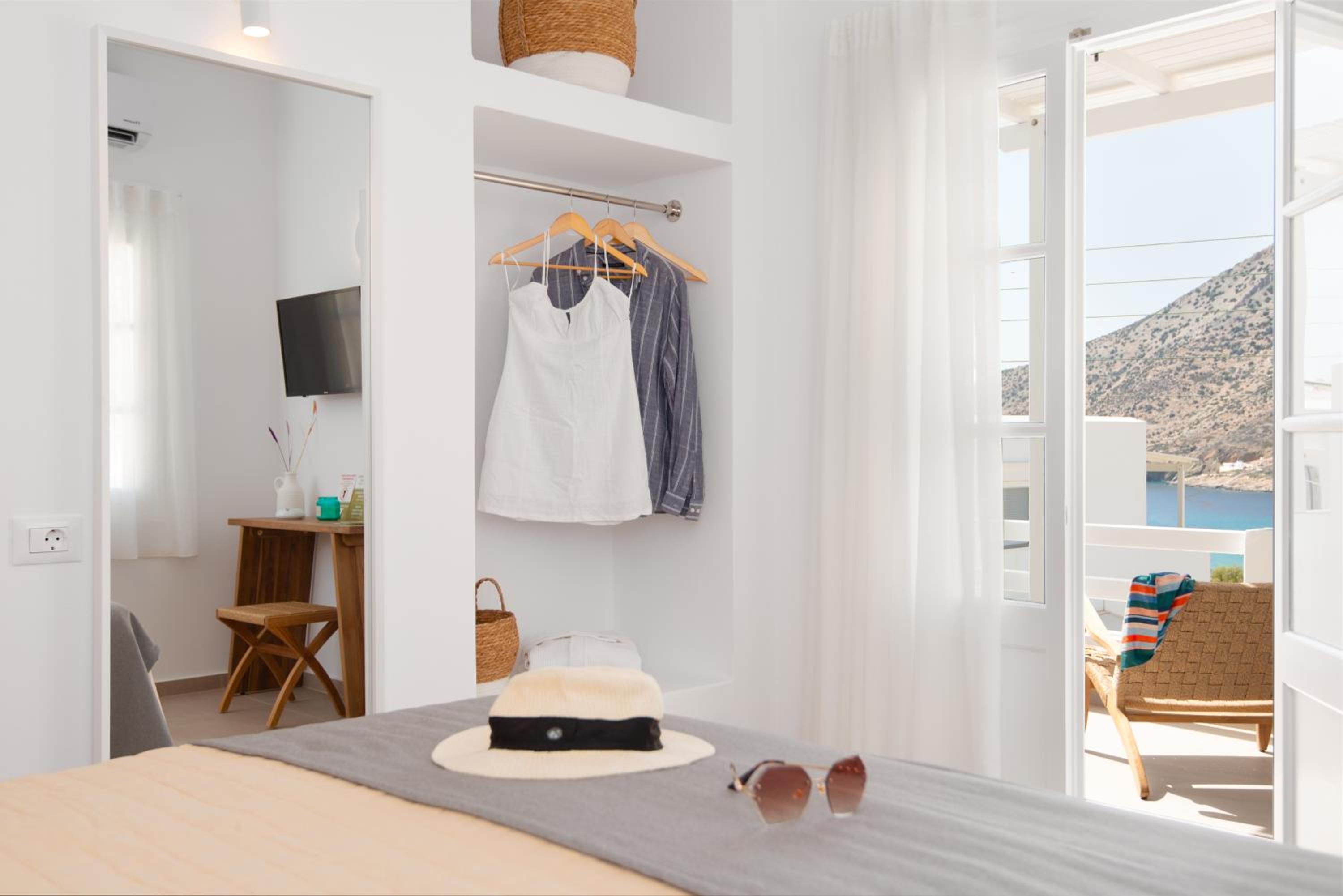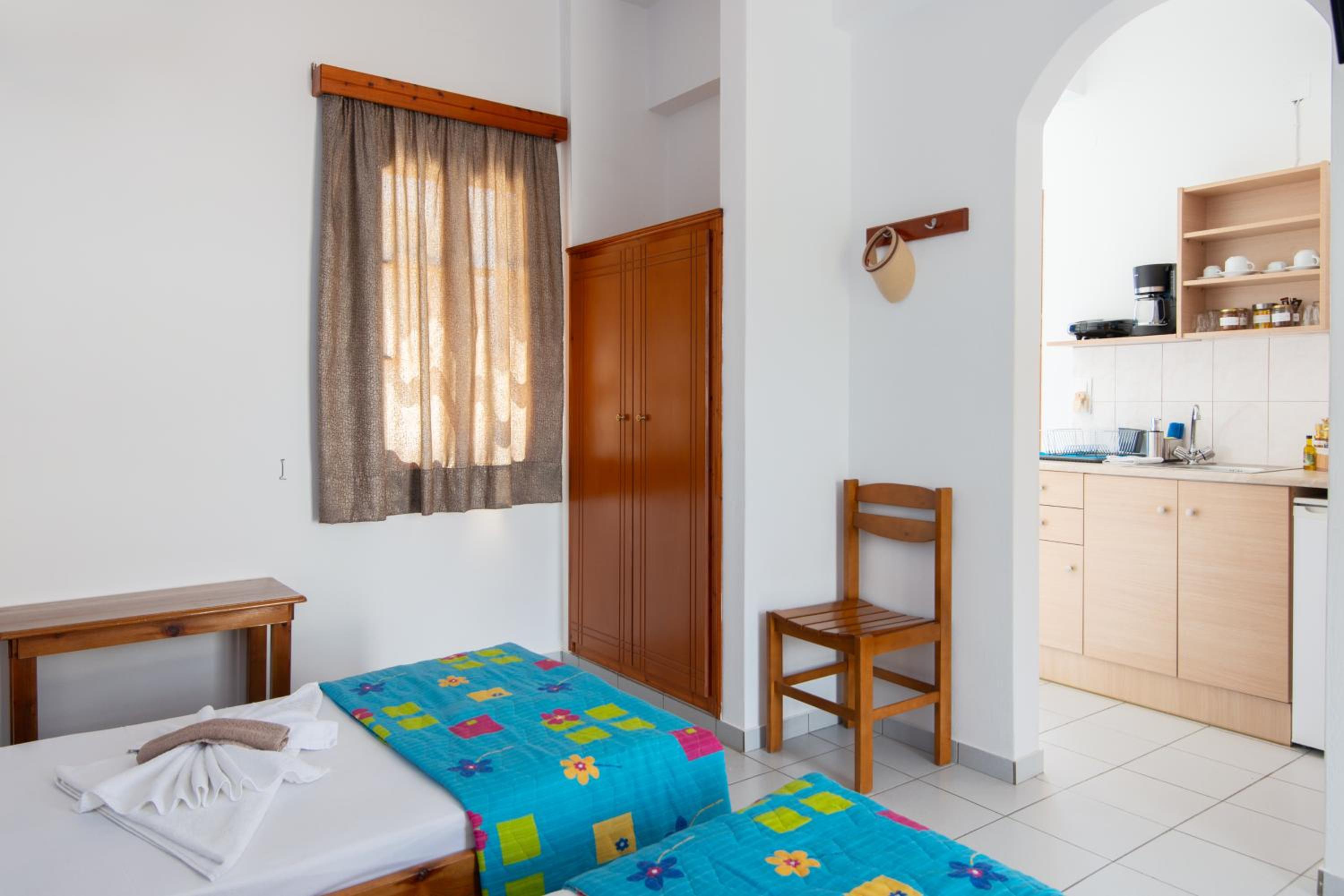 The experience was perfect. A super nice welcome with lively local gifts from the owner. The room was clean, well equipped with a large terrace with a side of view to the sea and beach of Kamarai.