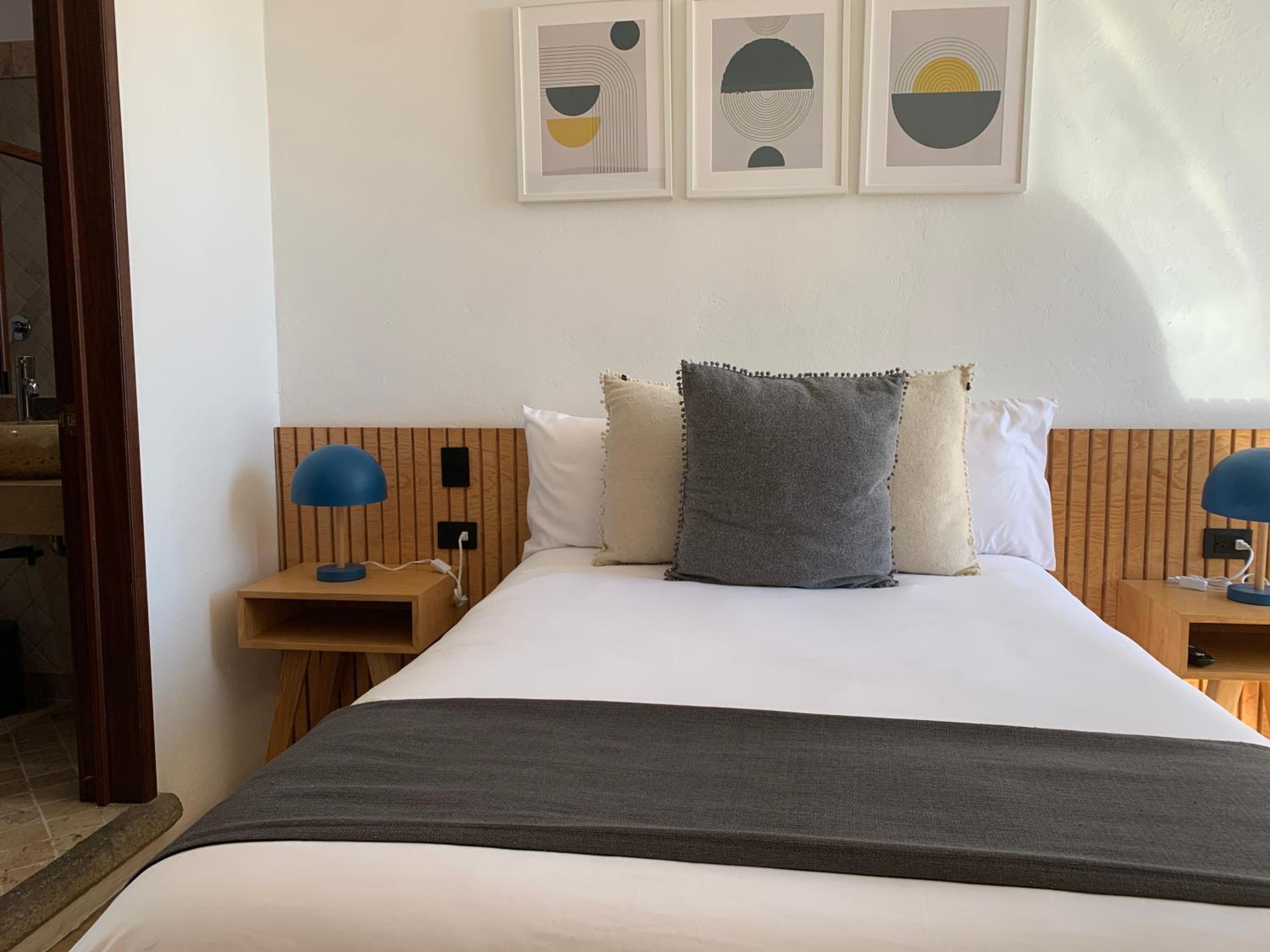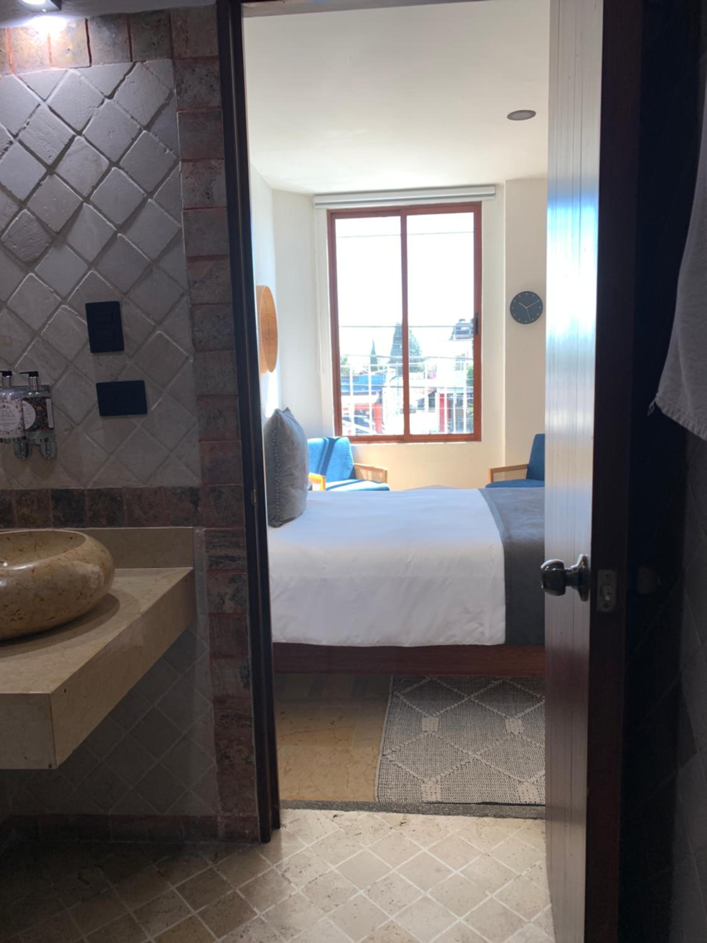 Indulge in comfort with modern amenities and stunning city views from select rooms with private bathrooms at CHOLULA SUITES.