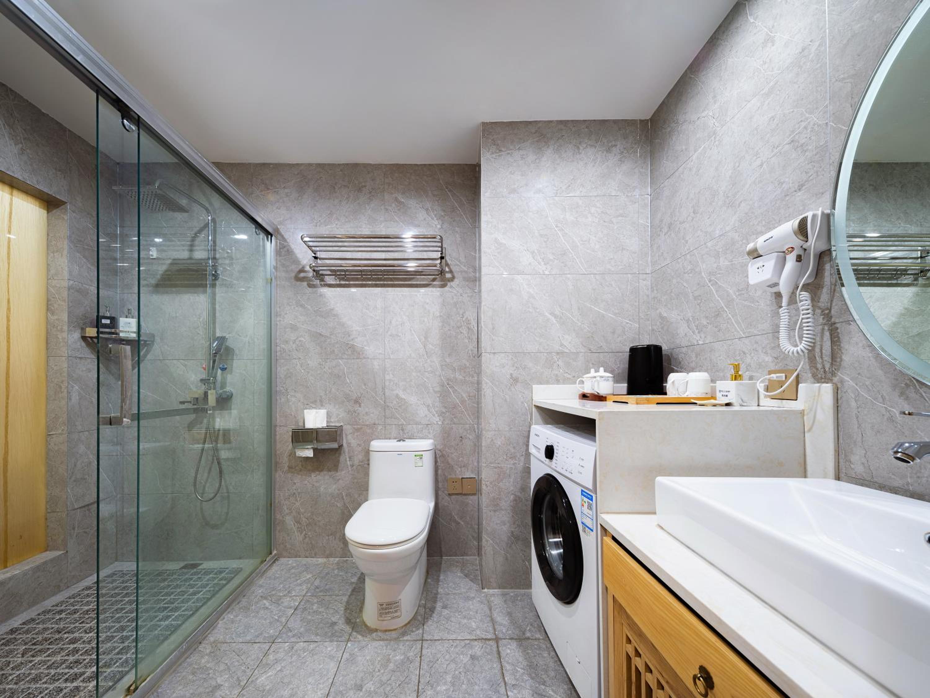 The hotel is within walking distance of the lift station. There is a small shop next to the hotel lobby which is accessible from the hotel. The room was big and comfort and bathroom were equipped with everything you need. There was a washing machine in the room, as well as liquid laundry detergent, but we didn't use it. Since we arrived late we did not have a chance to walk around the hotel. They provided us with free transportation to the airport on the day of departure. If I go to Zhangjiajie again, I might stay at this hotel again.