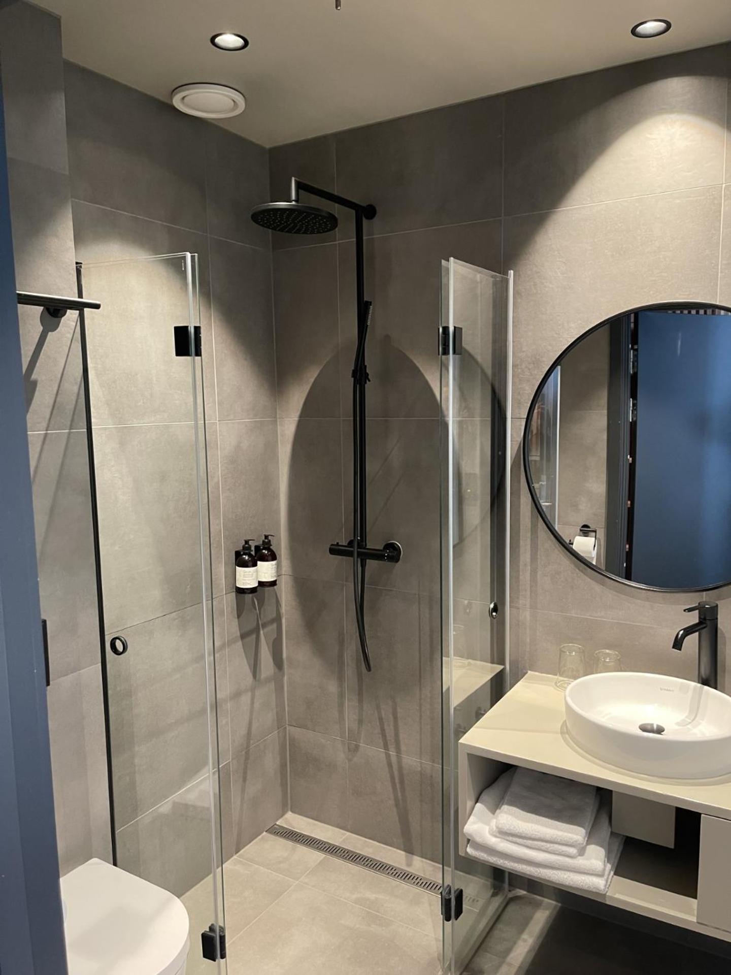 Im sonst sehr schönen und modernen Badezimmer mit großzügiger Regendusche hätten wir uns über ein Bodentuch, mehr Ablagemöglichkeiten und Haken für die vorhandenen Bademäntel gefreut.