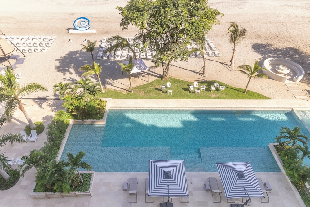 Great location right on clean long white sandy beach. Hotel still work in progress as only opened about 5 months now. Still needs a gym and Spa. Very clean negative edge pool right next to the beach.