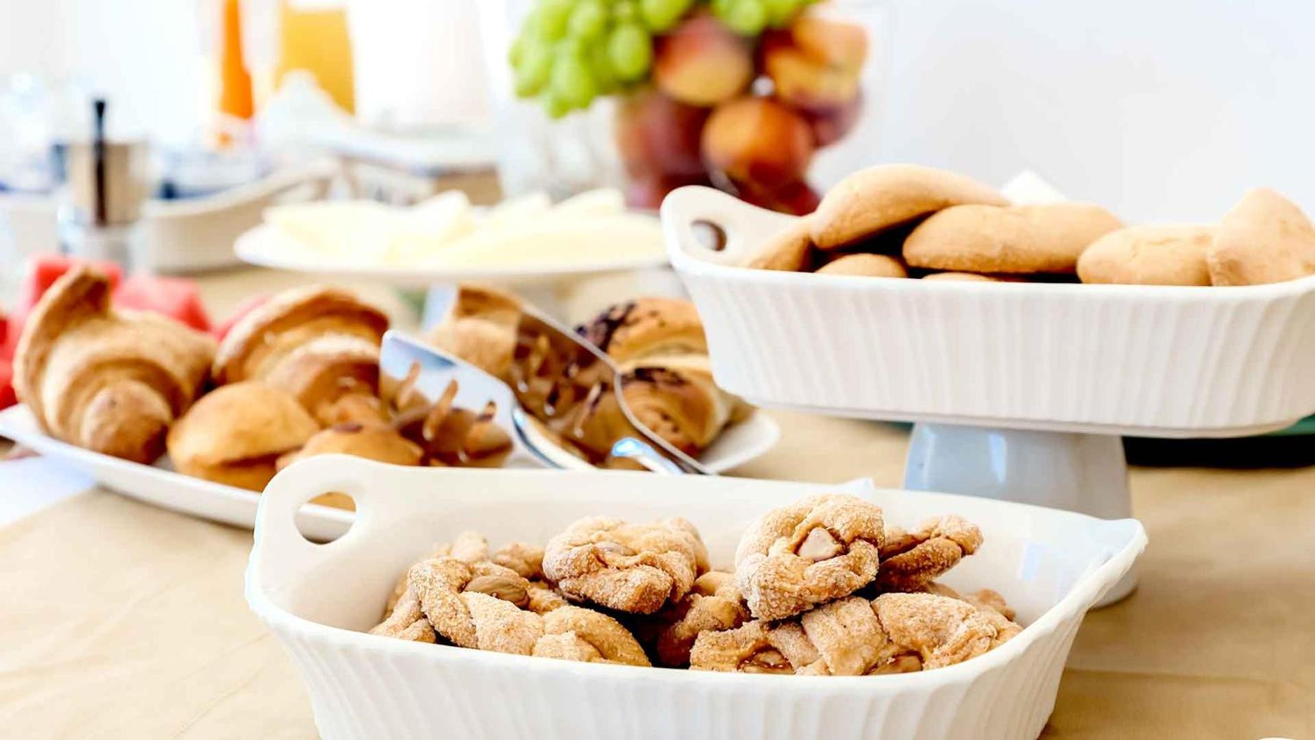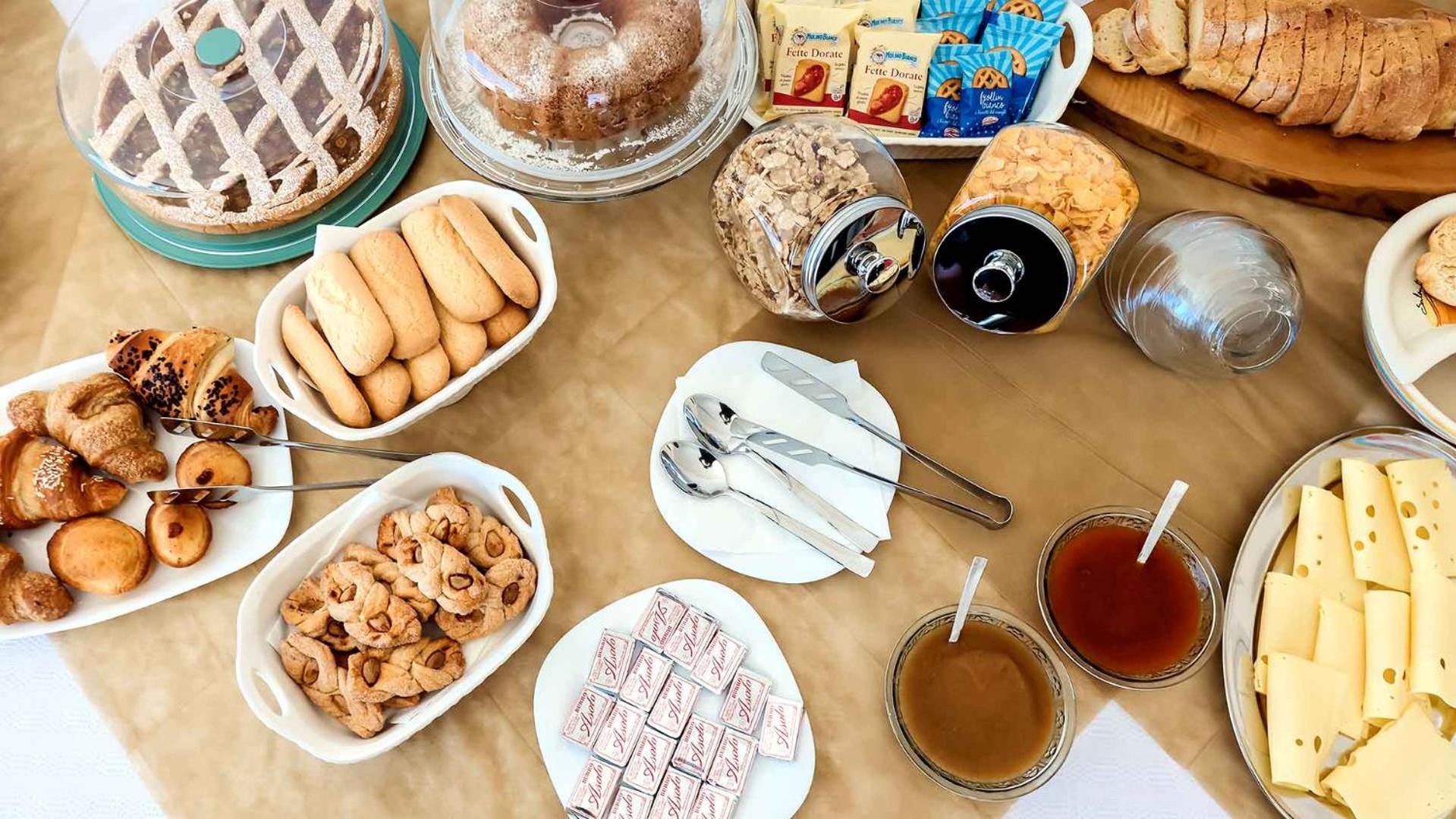 La colazione ottima con dolci fatti in casa.