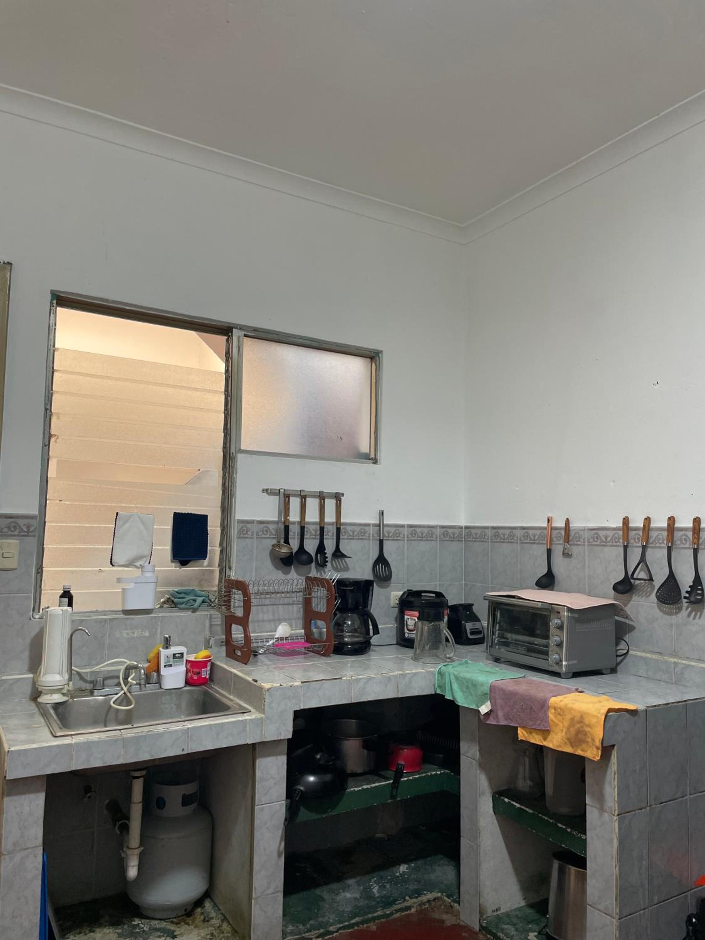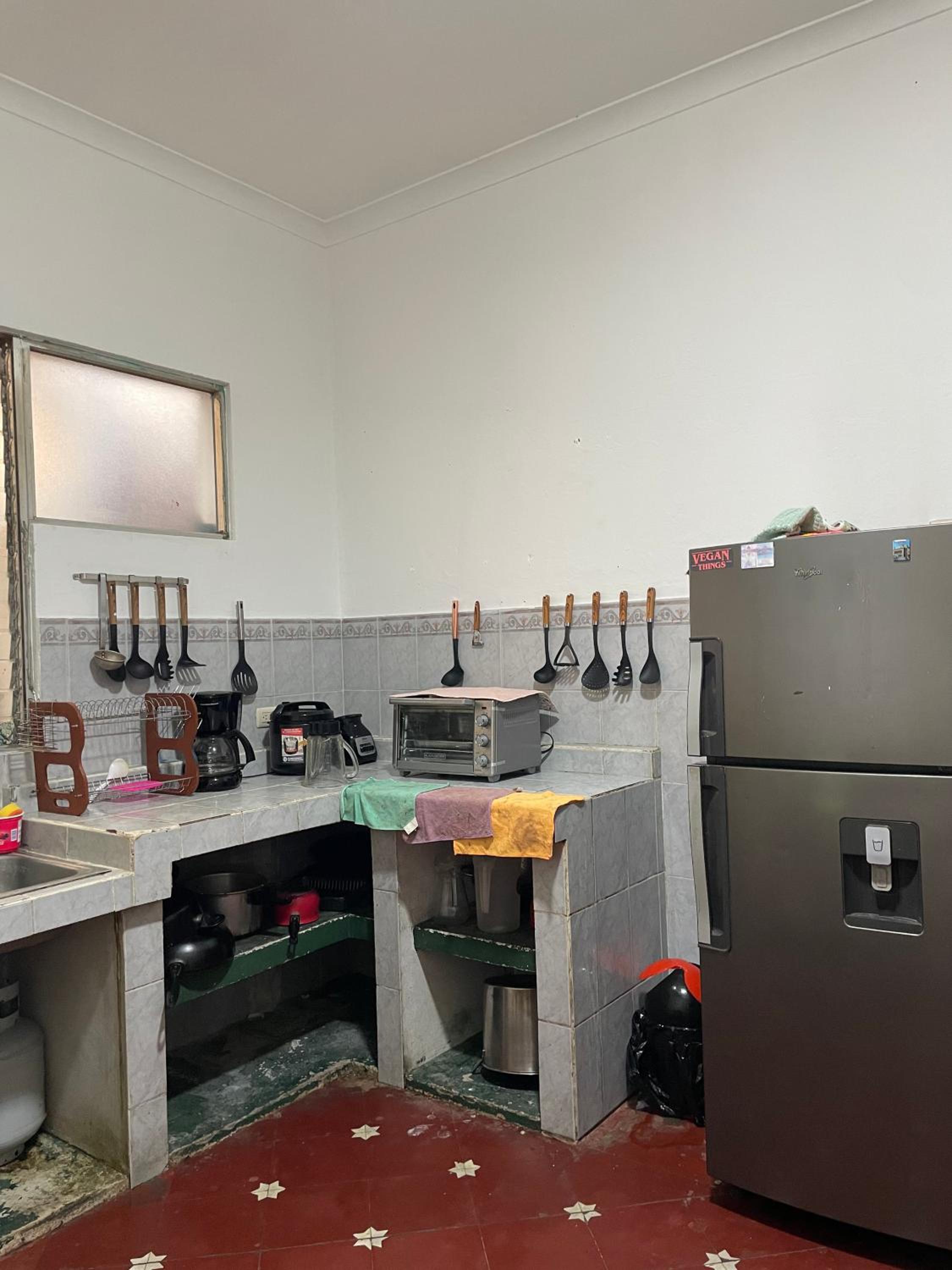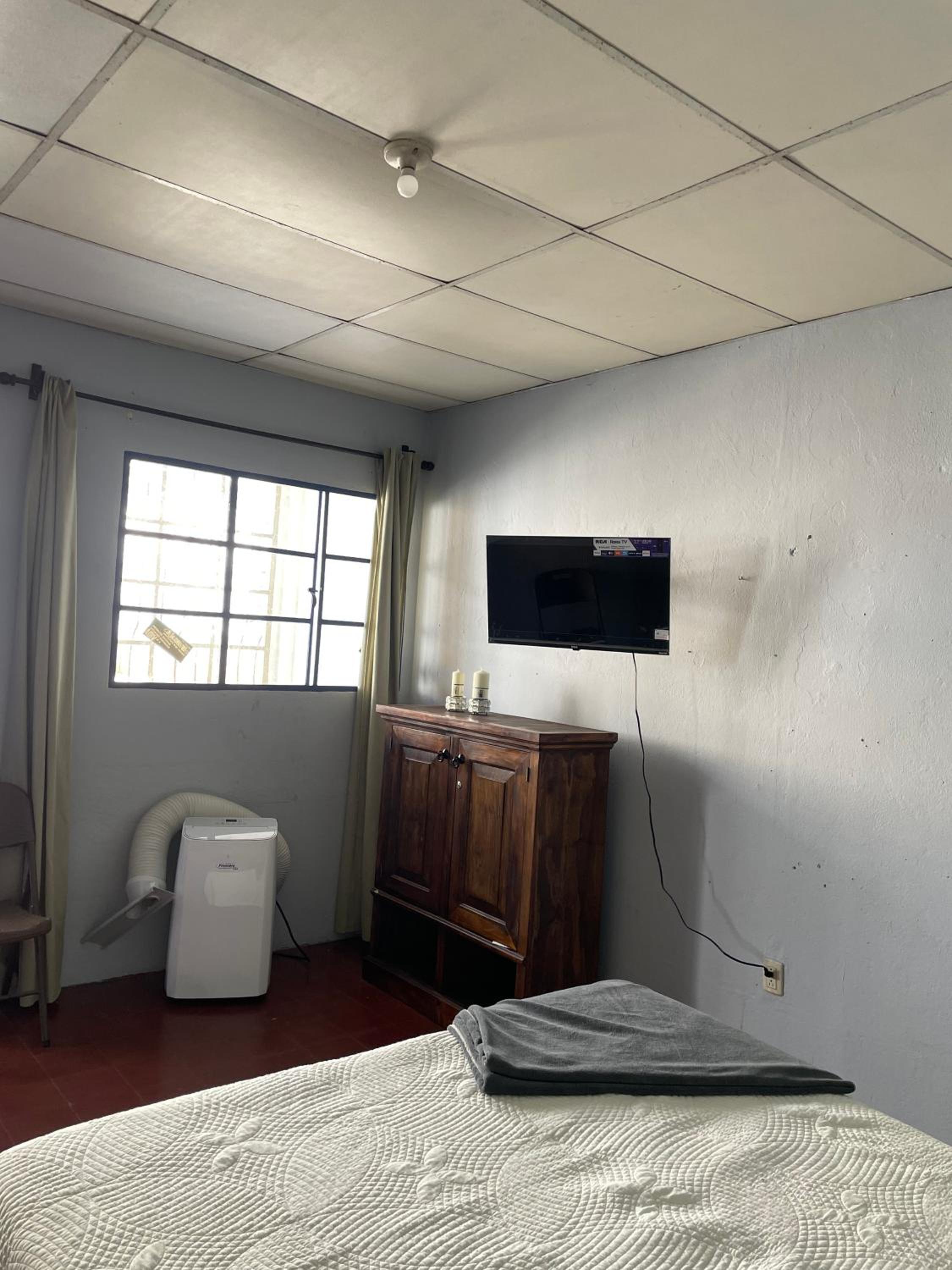 Indulge in the modern amenities provided at Casa Bienestar, including air-conditioned units, a fully equipped kitchen, and a flat-screen TV.