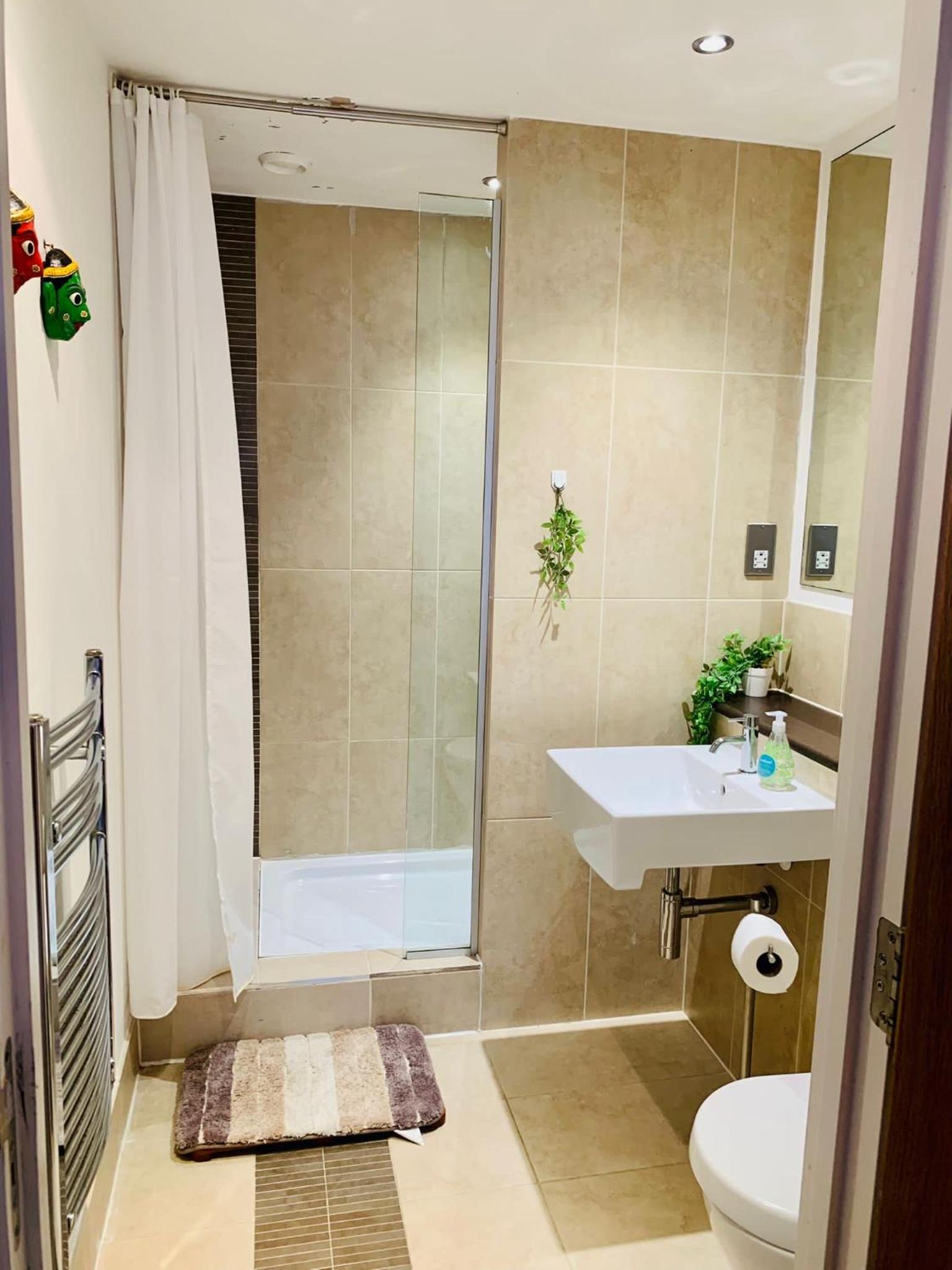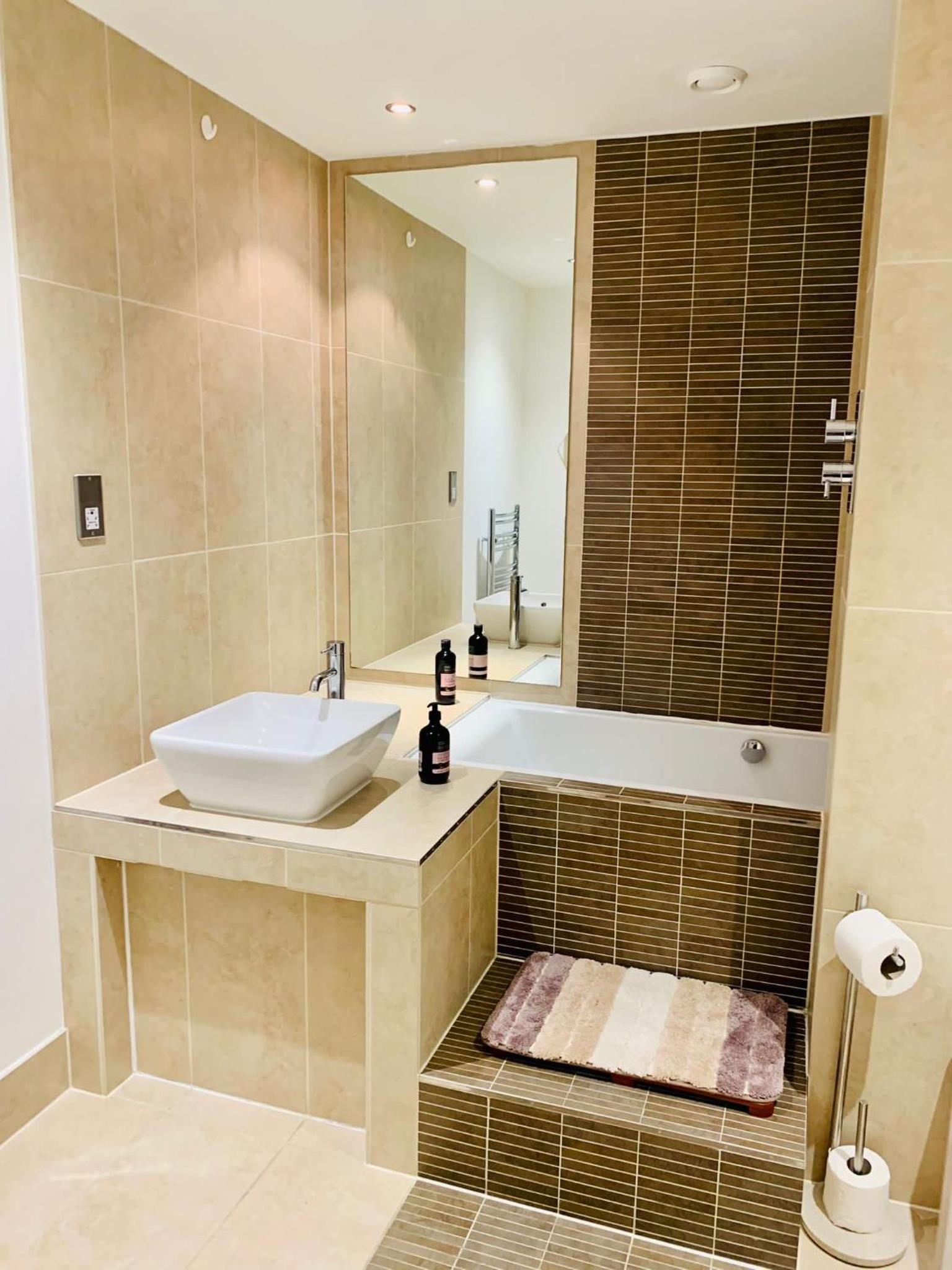 The bathroom in the en-suite is modern