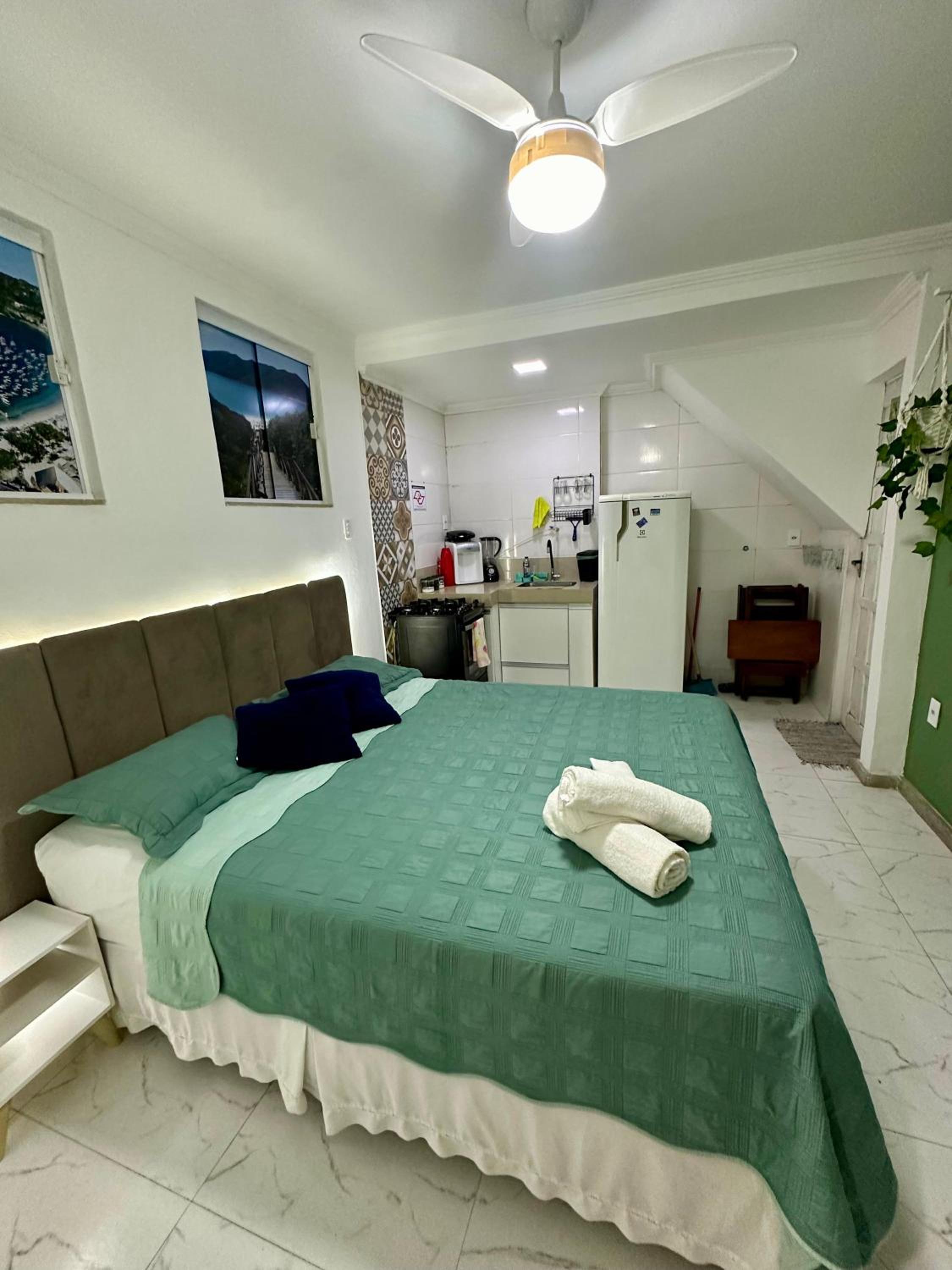 A localização é ótima: perto da Praia dos Anjos, de mercados, restaurantes e pizzarias. Também é possível ir caminhando até a Praia Grande, que não fica longe. Para quem deseja explorar outros lugares, há ponto de ônibus próximo, o que facilita bastante.
