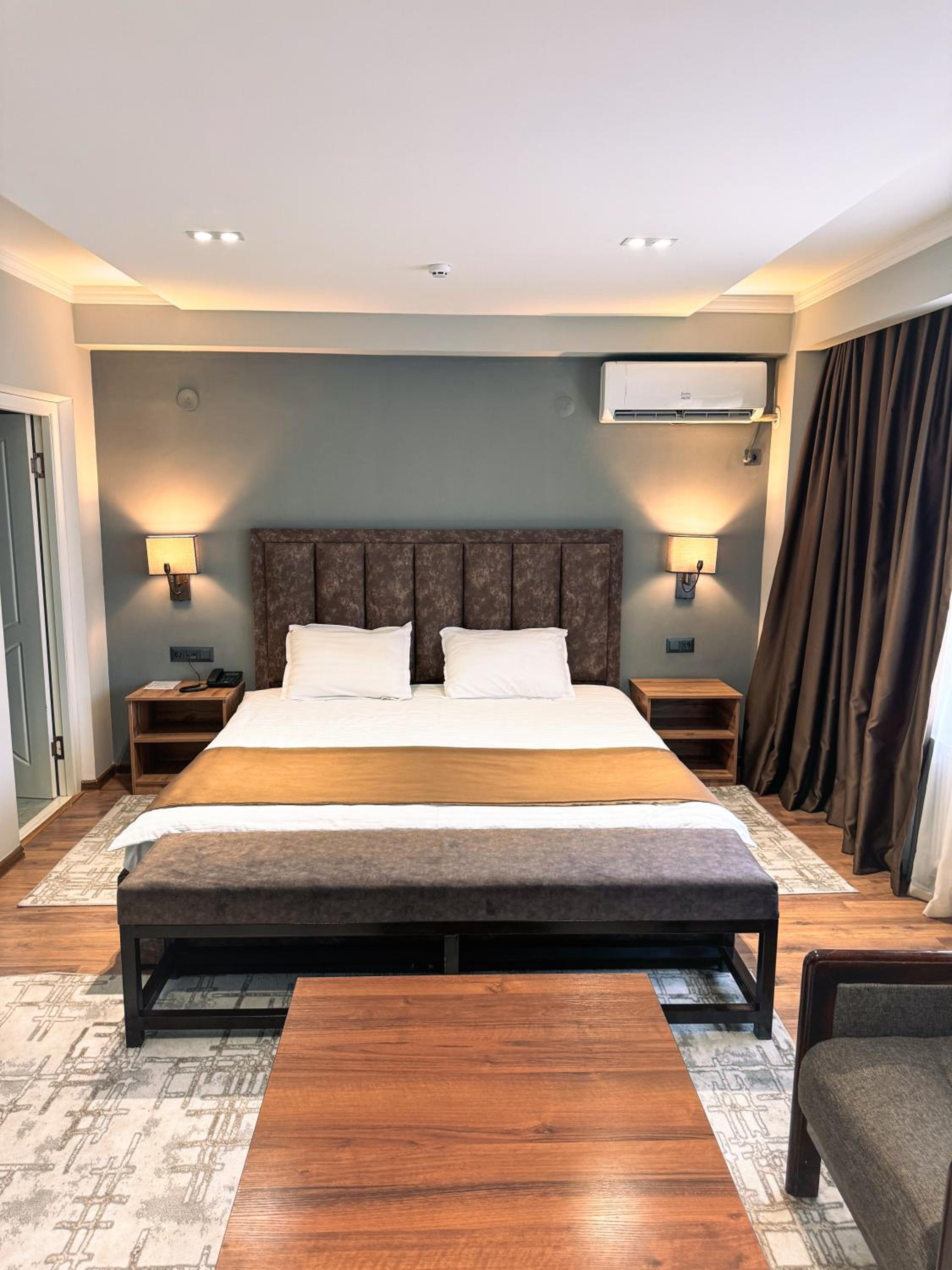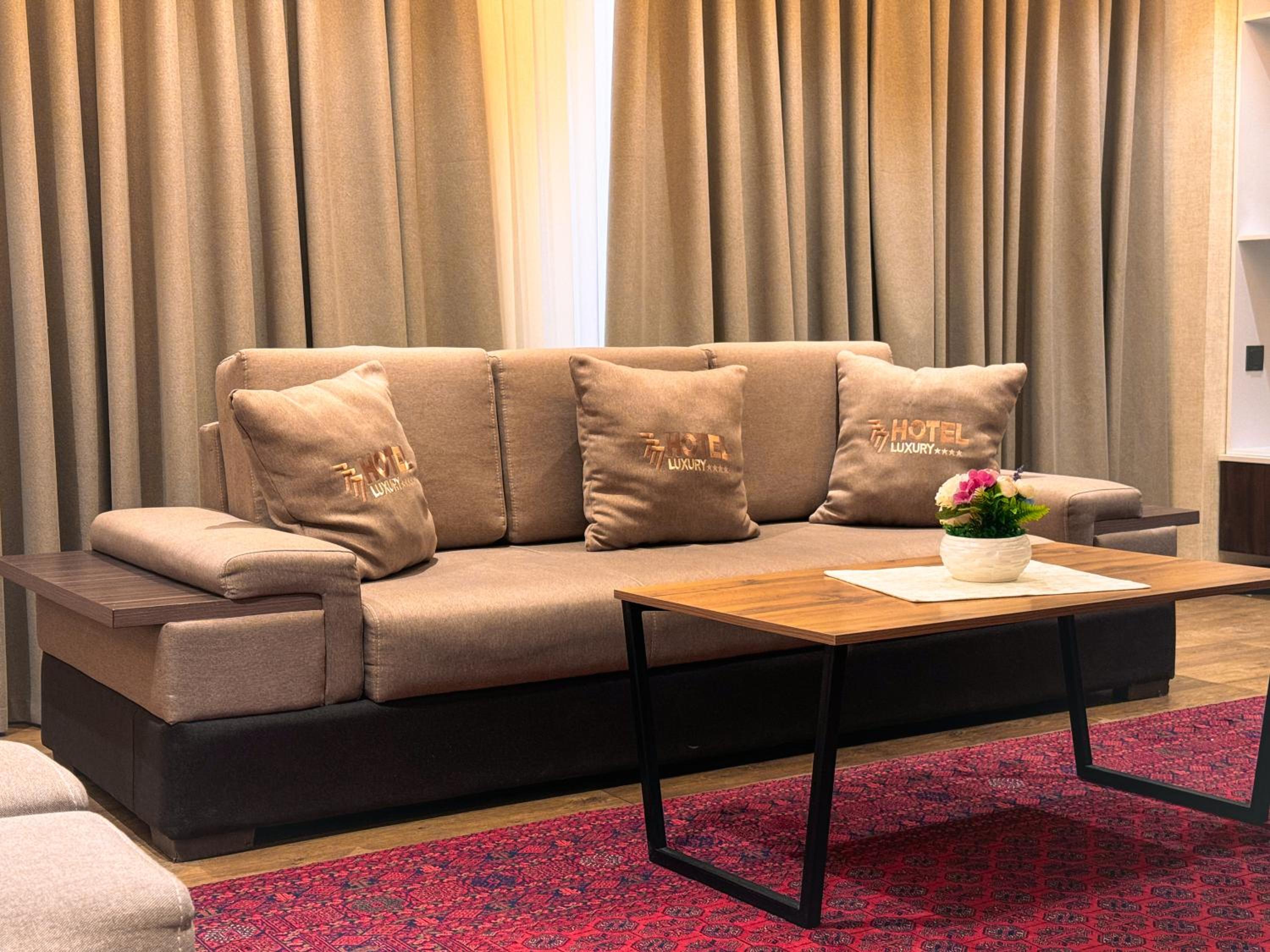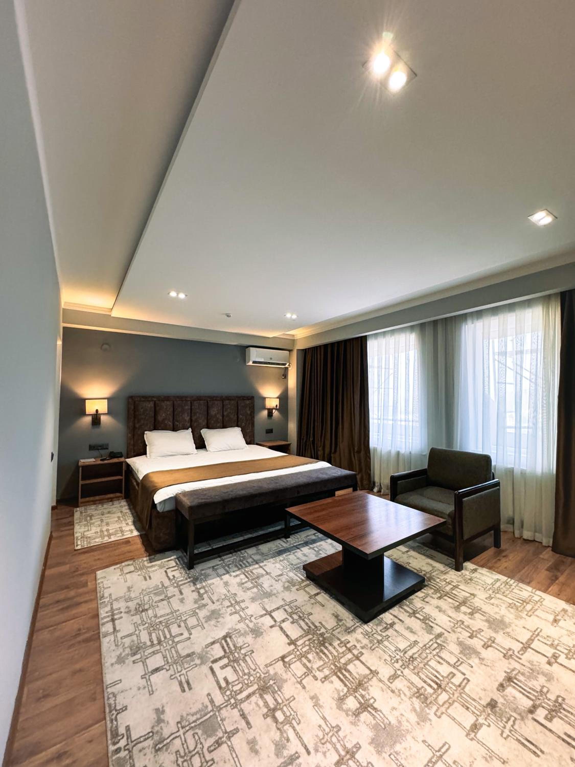 Indulge in air-conditioned rooms with modern amenities like a flat-screen TV and a private balcony for a comfortable stay at Ziyorat Luxury.