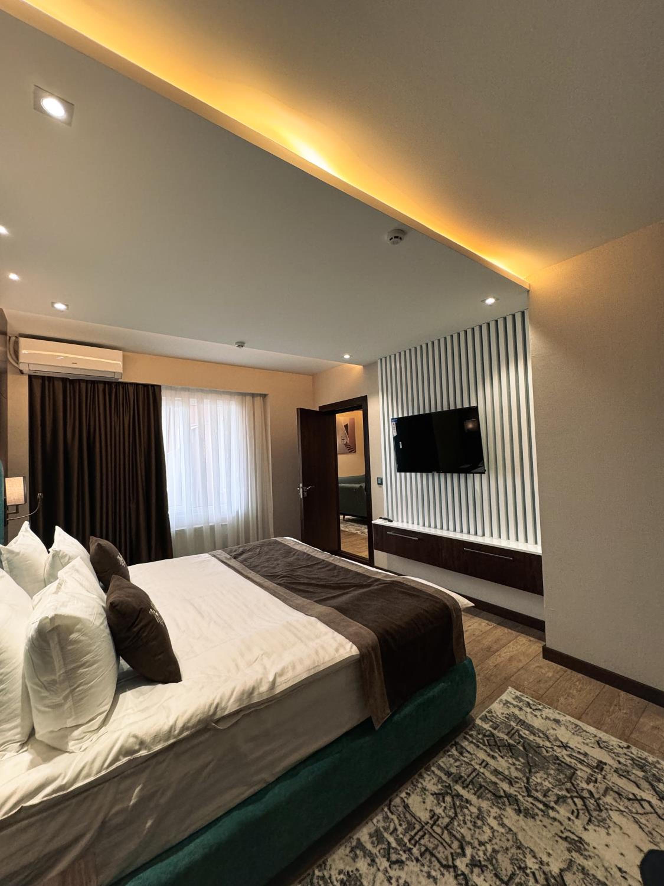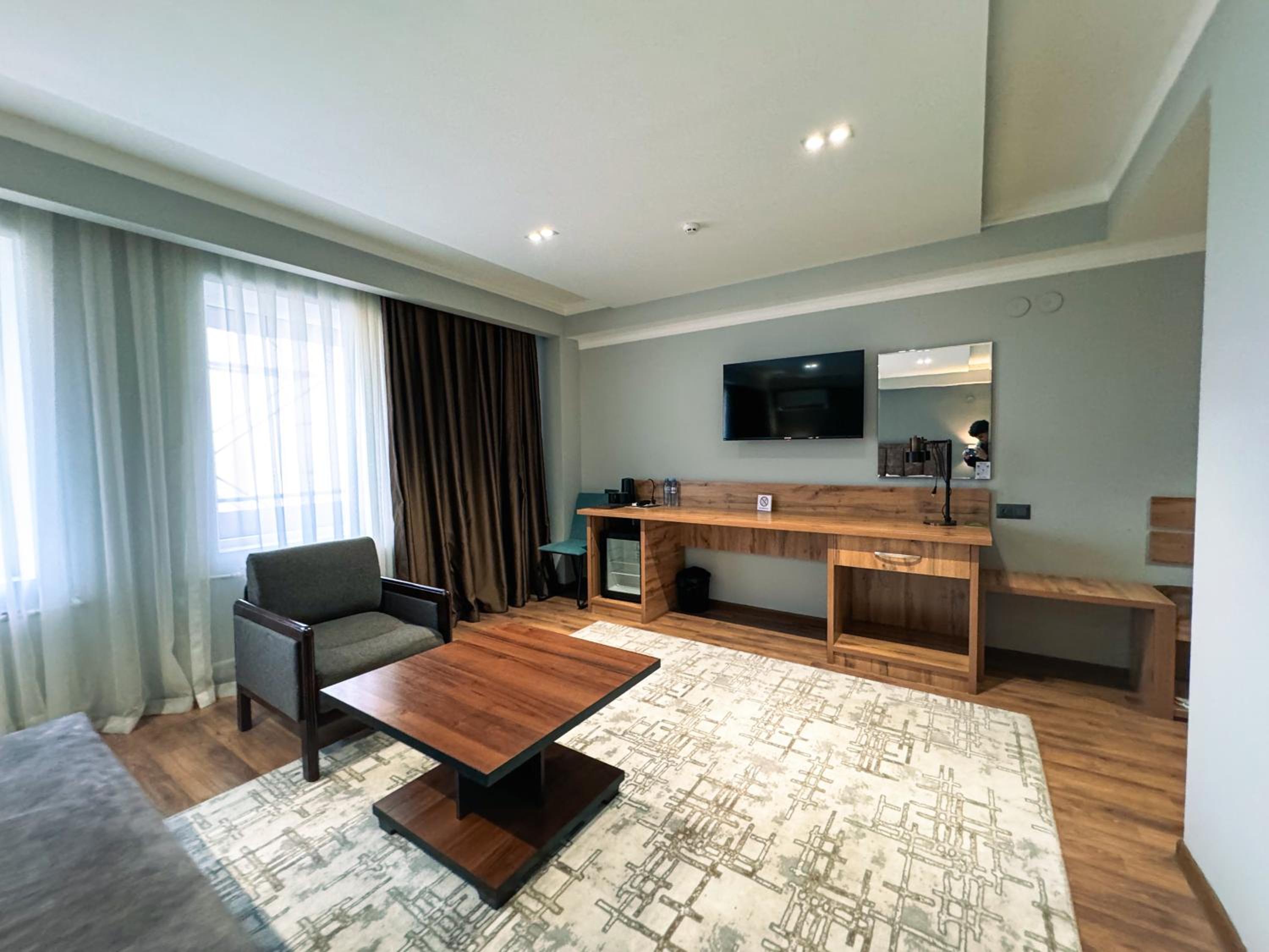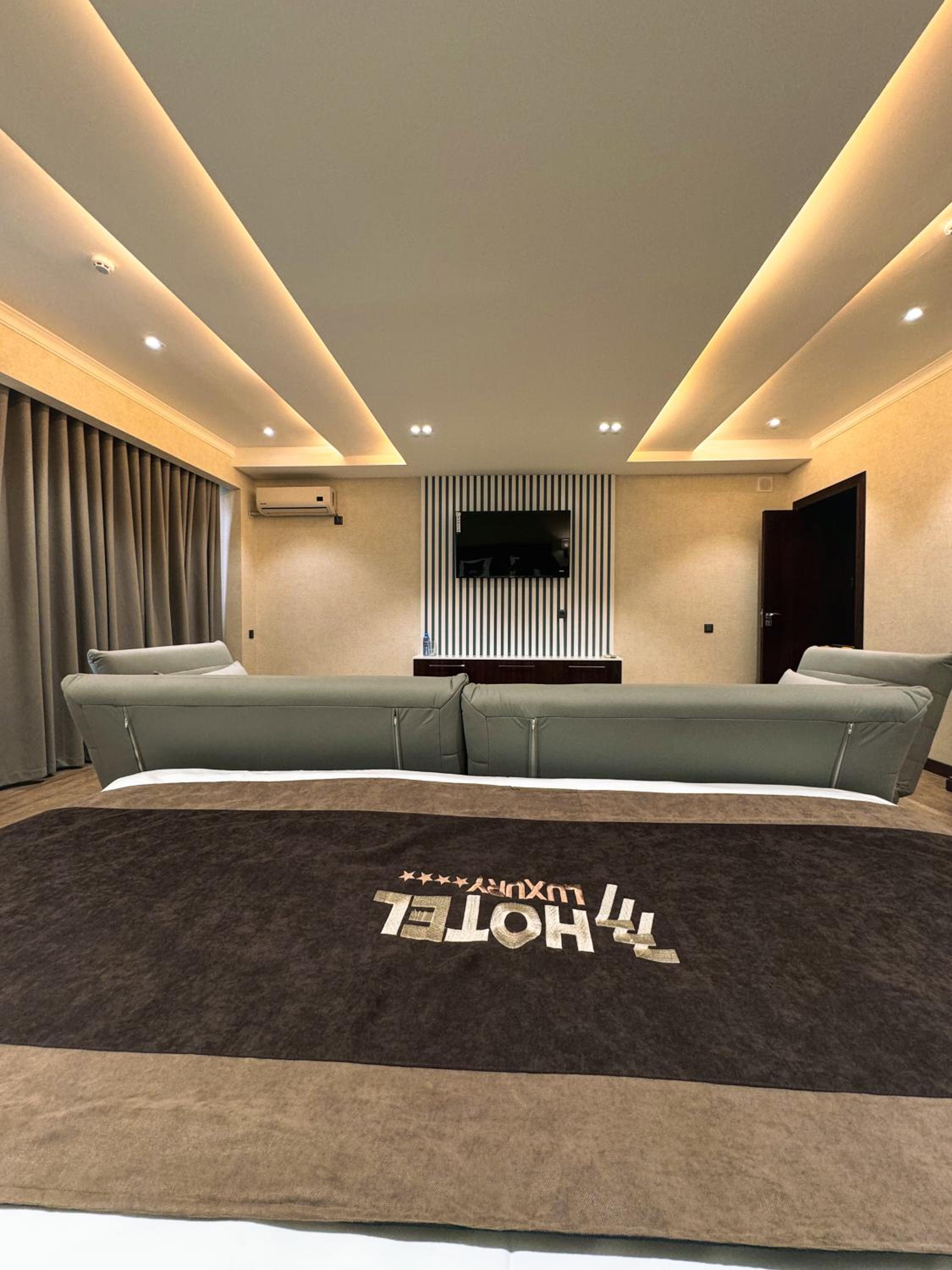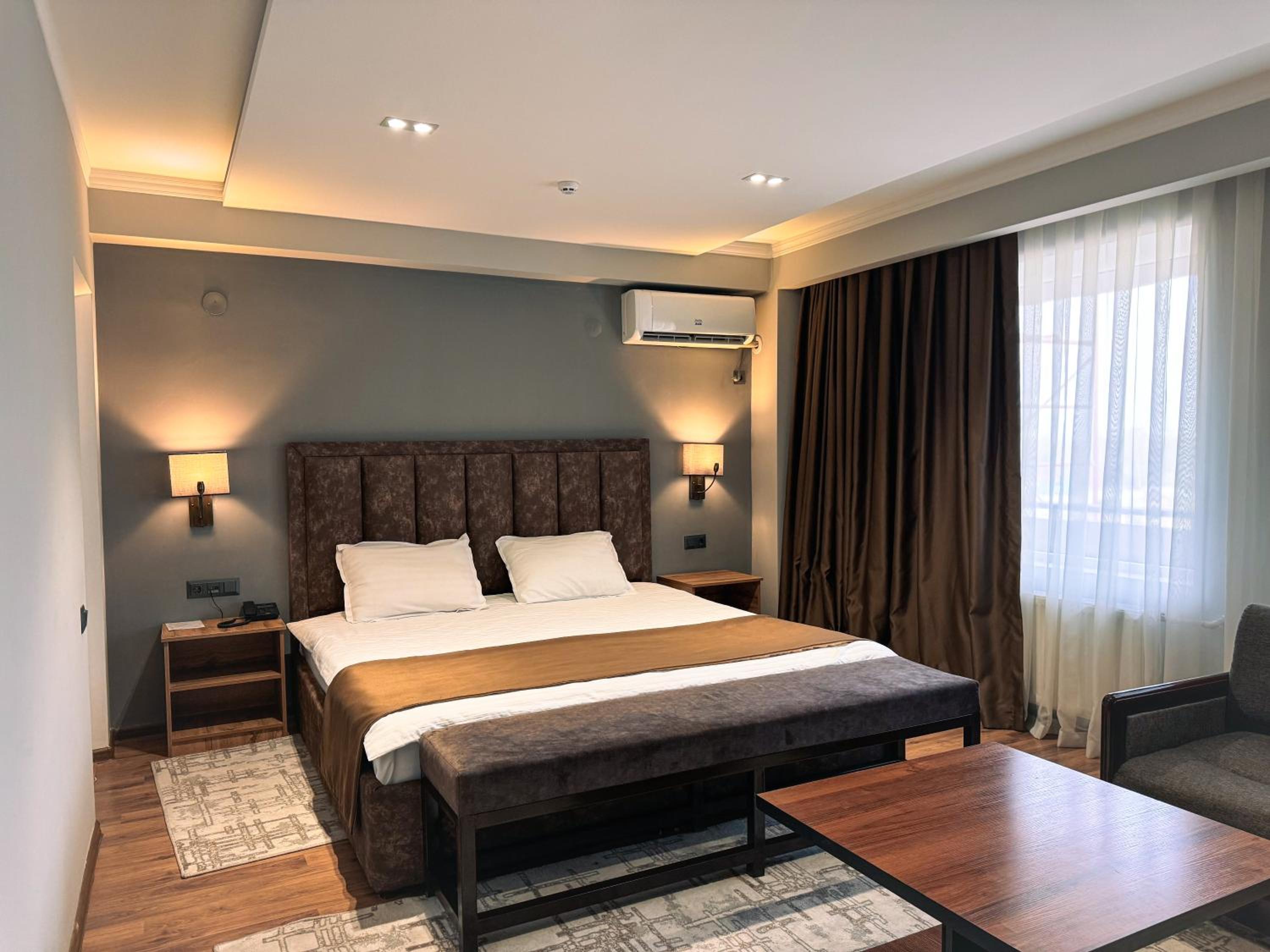 Indulge in air-conditioned rooms with modern amenities like a flat-screen TV and a private balcony for a comfortable stay at Ziyorat Luxury.