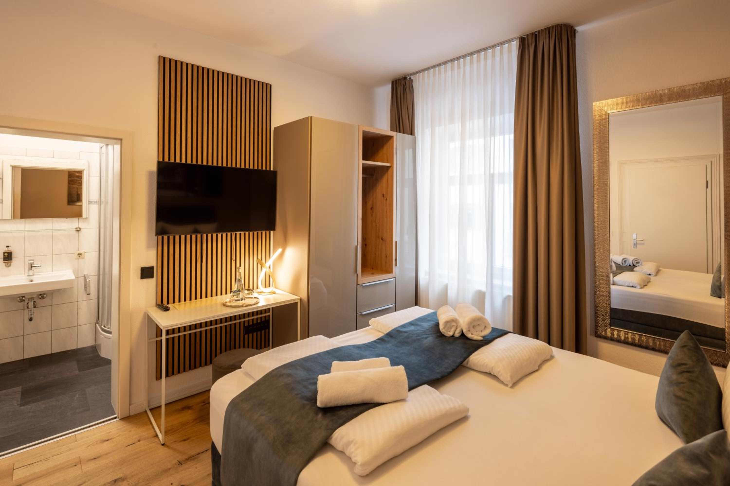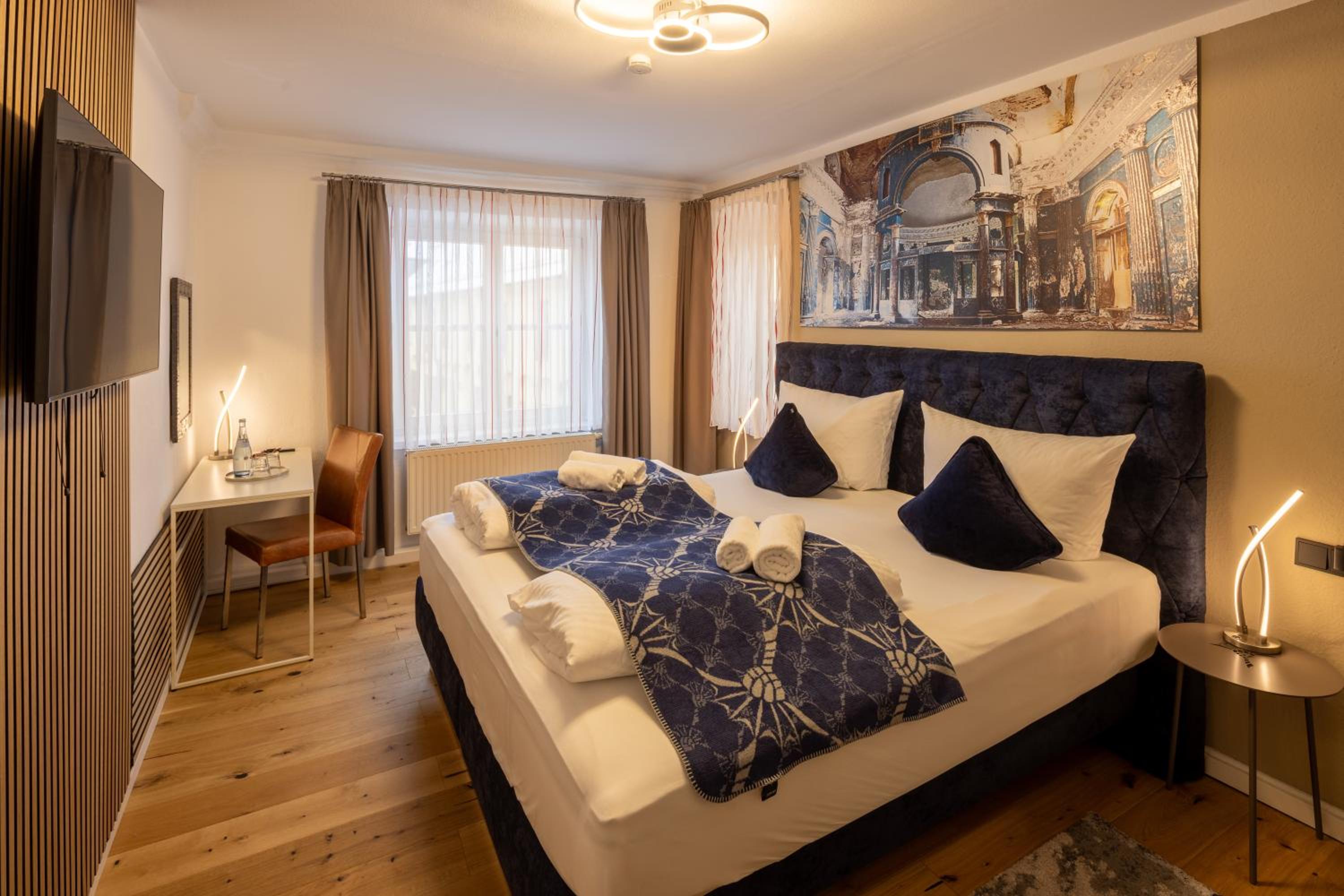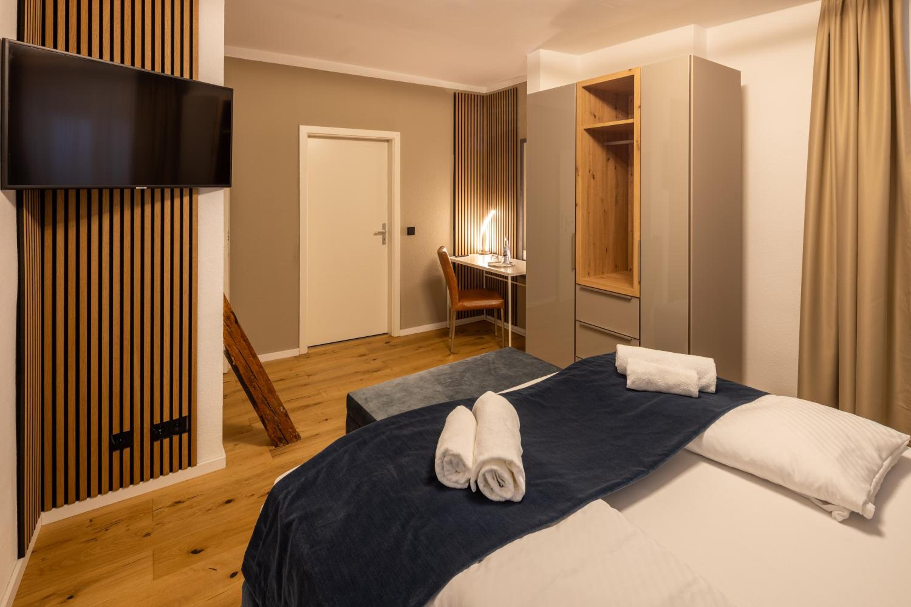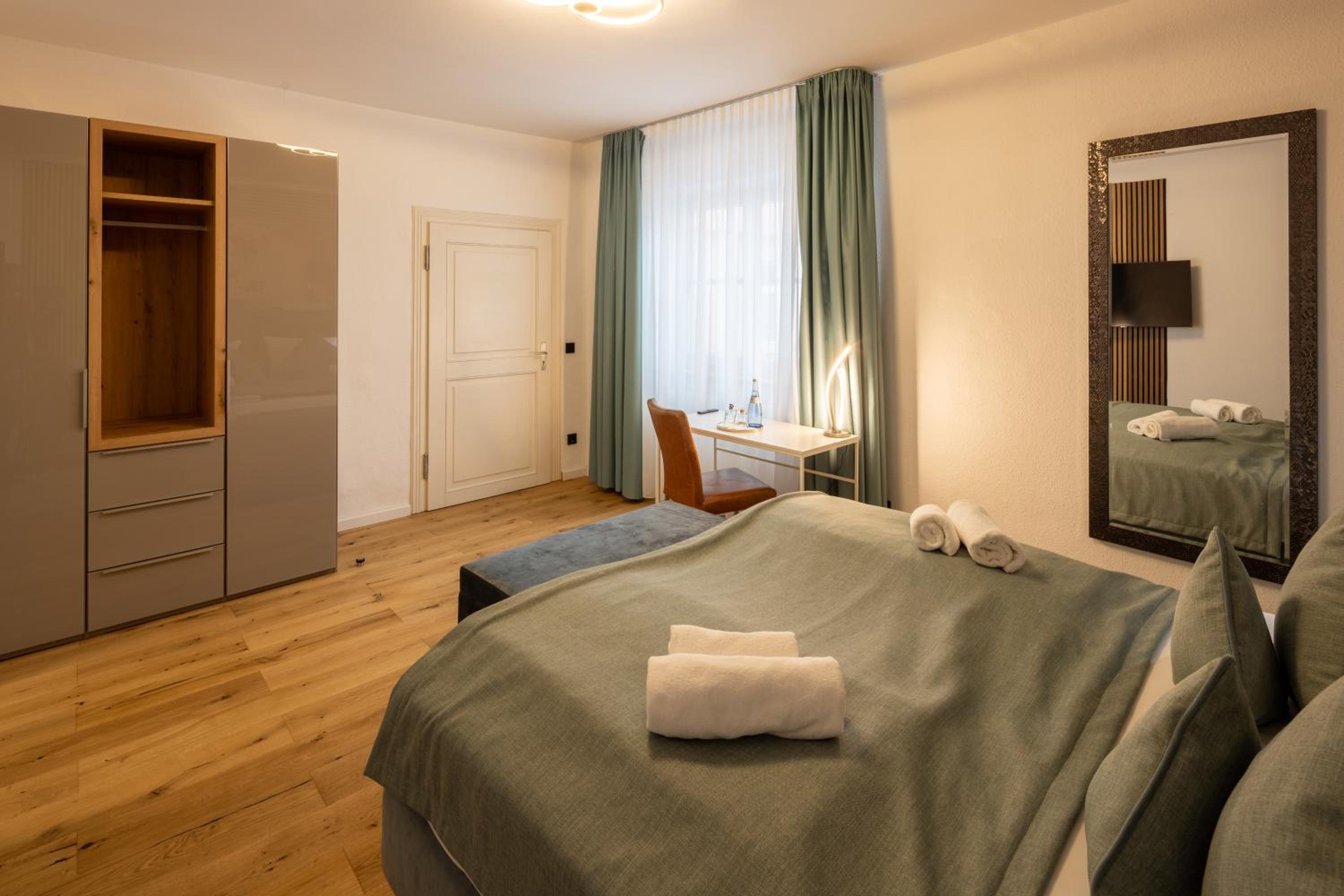 La ubicación es excepcional, a pocos minutos a pie de la Marktplatz. El alojamiento está recién reformado, todo nuevo y muy bonito. Habitaciones y camas enormes. Buen restaurante. Lo único malo es que no tiene ascensor, el resto perfecto.