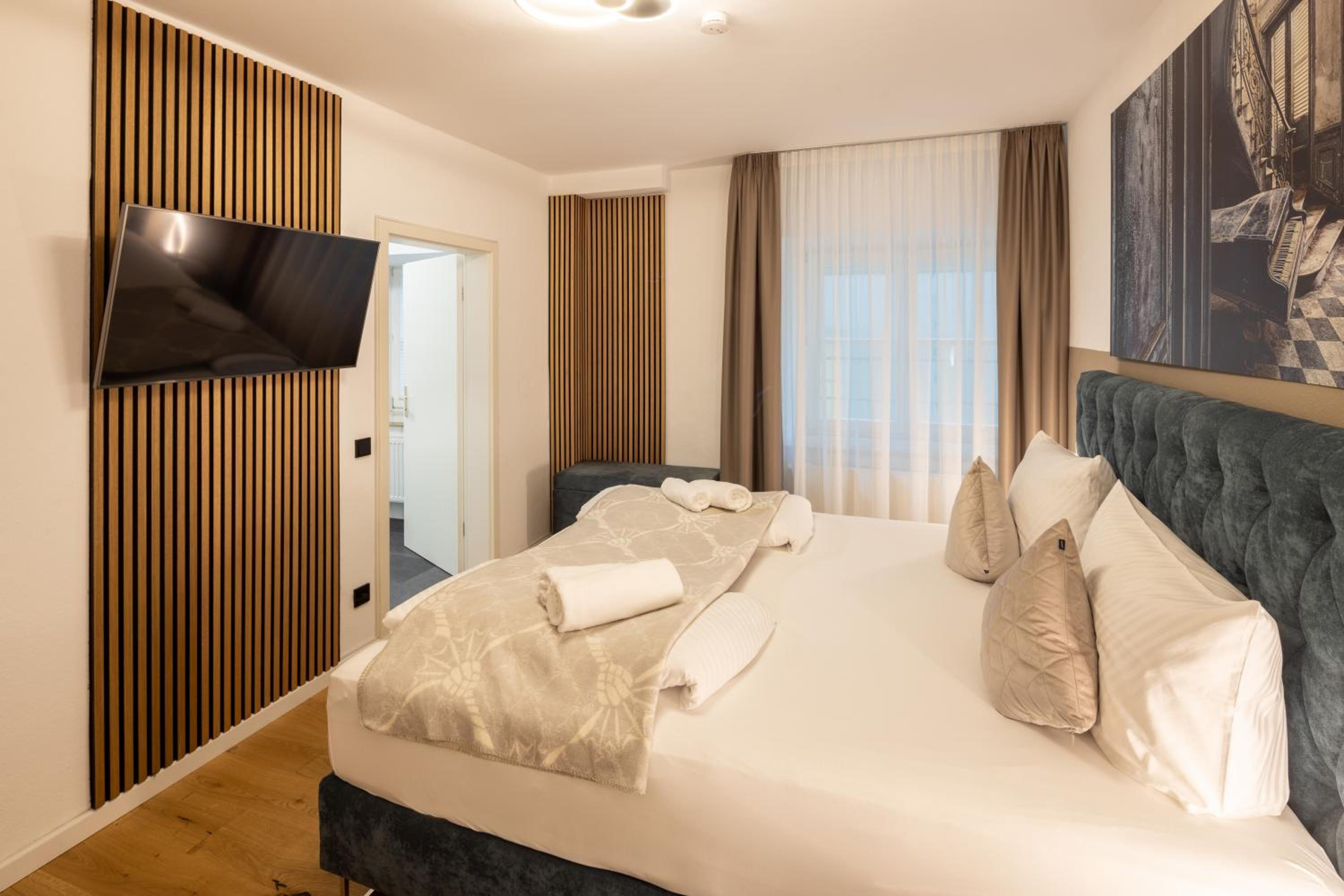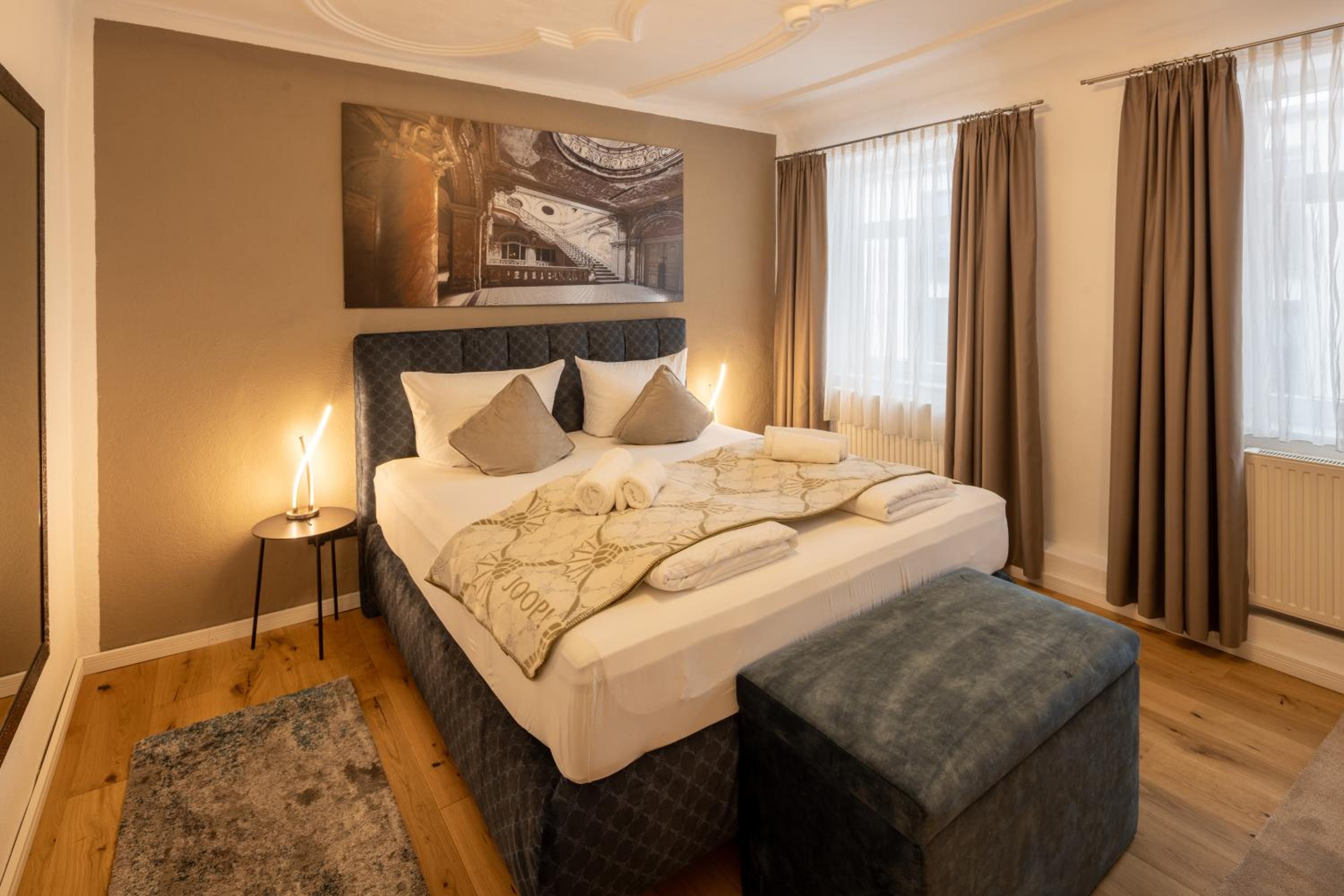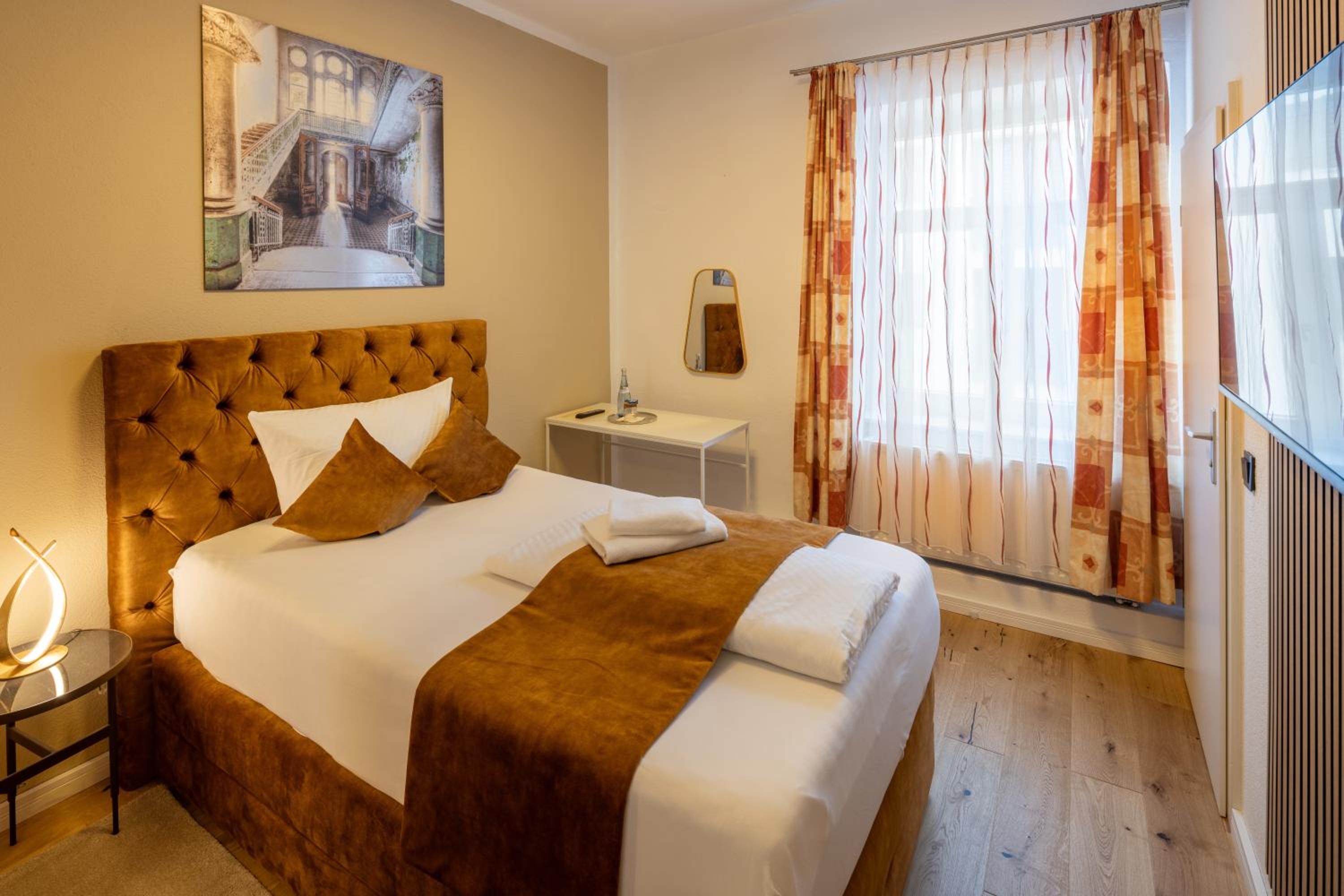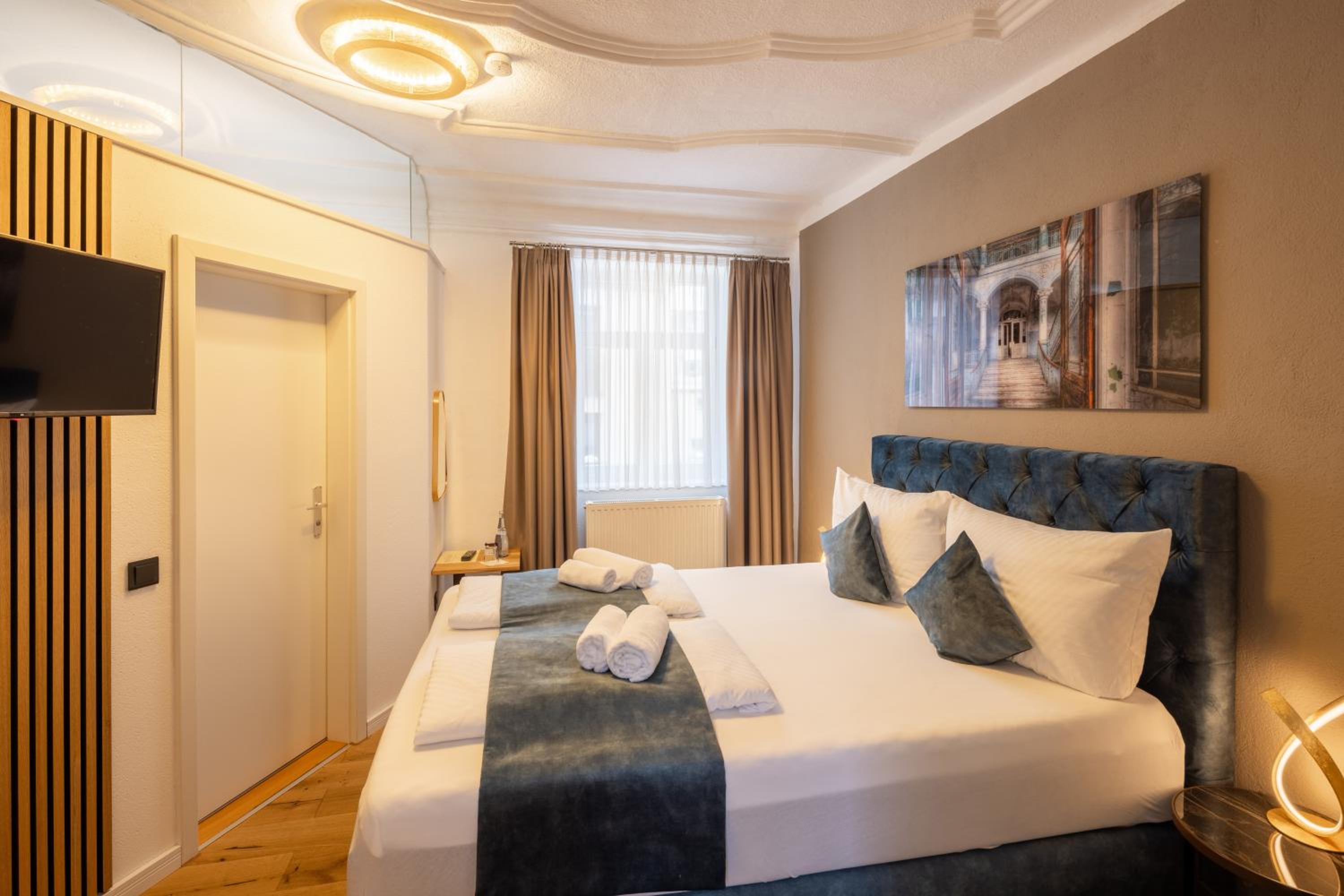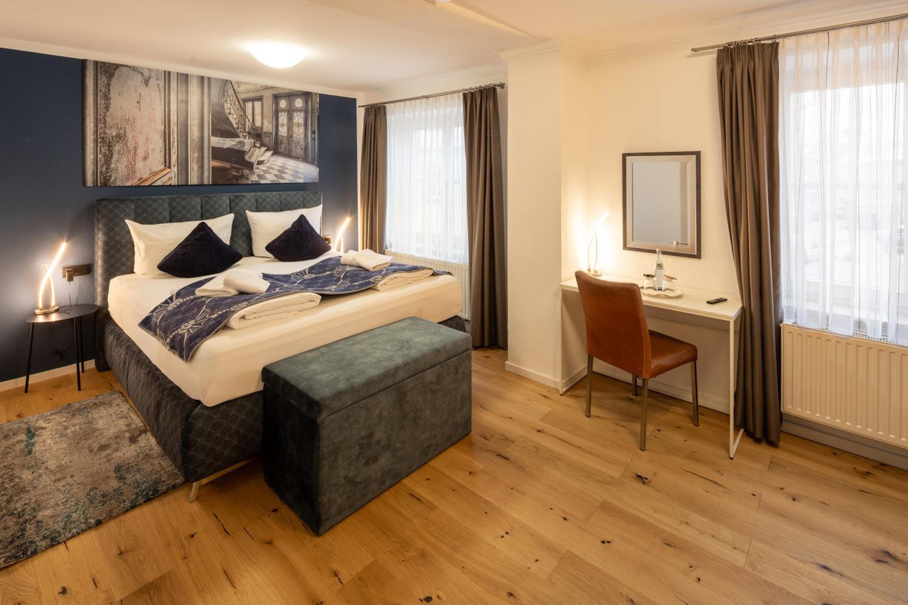 La ubicación es excepcional, a pocos minutos a pie de la Marktplatz. El alojamiento está recién reformado, todo nuevo y muy bonito. Habitaciones y camas enormes. Buen restaurante. Lo único malo es que no tiene ascensor, el resto perfecto.