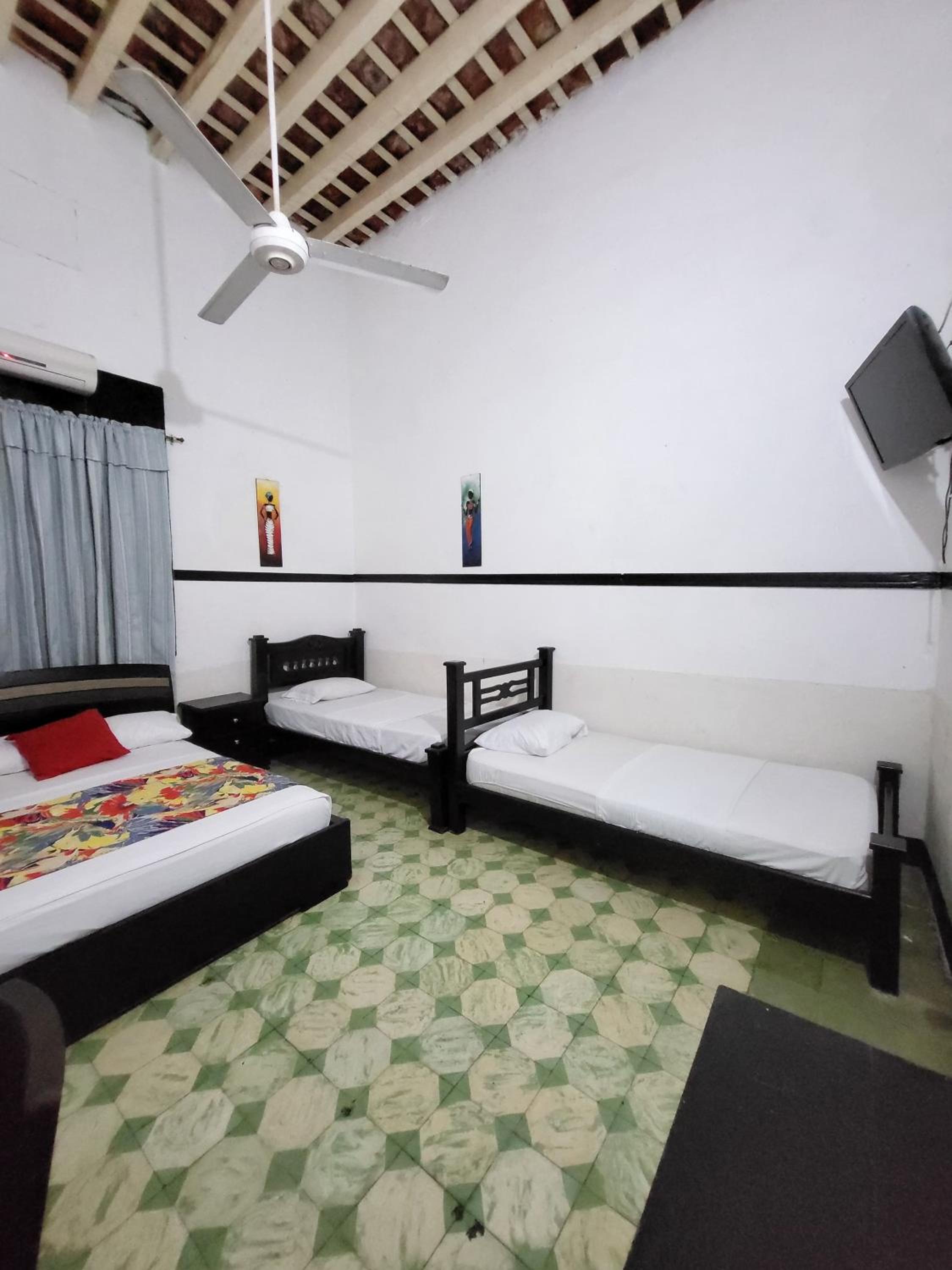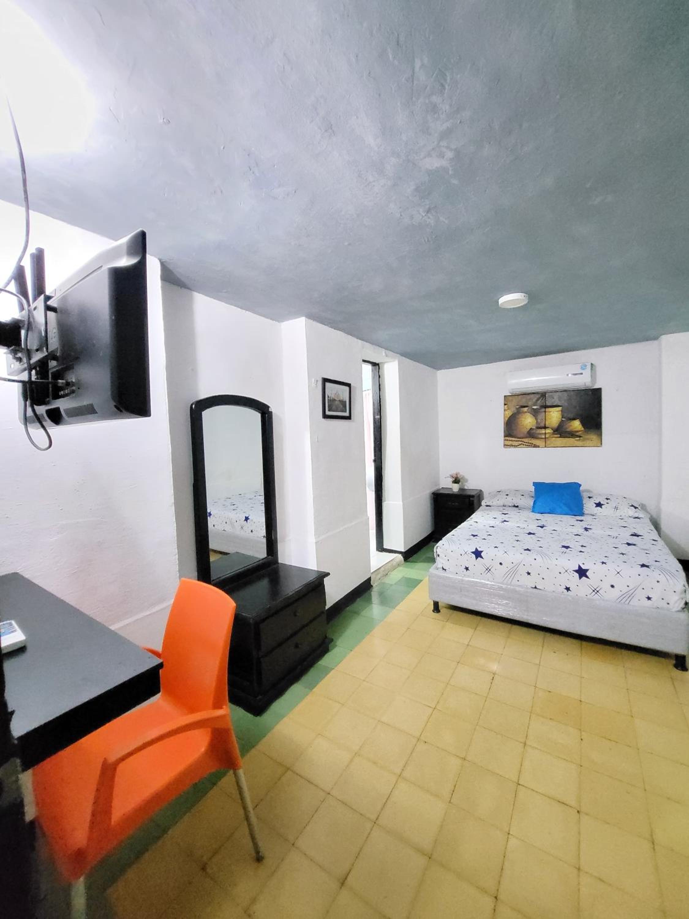 The air-conditioned rooms at Hotel Colonial offer a cozy retreat with modern amenities including flat-screen TVs and private bathrooms, ensuring a comfortable stay for guests.