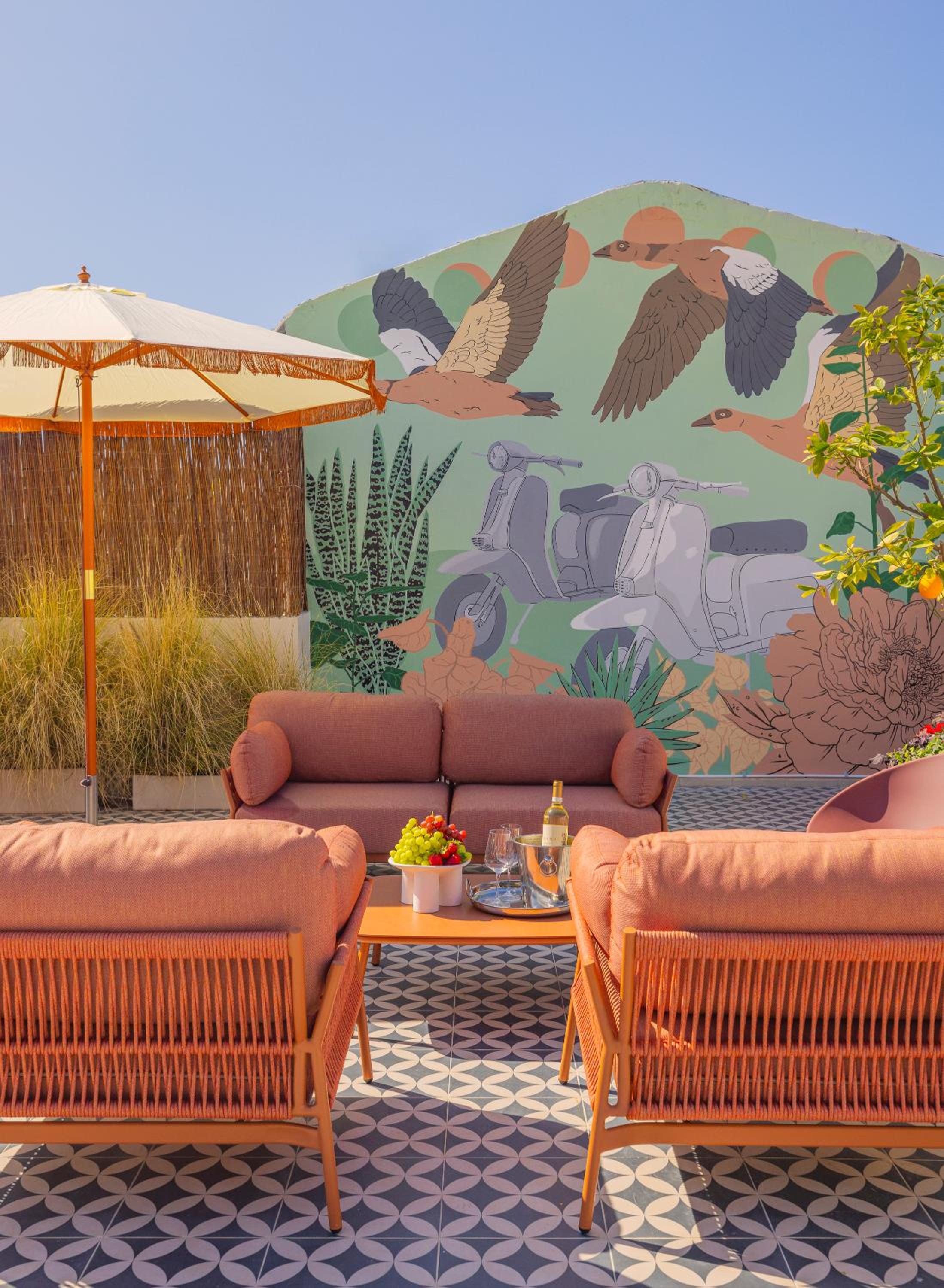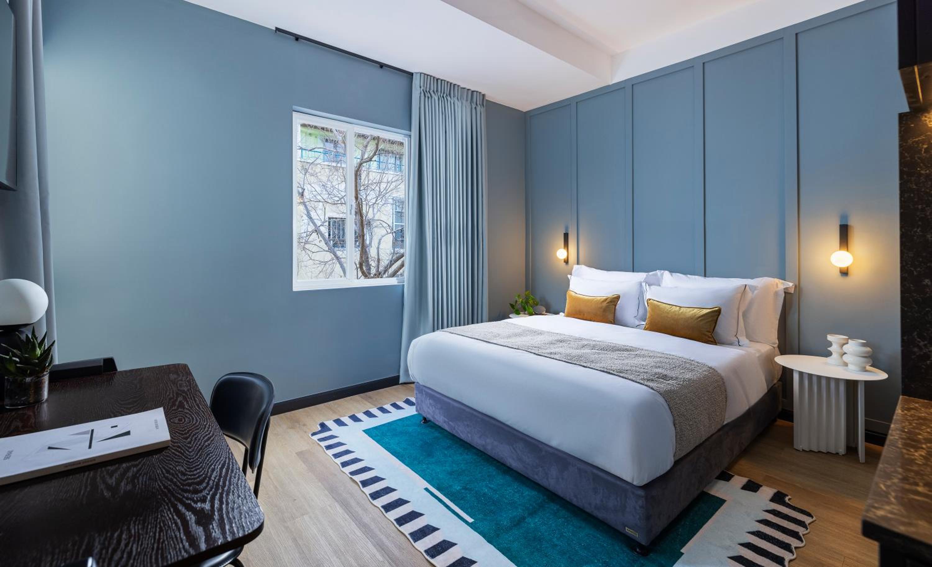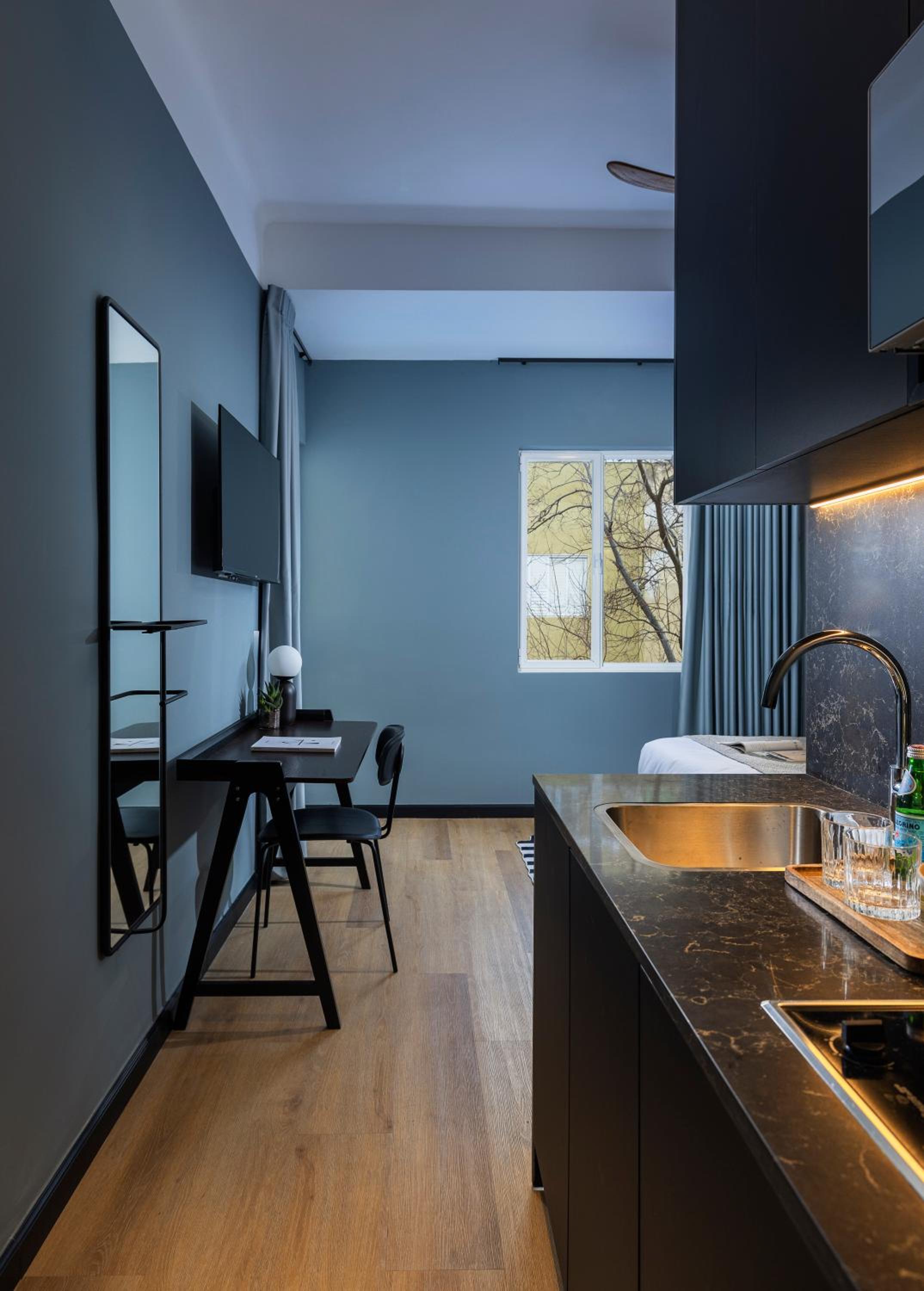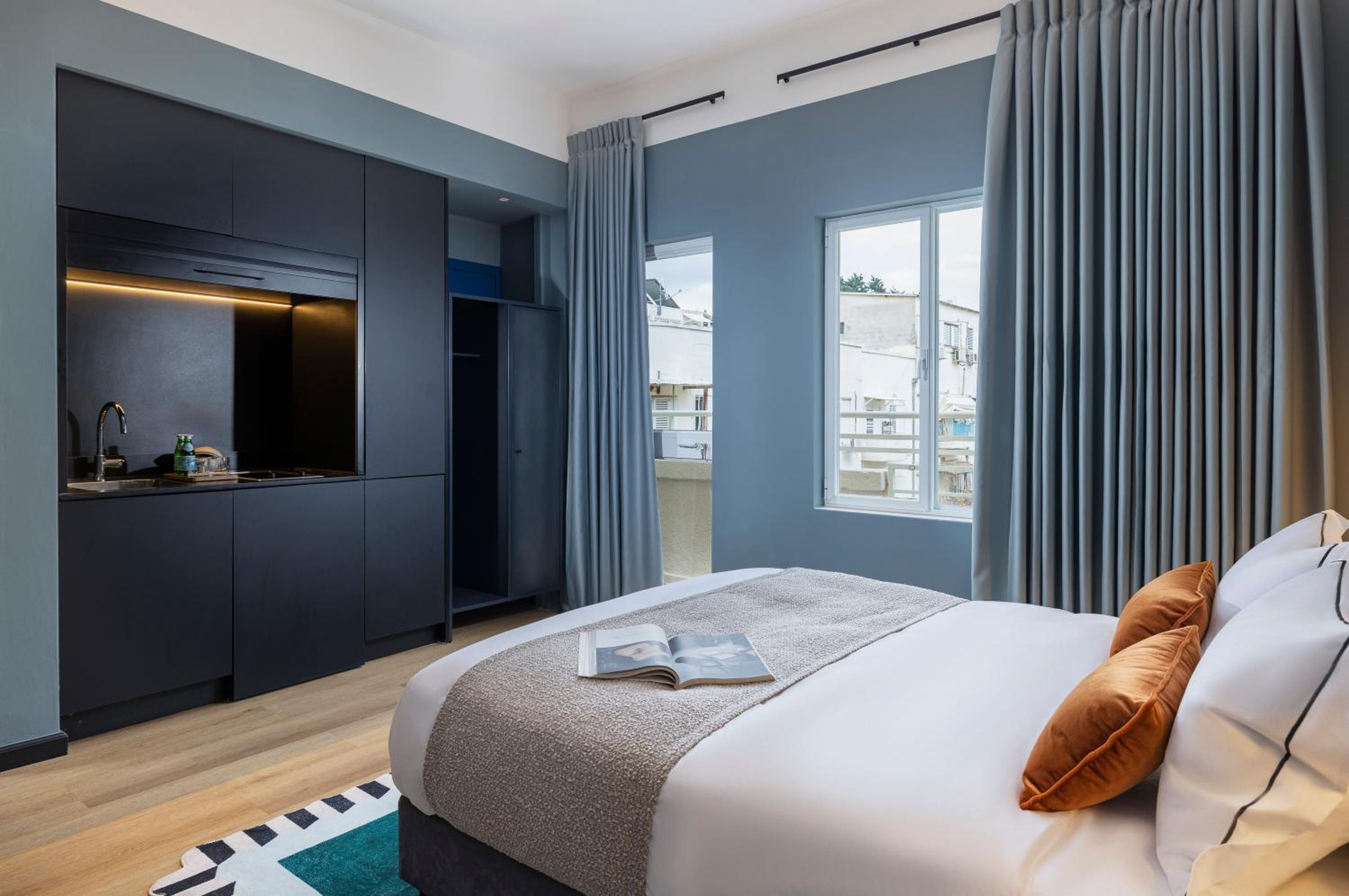 The hotel is located in the vibrant Florentin quarter, within a five-minute walk of a jazz club, and surrounded by bars, cafés, street art, and an inspiring crowd. The atmosphere recalls Belleville in Paris or Kreuzberg in Berlin. I liked the selfservice accompanied by the assistance in Whatsapp. The rooftop is awesome - great view and cozy place to have a rest or chat with your friends. The refreshments in the room and in the lobby are very handy and pleasant.