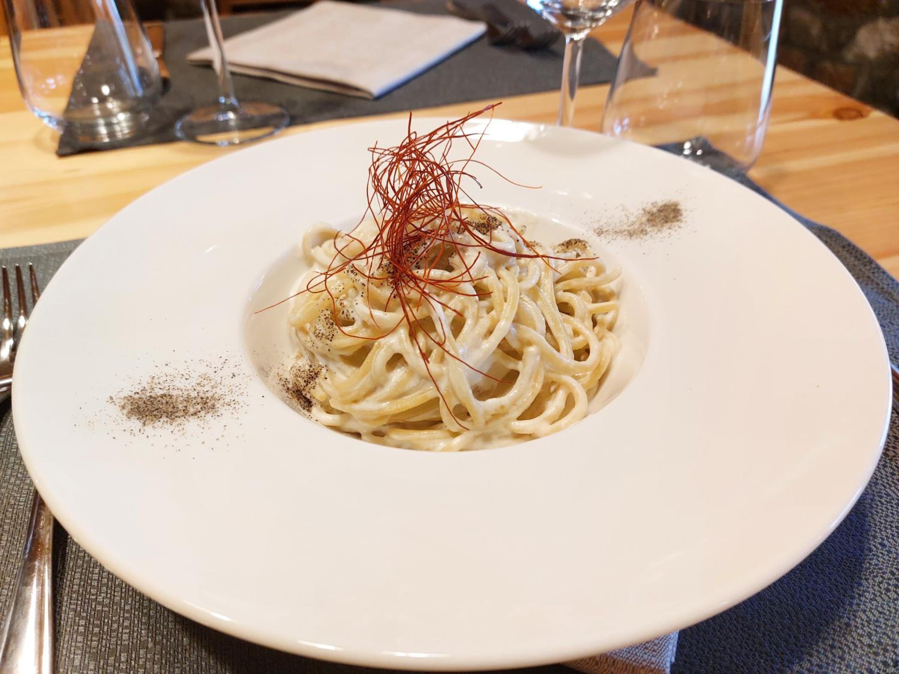 Abbiamo cenato sempre al rifugio, buona varietà di scelta e qualità degli ingredienti. Colazione dolce/salato a richiesta varia e abbondante!
