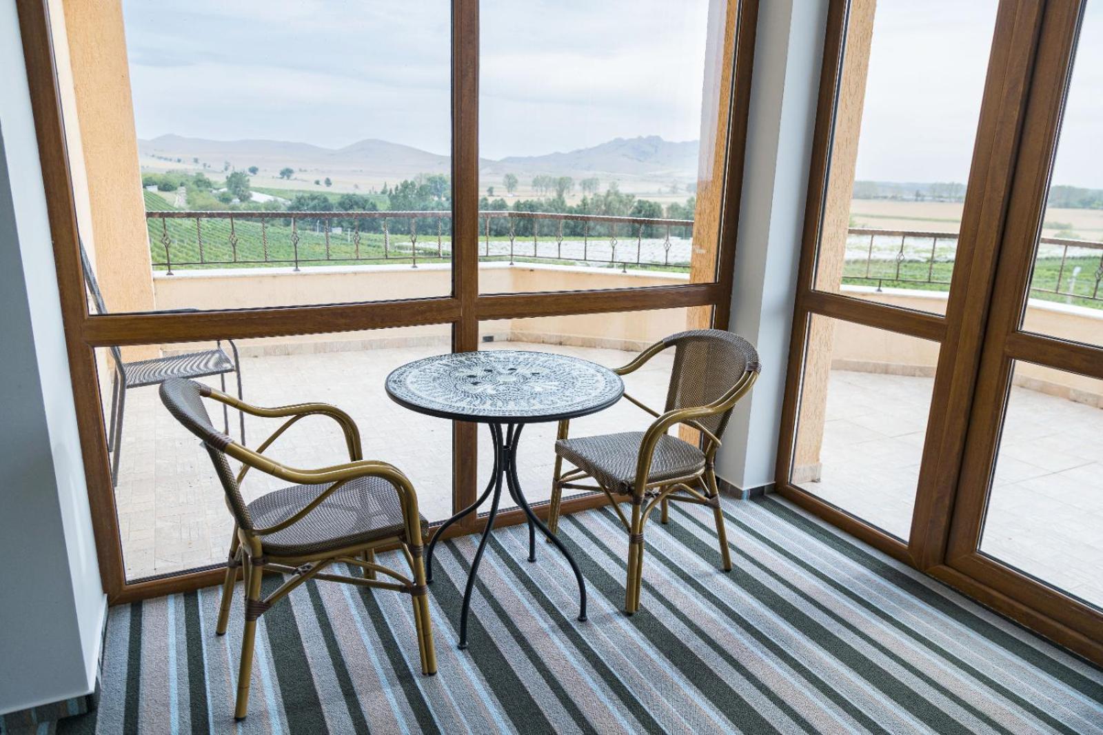Everything at the property seemed to be new, well integrated and functioning. Generous parking. Location surrounded by wine yards, at reasonable distance from the circulated road so traffic noise is minimal. Food is produced from local sources. Breakfast ia generous and has multiple options. Staff is polite and very helpful.